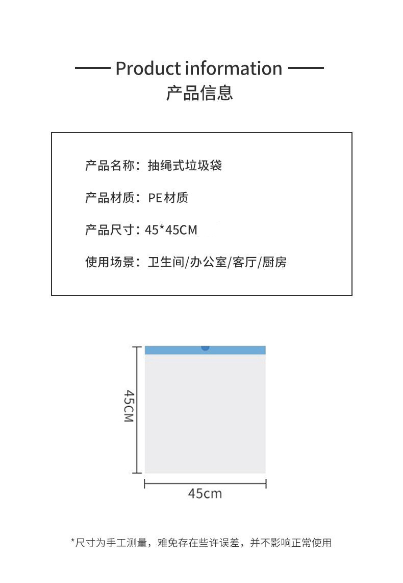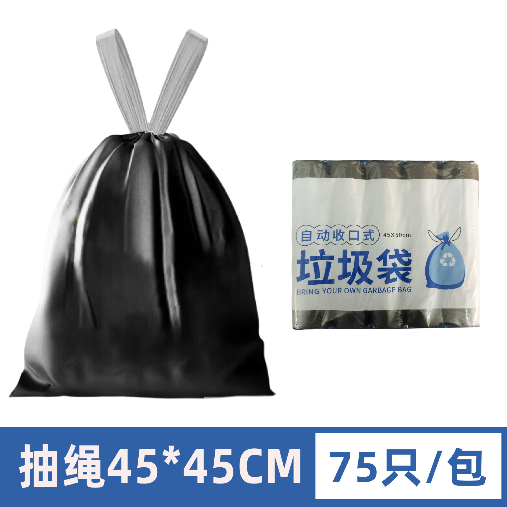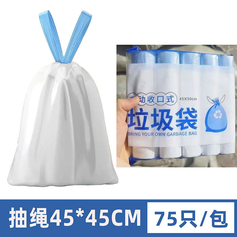 加厚白色垃圾袋自动收口抽绳办公室不脏手垃圾袋子宿舍家用垃圾袋