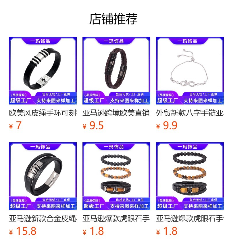 亚马逊跨境电商朋克风不锈钢不褪色可调节编织皮情侣手镯时尚简约