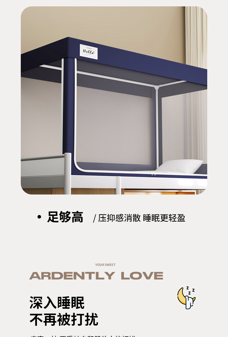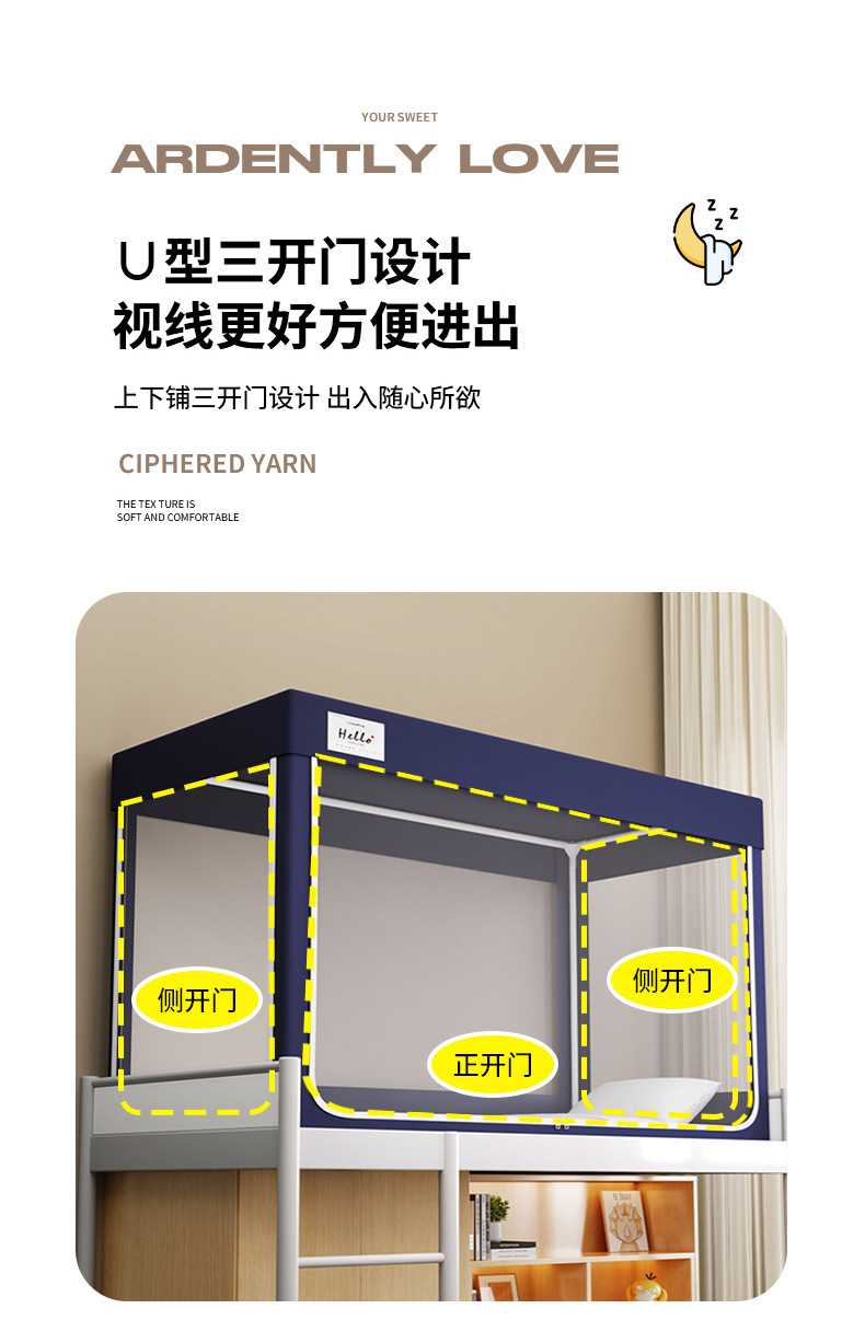 学生宿舍寝室上下铺防尘0.9m遮光蚊帐床帘上铺支架铁床幔三门蚊帐