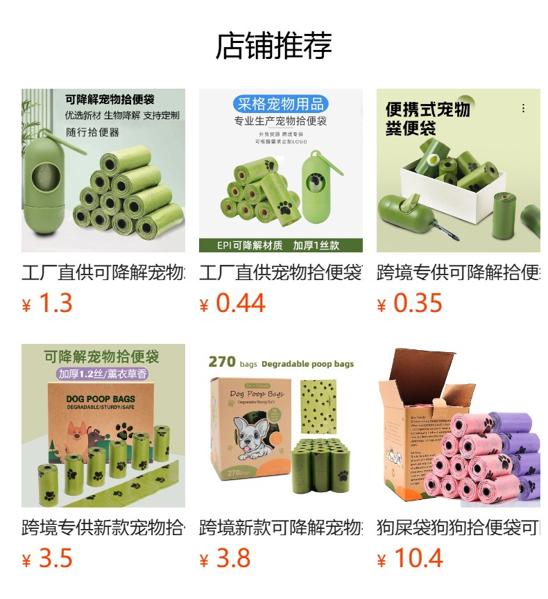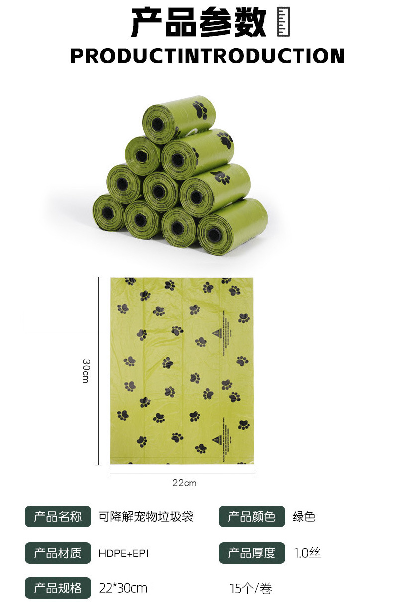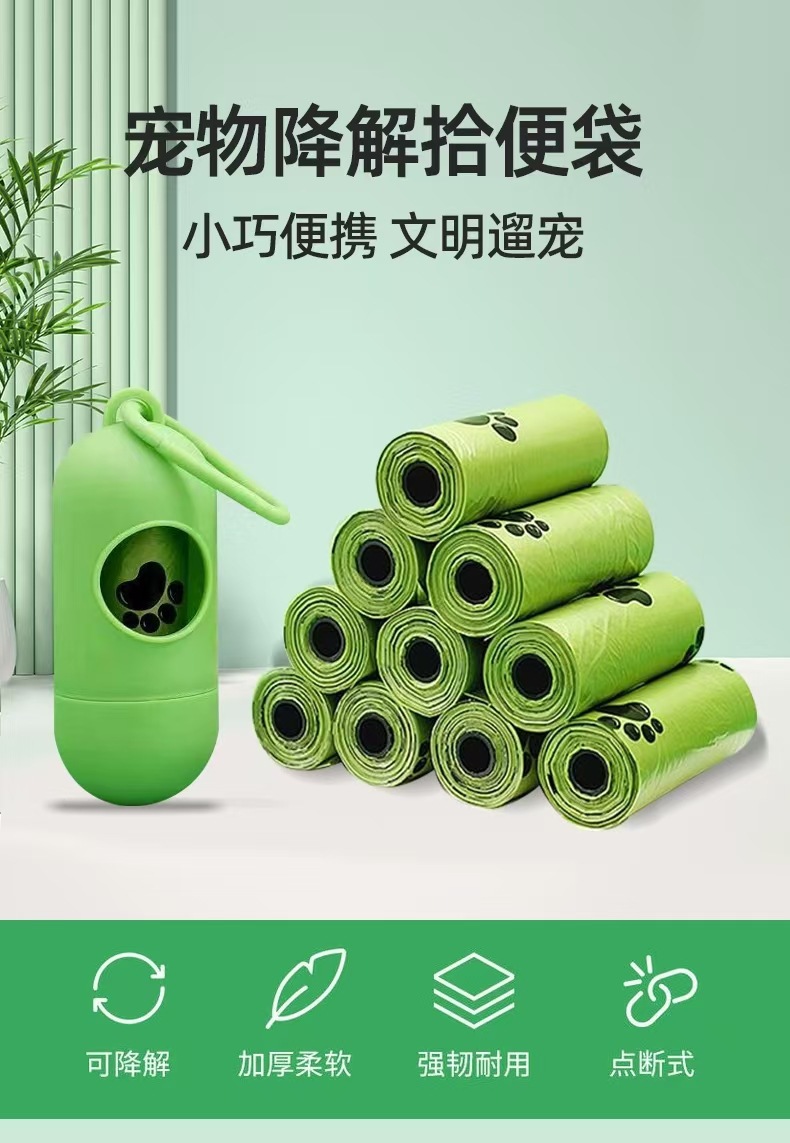 跨境专供宠物拾便袋加香加厚连卷平口式狗屎袋 可降解宠物垃圾袋