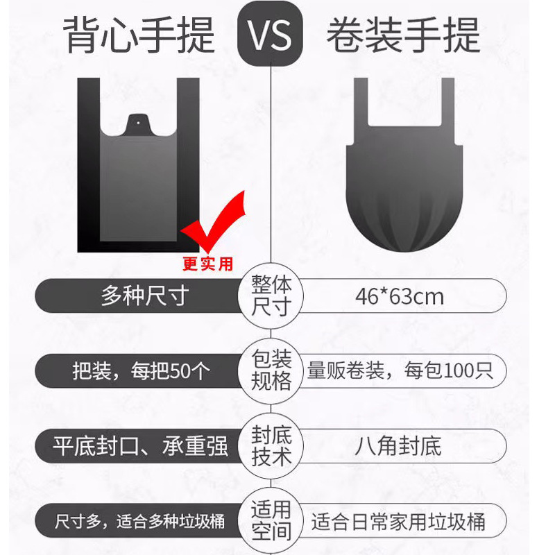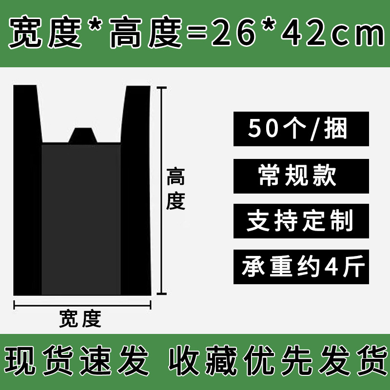 黑色垃圾袋手提式塑料袋超市水果菜市场背心袋一次性外卖打包袋子