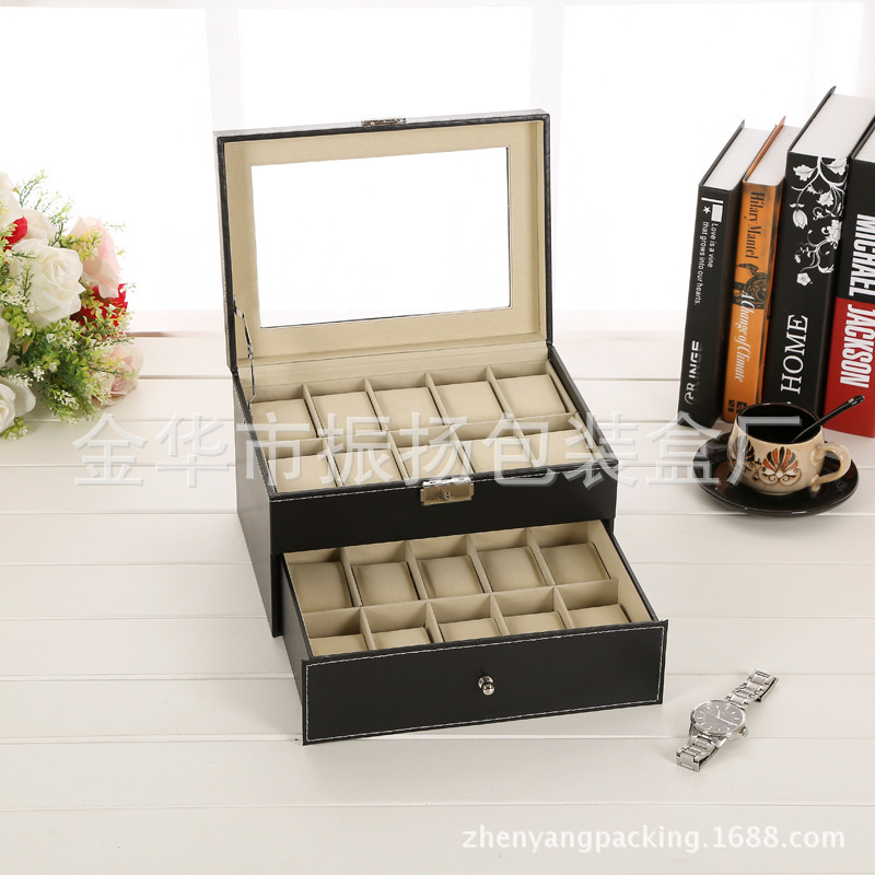 现货跨境高级感黑色手表盒手表展示盒收纳盒包装盒首饰盒包装批发