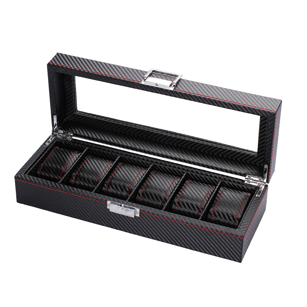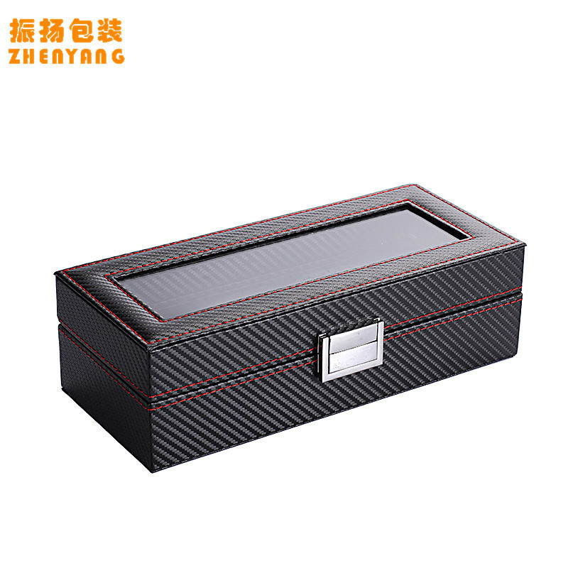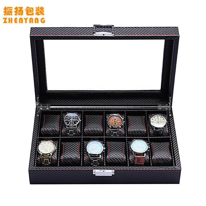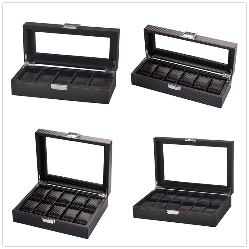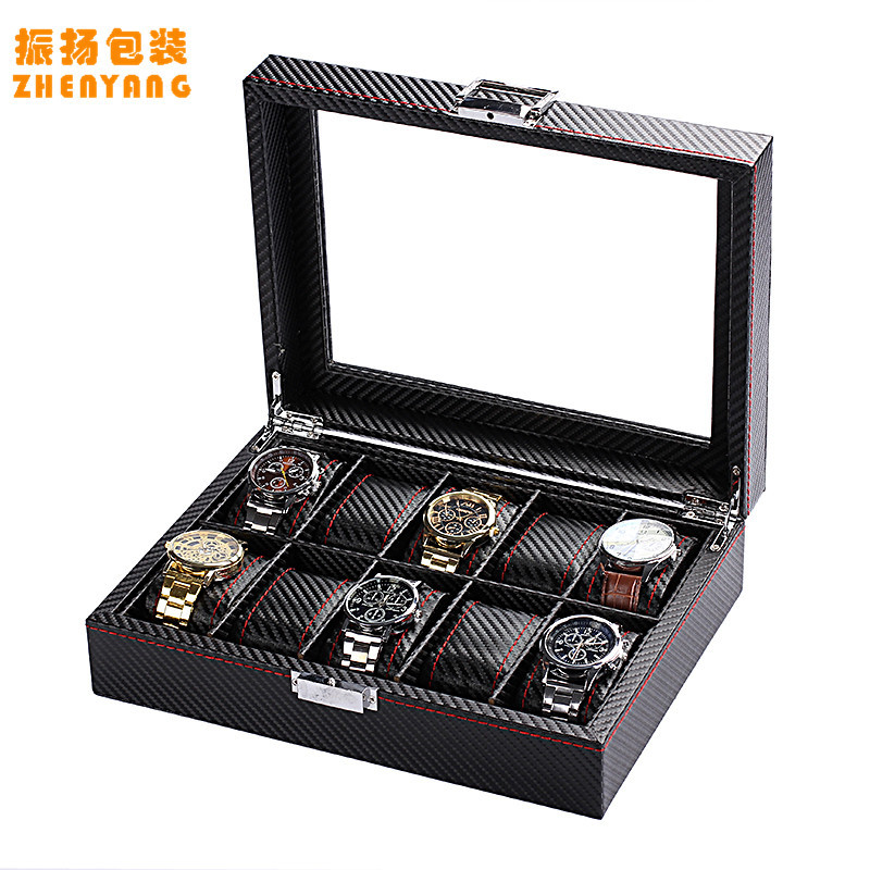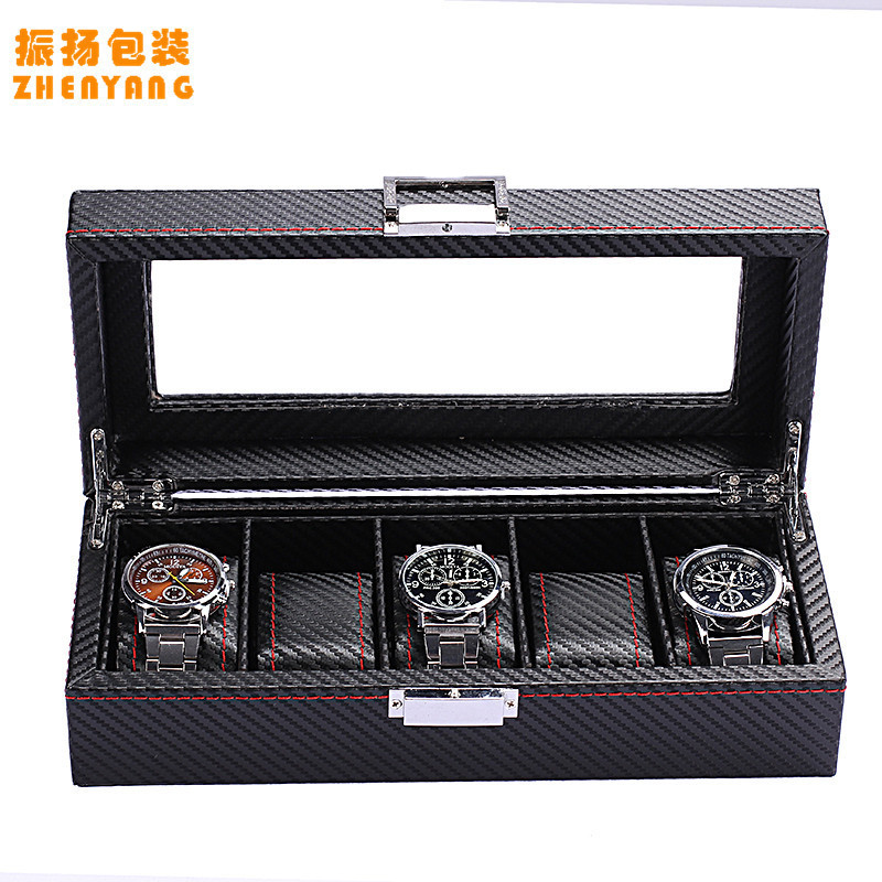跨境高级感碳纤维手表盒收纳盒透明开窗手表包装盒展示盒厂家批发