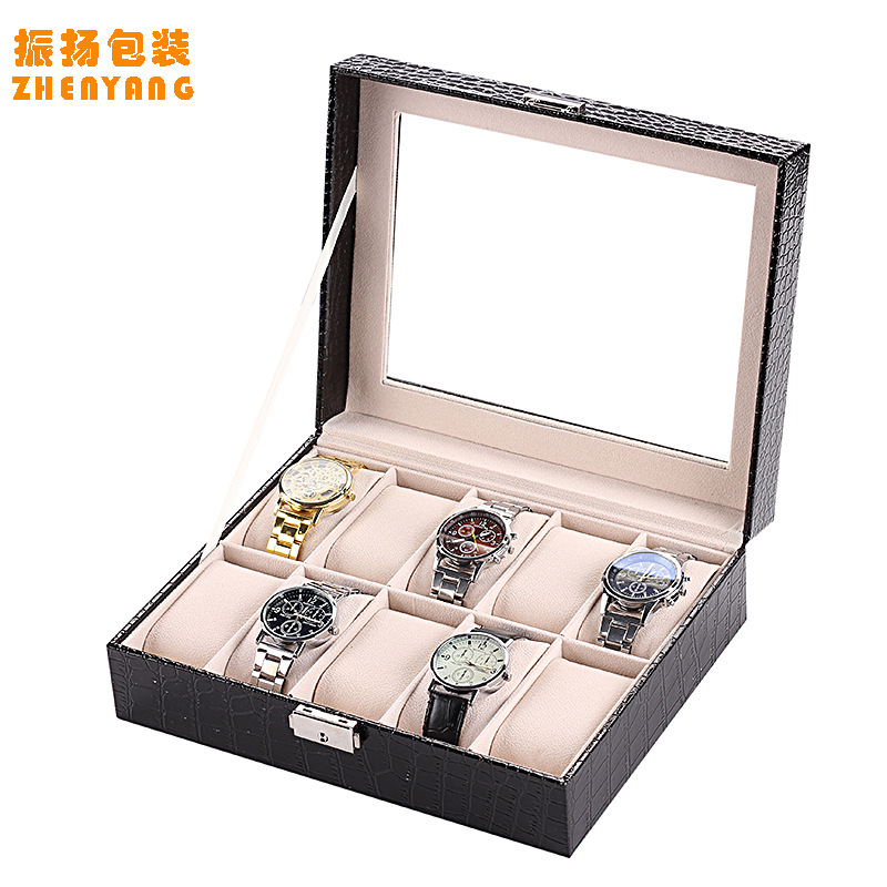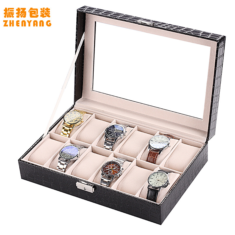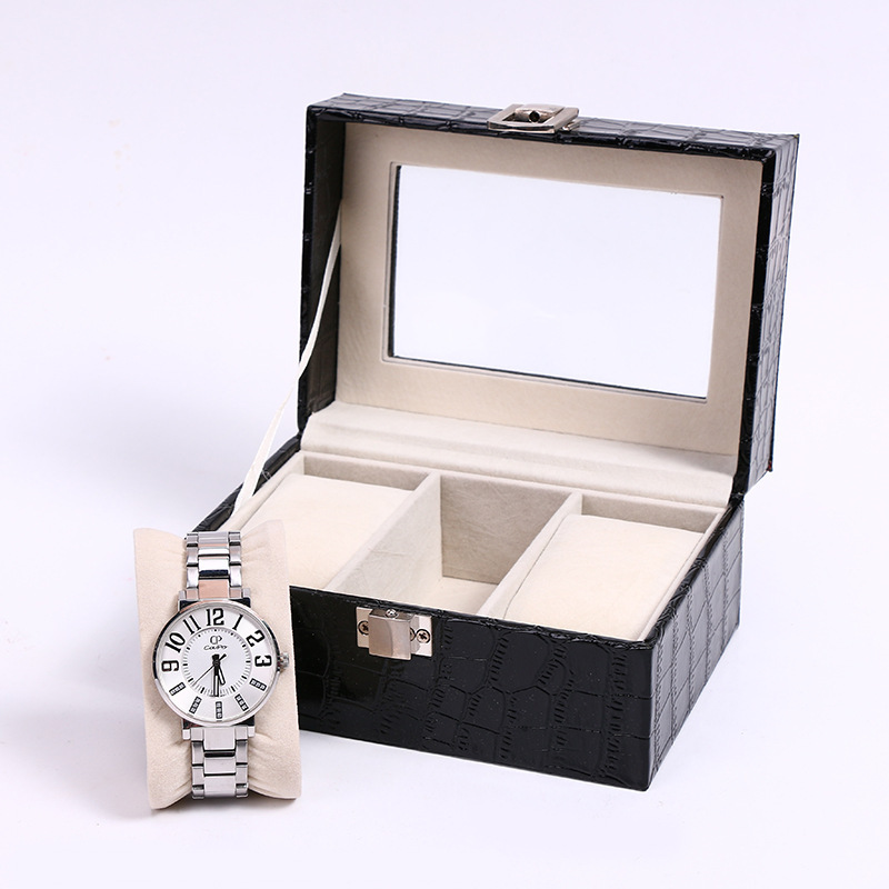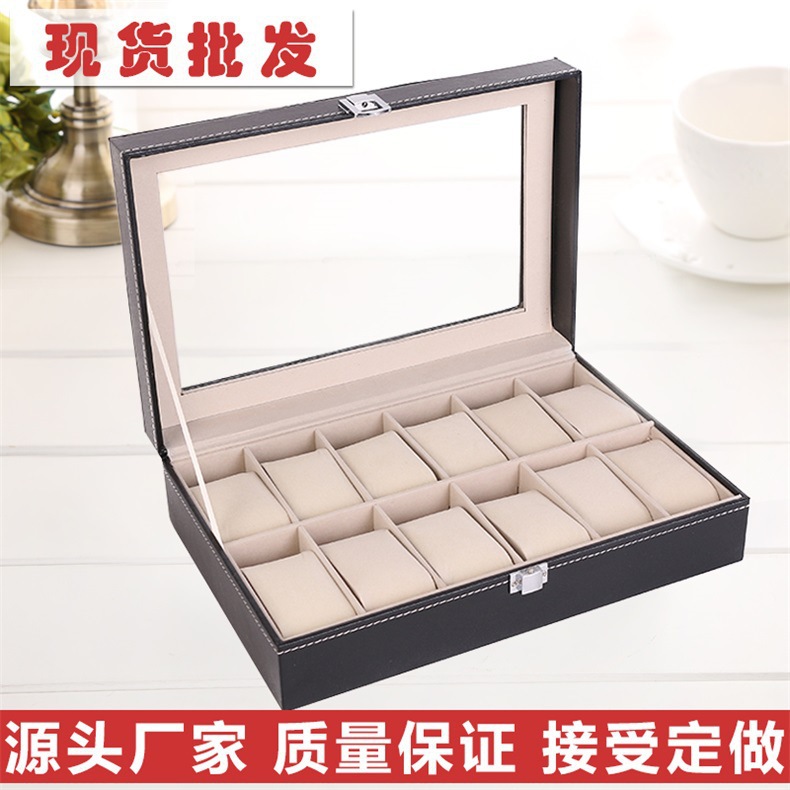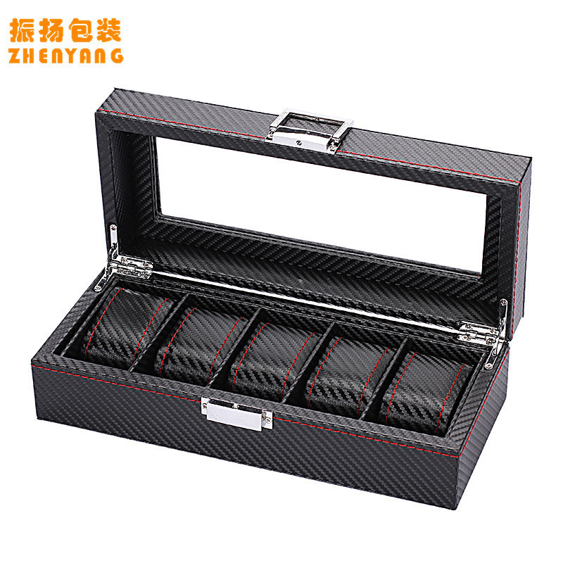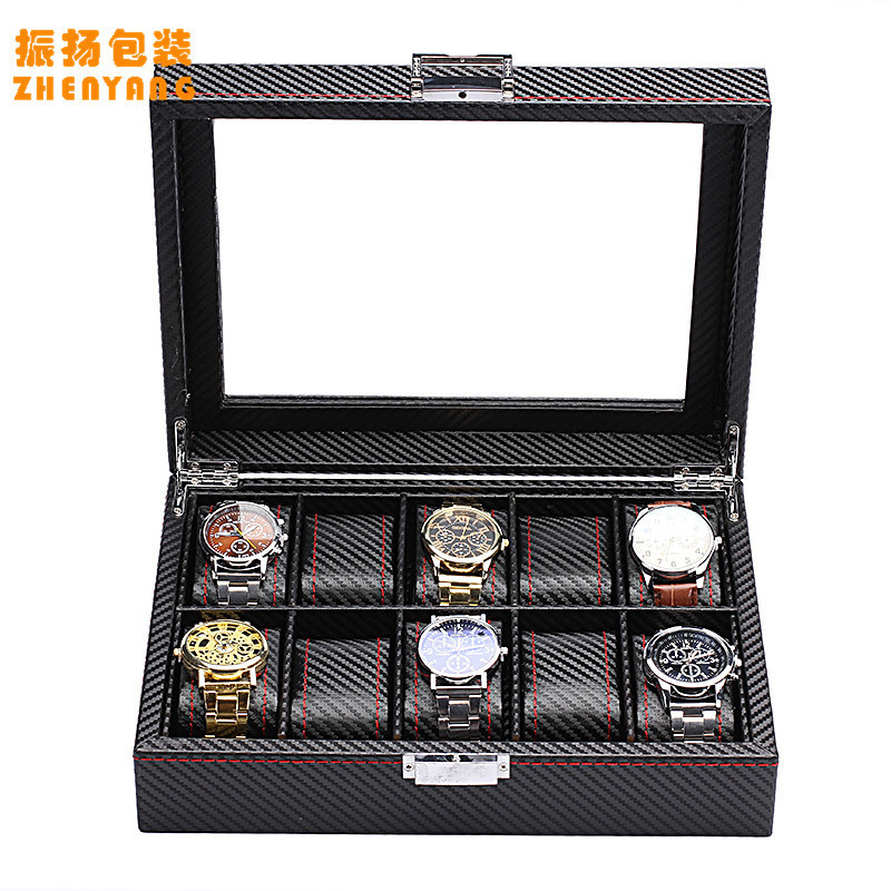 跨境高级感碳纤维手表盒收纳盒透明开窗手表包装盒展示盒厂家批发