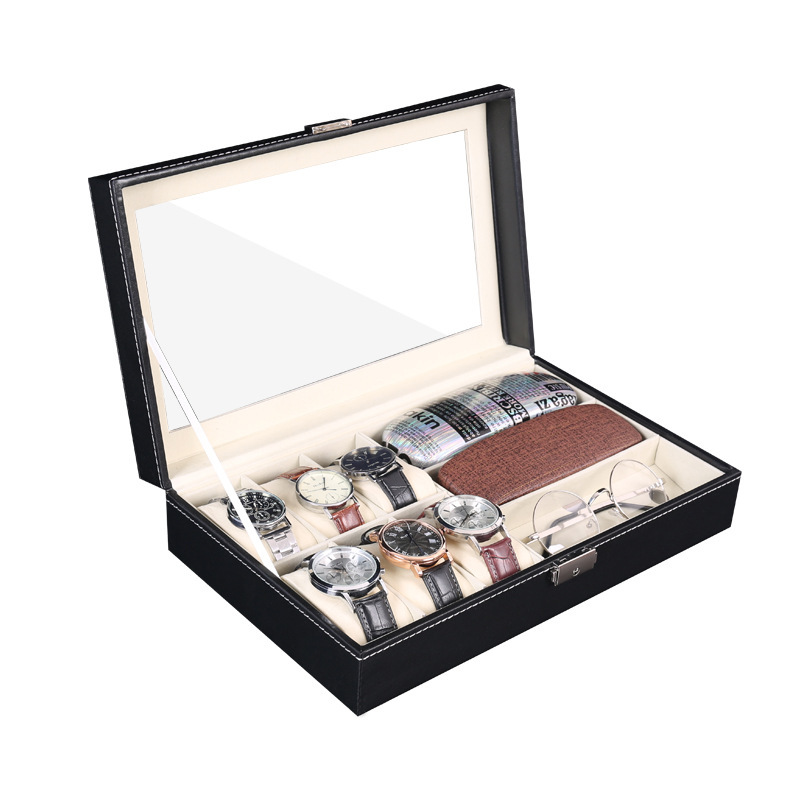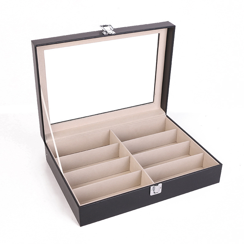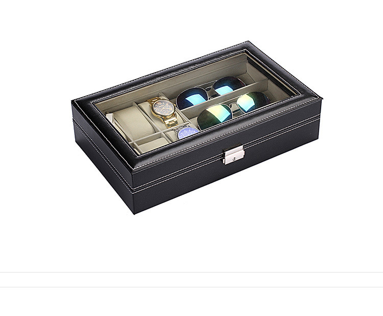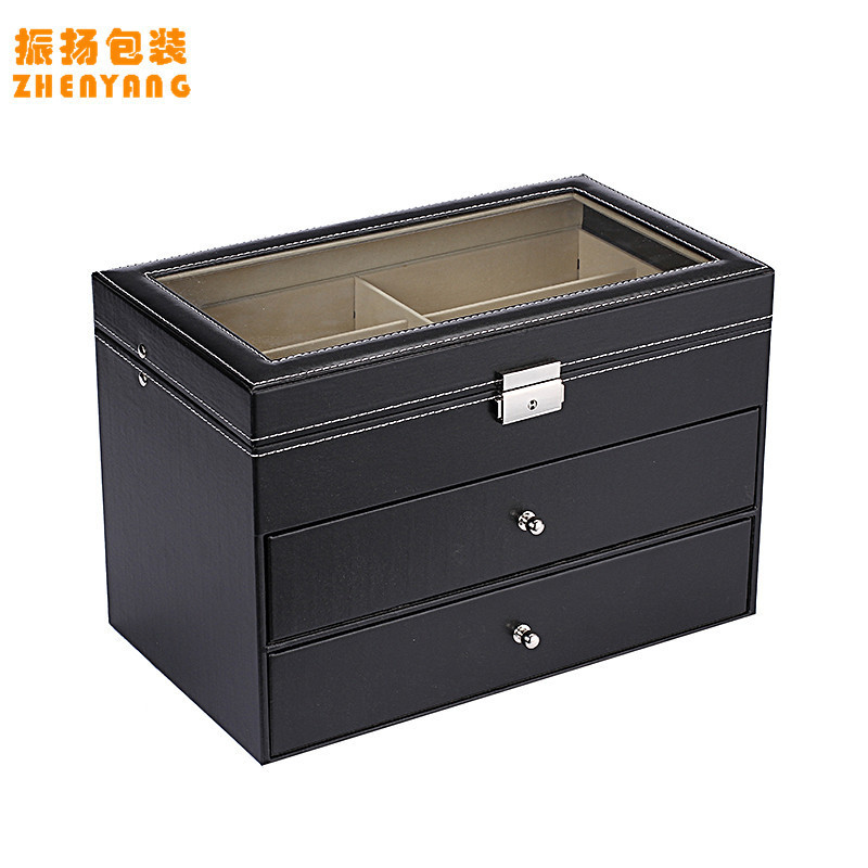 现货三层眼镜盒黑色PU皮12位墨镜包装盒皮革18位收纳盒收藏盒厂家