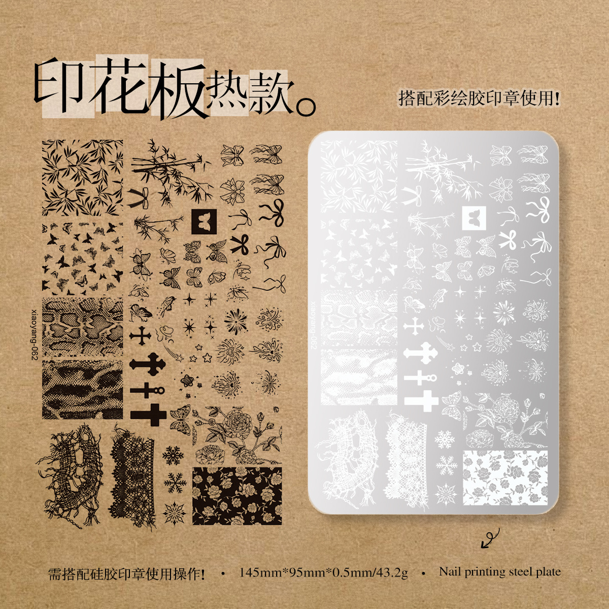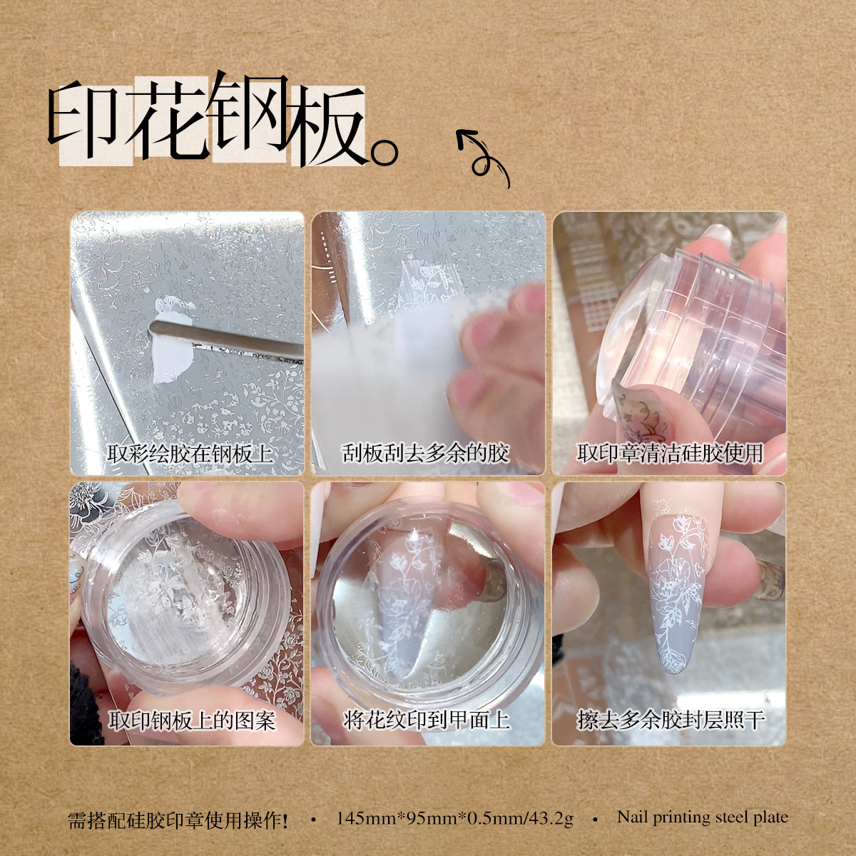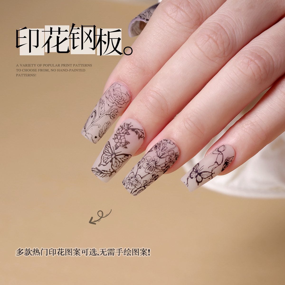 美甲钢板美甲板转印胶钢板蝴蝶花卉蕾丝法式格纹印花彩绘美甲工具