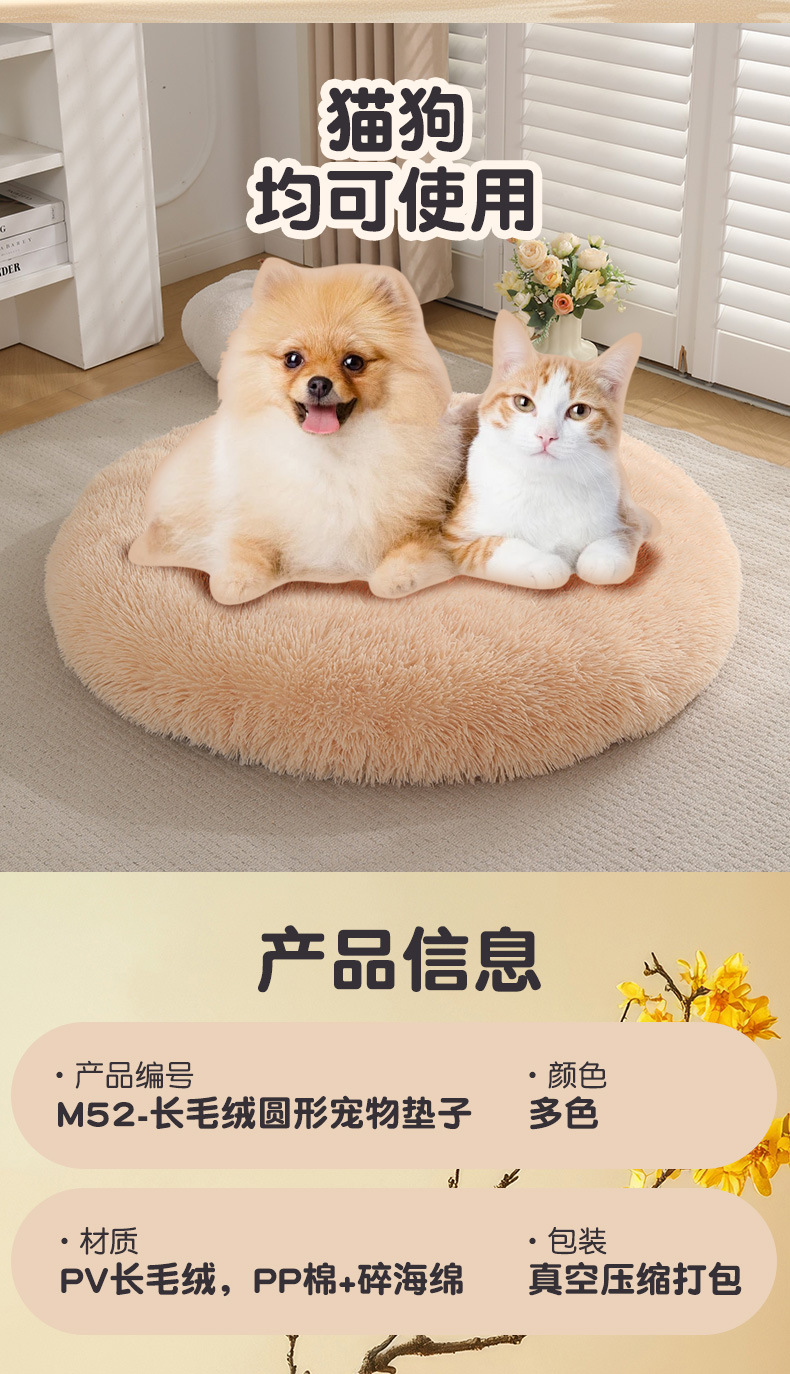 圆形宠物垫子狗垫长毛绒冬季保暖睡眠狗床猫窝狗窝宠物用品