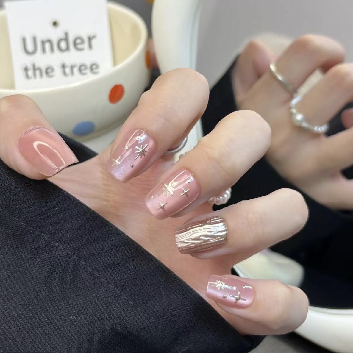 手工穿戴甲日常短甲杏仁新款显白猫眼轻奢爆款裸色美甲甲片豹纹