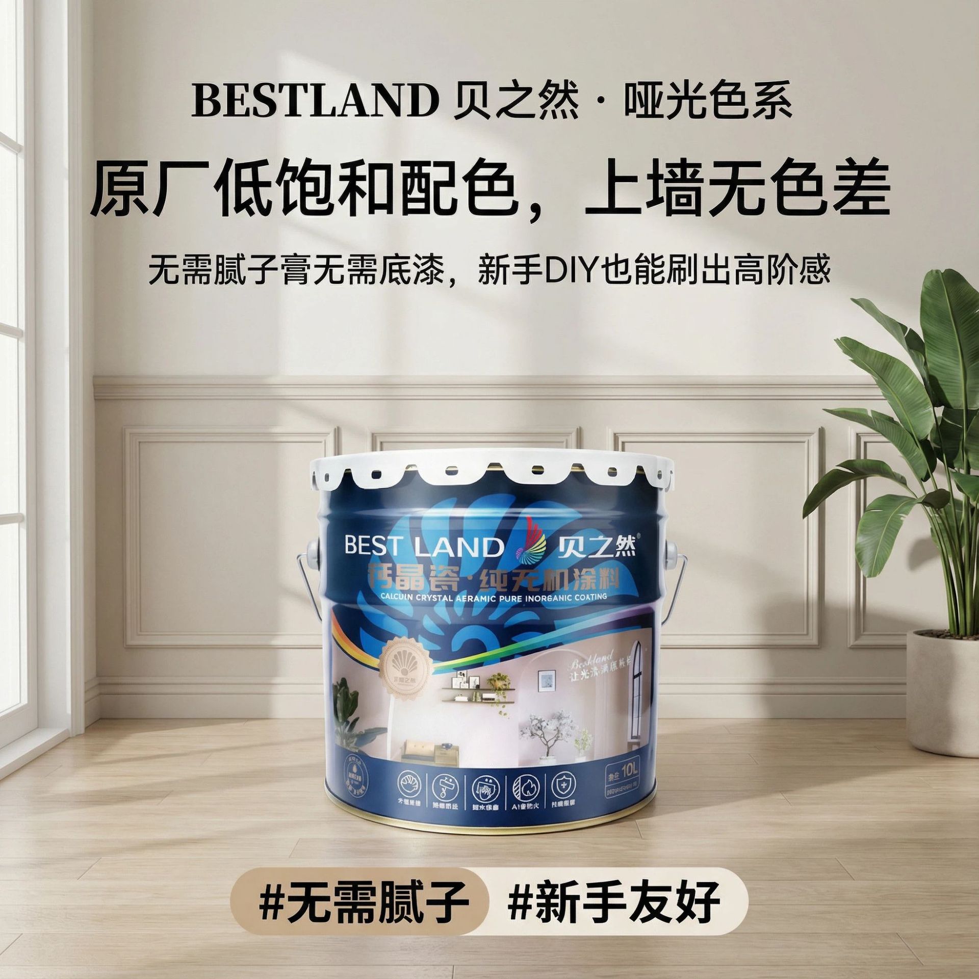 环保净味无机内墙涂料水性墙面漆家用环保0甲醛墙面专家随刷随住