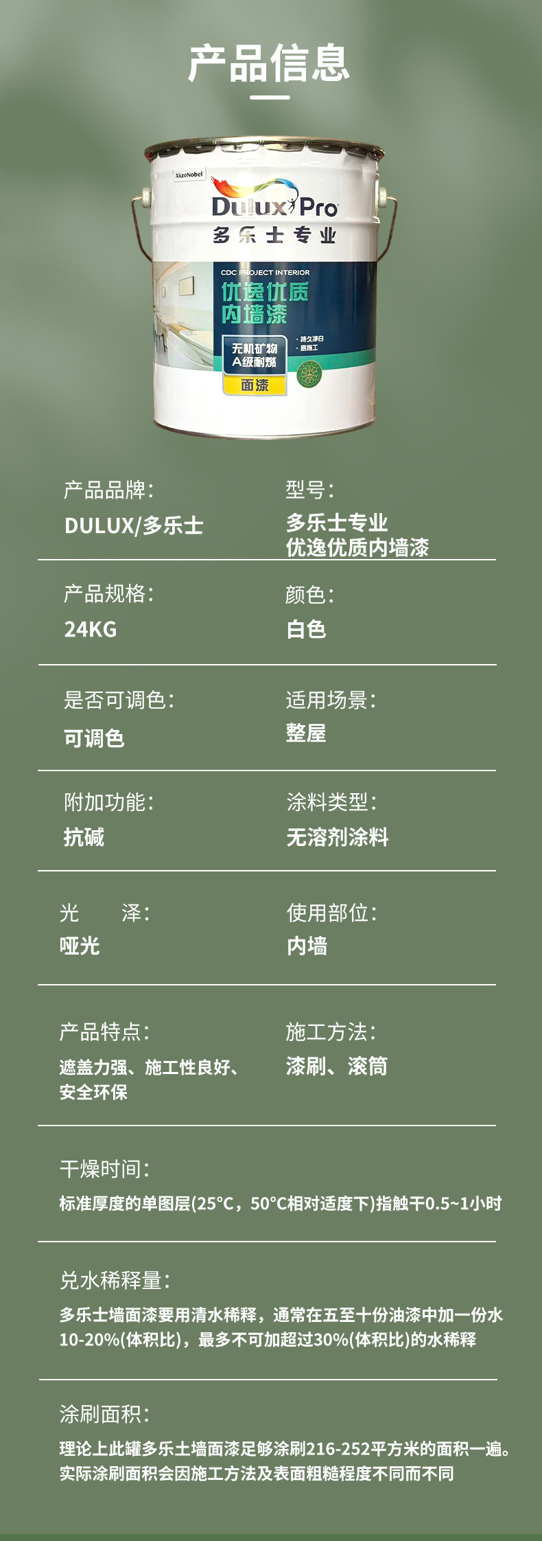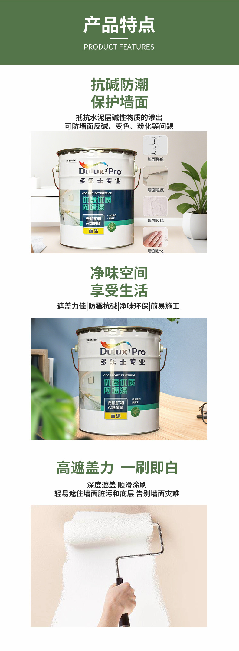 新品多乐士无机涂料专业净味优质内墙乳胶漆防霉耐擦旧墙翻新漆