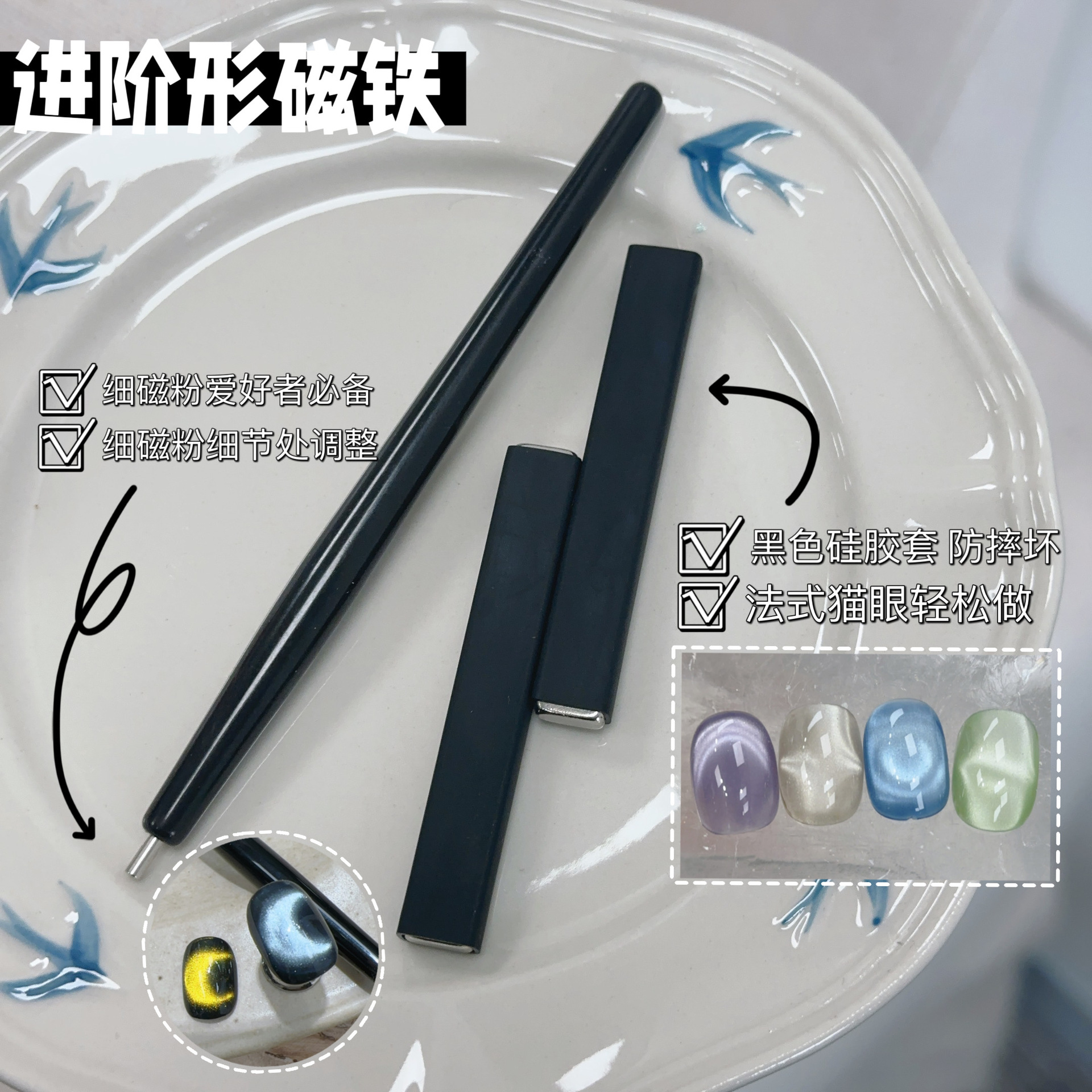 燕翎进阶磁铁长条美甲磁铁强力带保护套猫眼石磁力笔细节调整猫眼