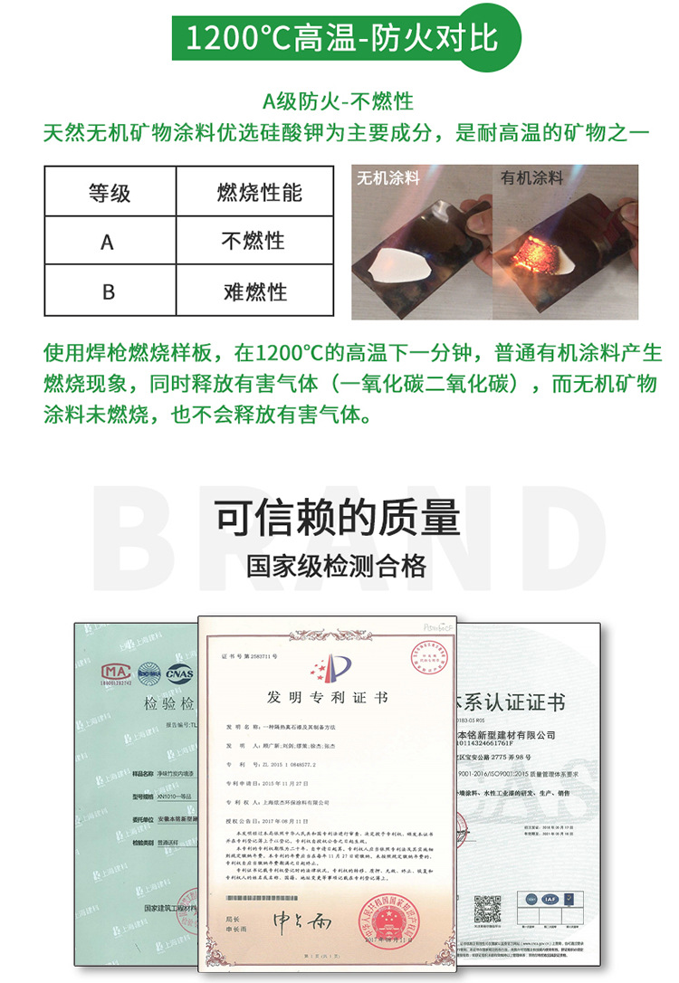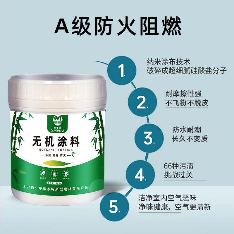 外墙内墙通用防火阻燃无机涂料耐高温防霉防潮墙面水性净味乳胶漆