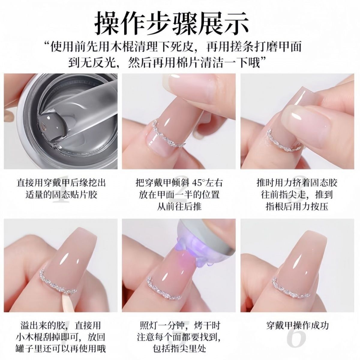 跨境新款高强度固态贴片胶甲片粘合剂光疗指甲贴片凝胶不伤甲批发