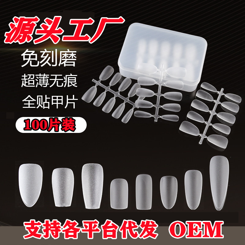 街遇穿戴甲甲片美甲片无痕磨砂免刻磨美甲店延长甲假指甲盒装100
