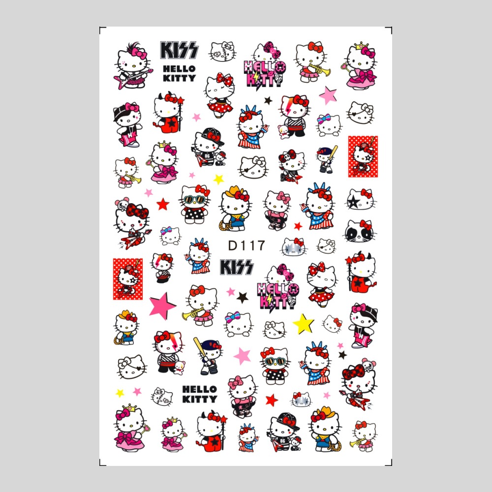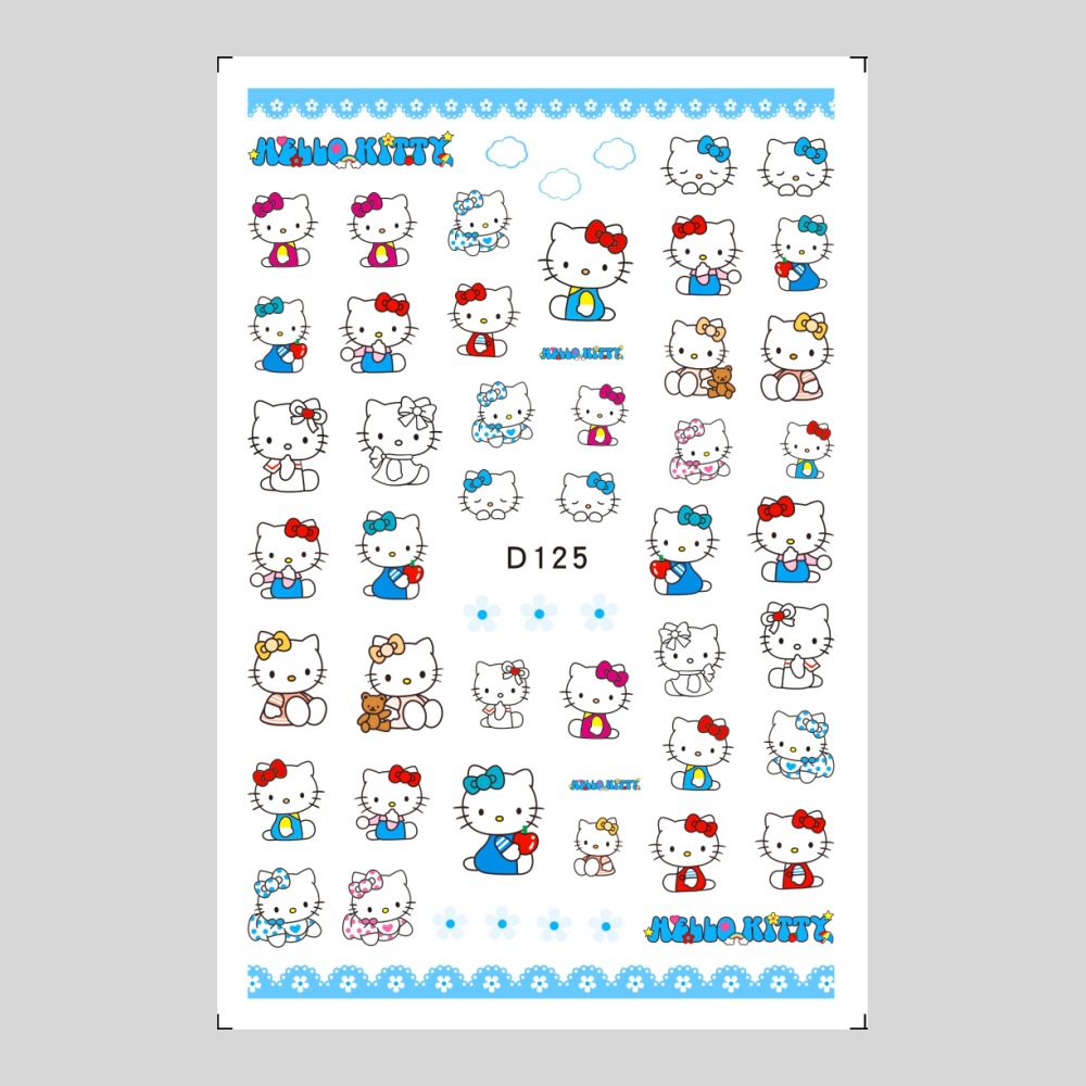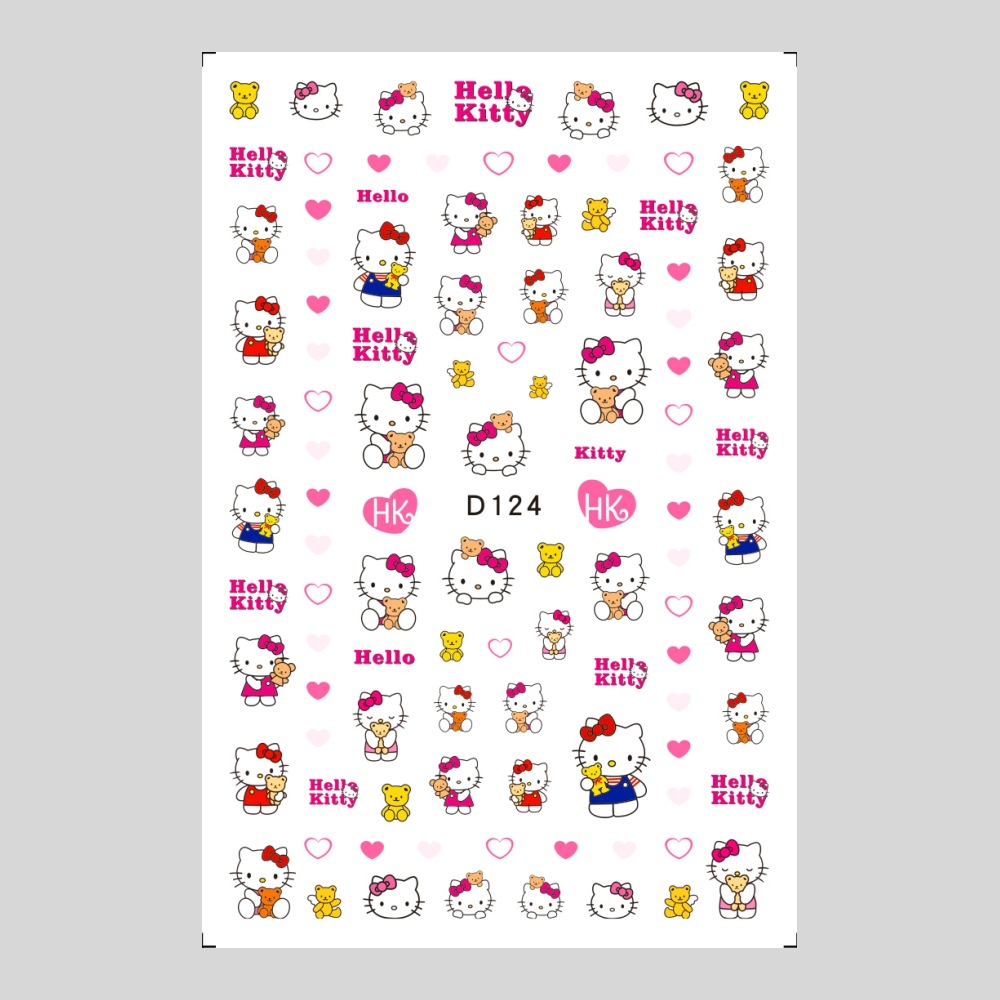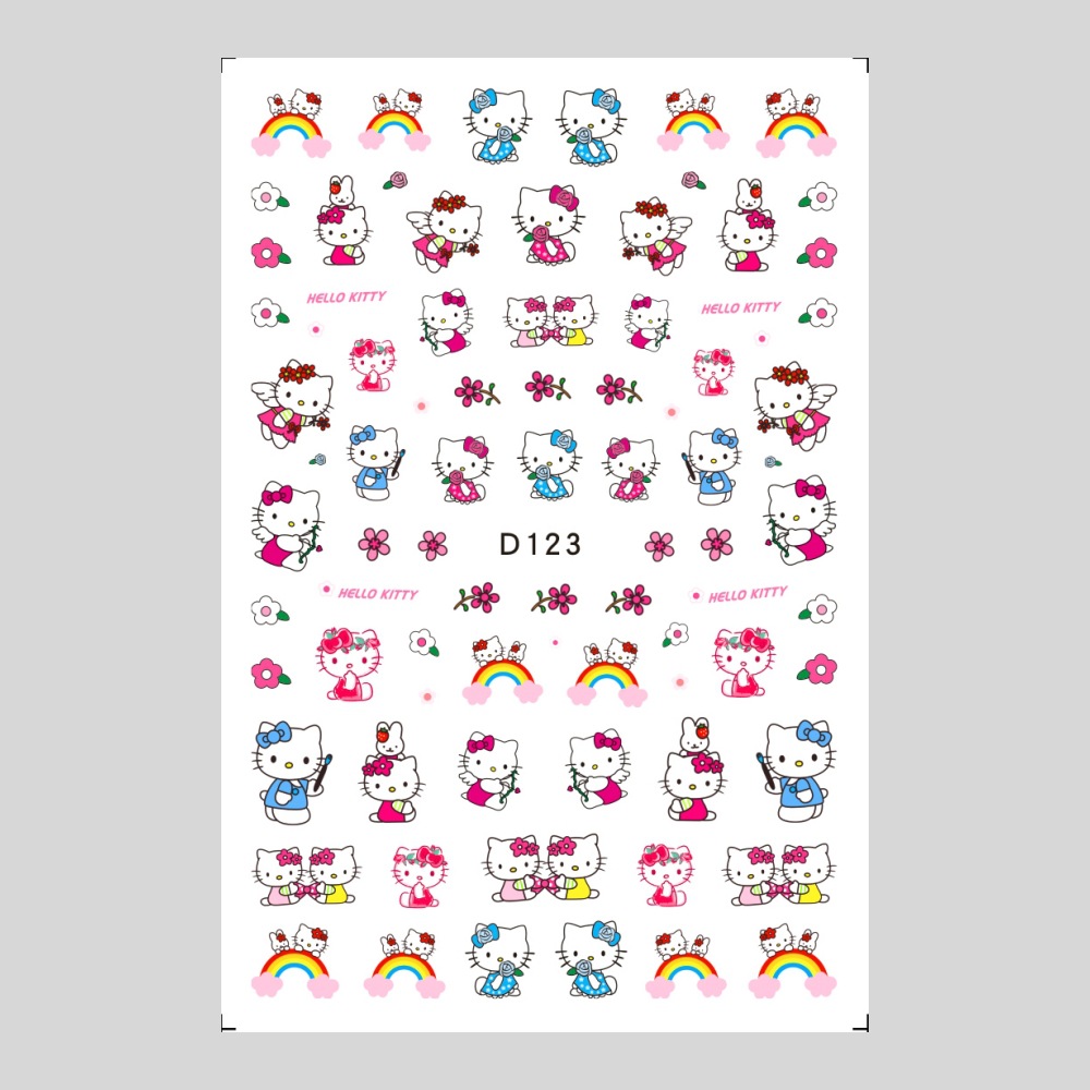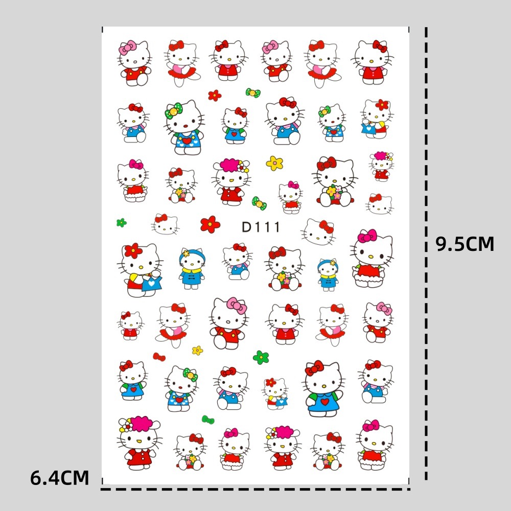 美甲贴纸新款可爱KT猫咪背胶防水指甲贴纸3D彩印hellokitty美甲贴