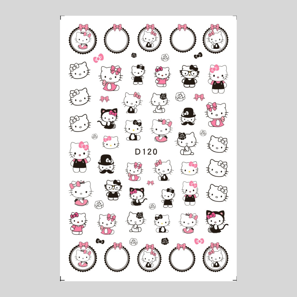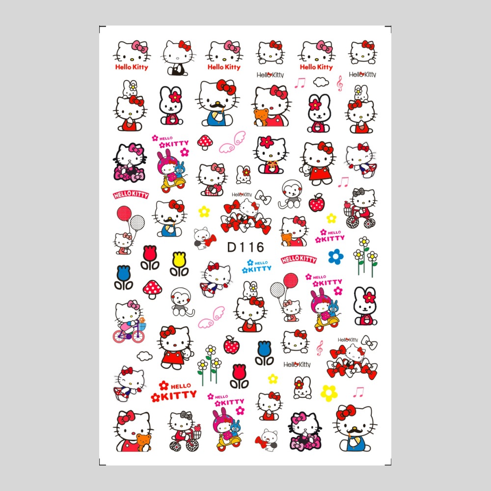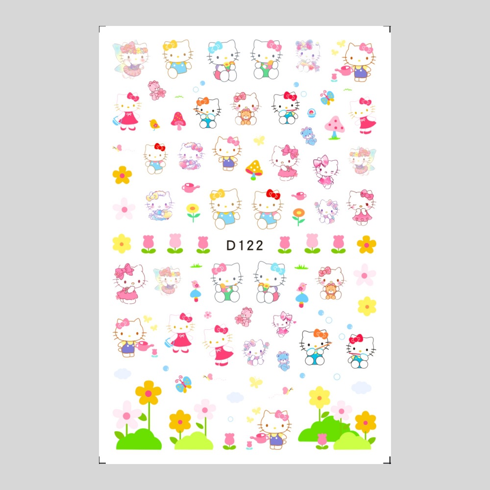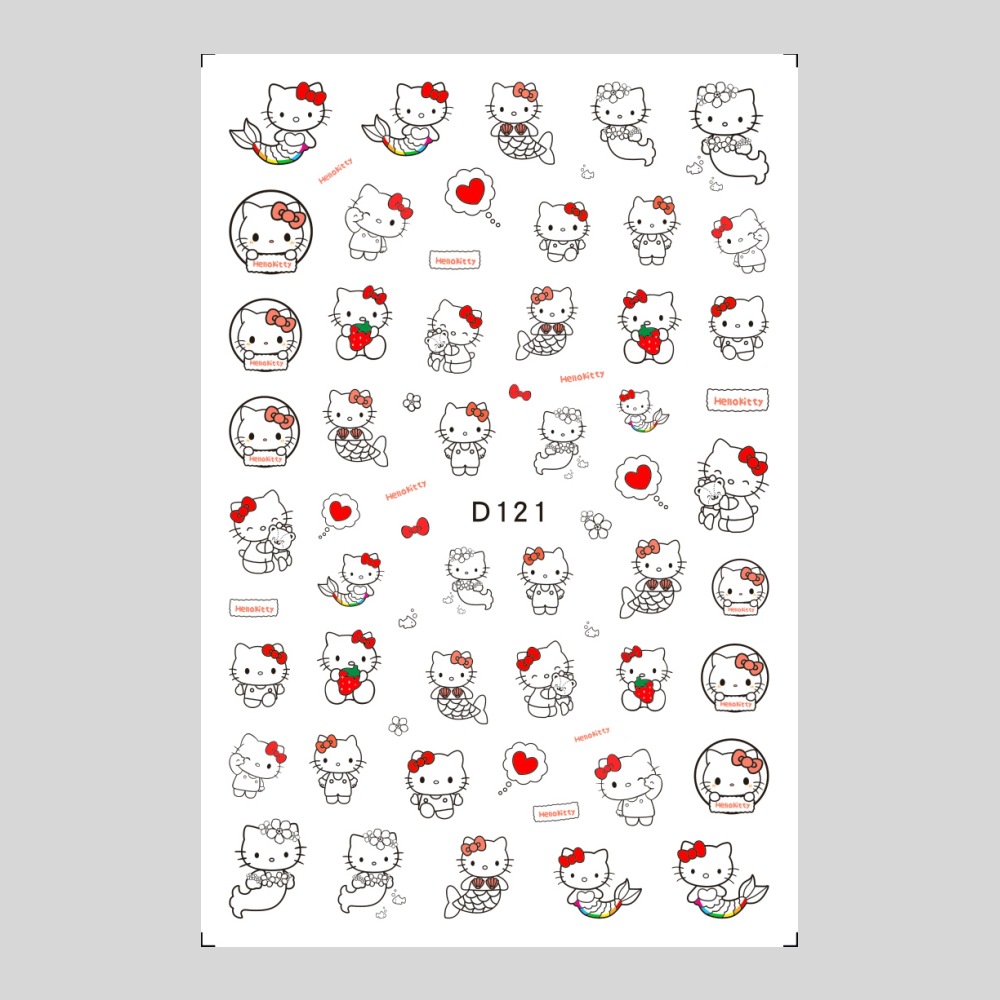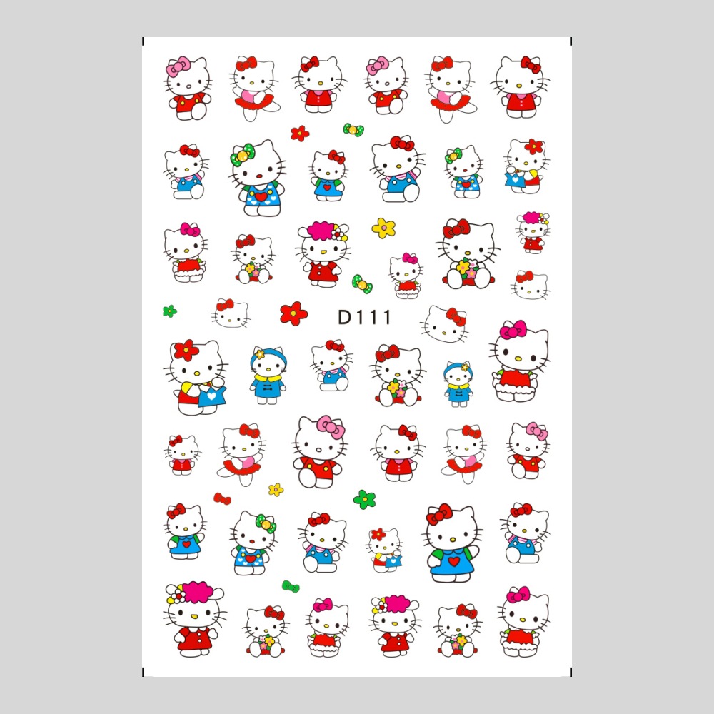 美甲贴纸新款可爱KT猫咪背胶防水指甲贴纸3D彩印hellokitty美甲贴