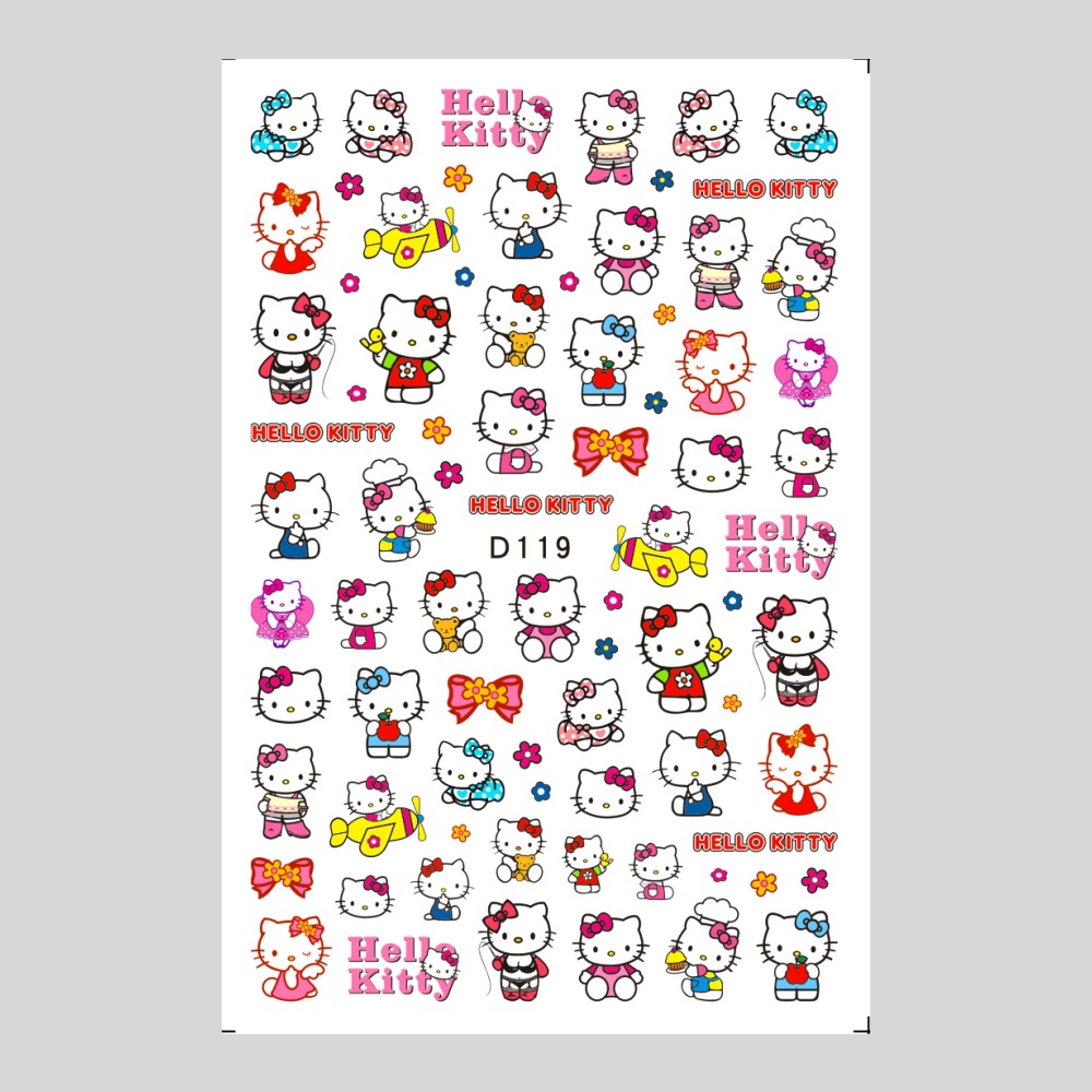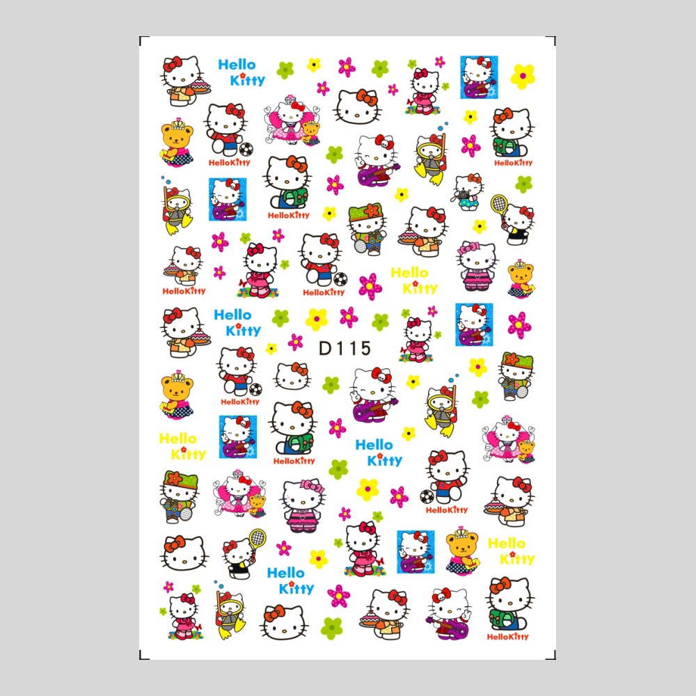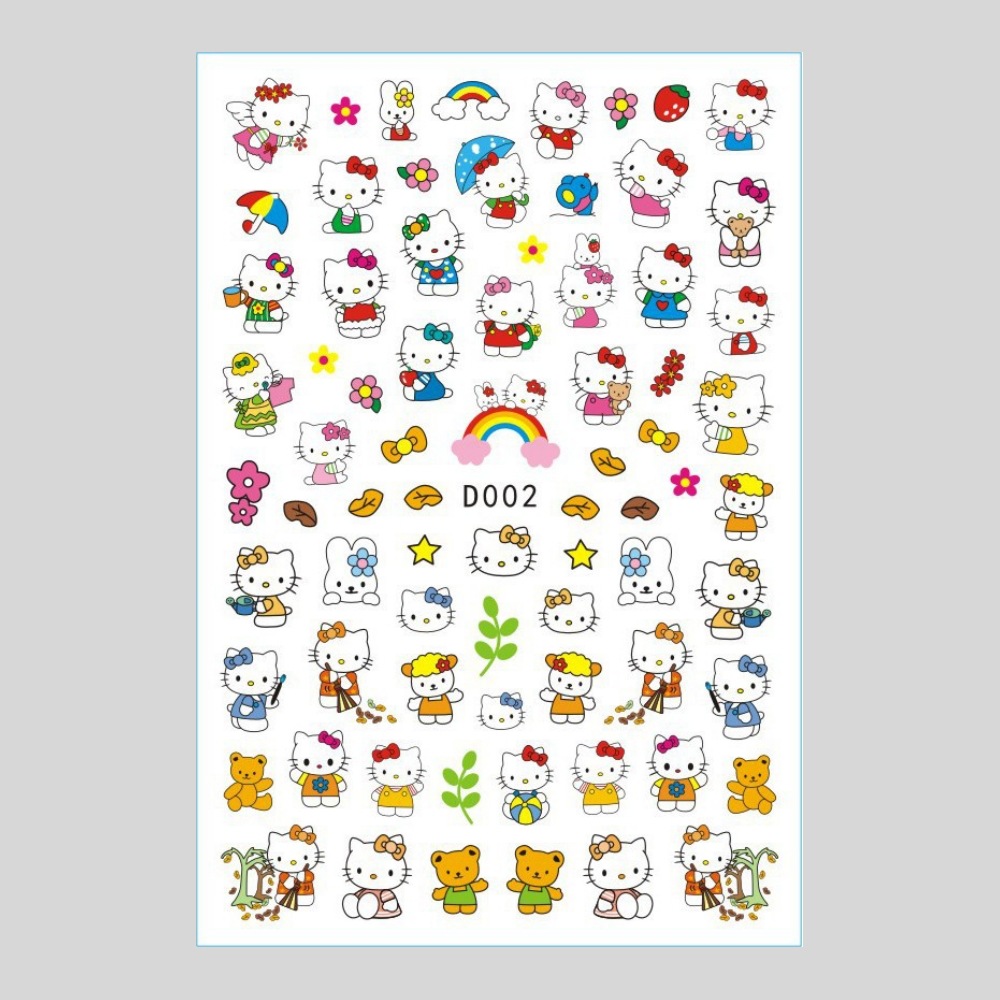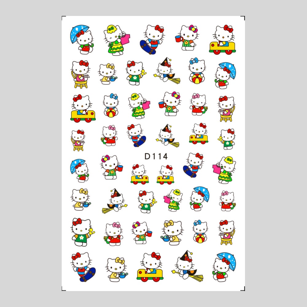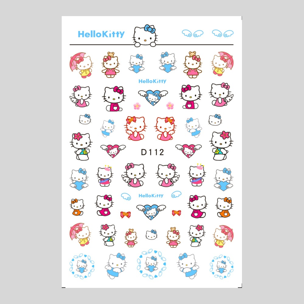 美甲贴纸新款可爱KT猫咪背胶防水指甲贴纸3D彩印hellokitty美甲贴