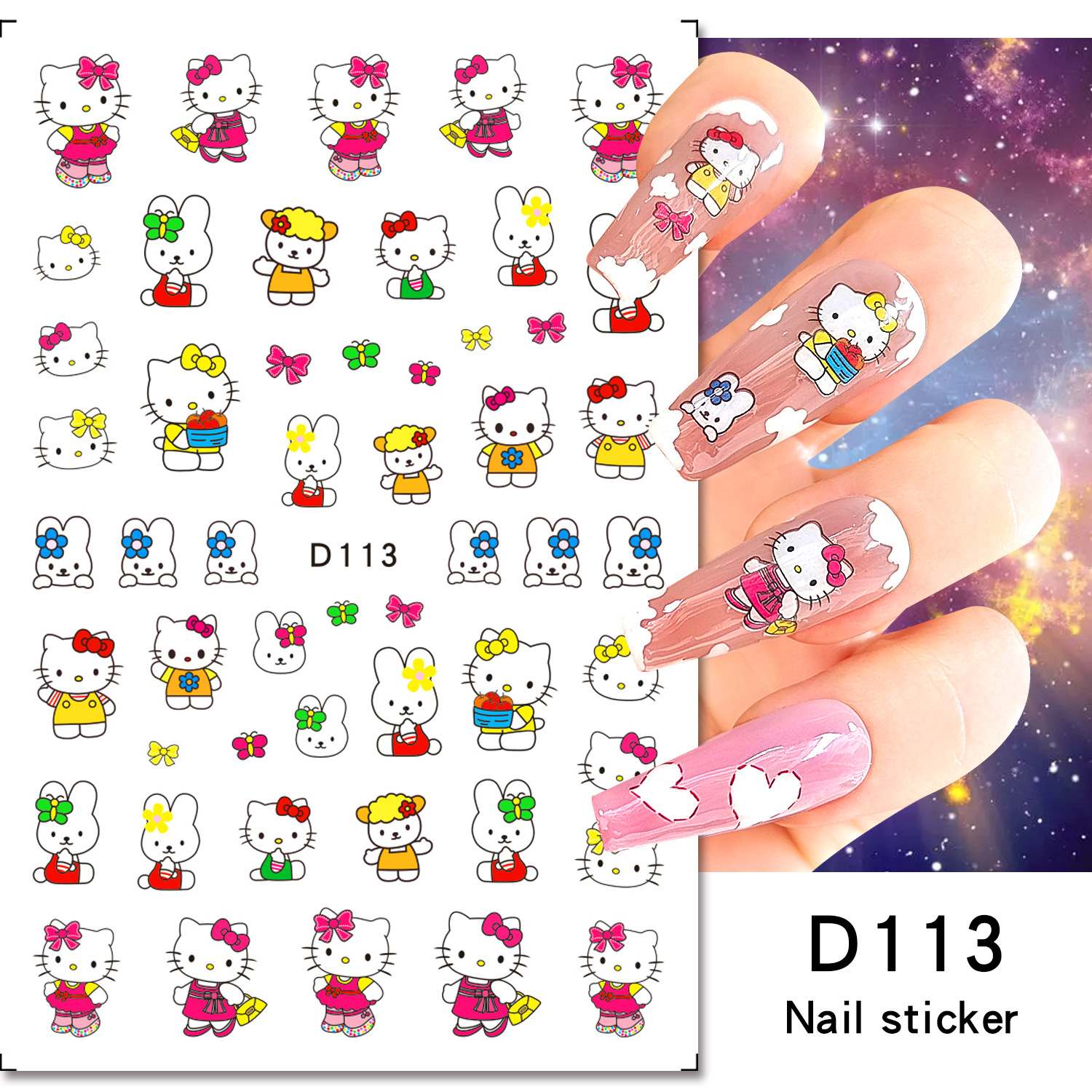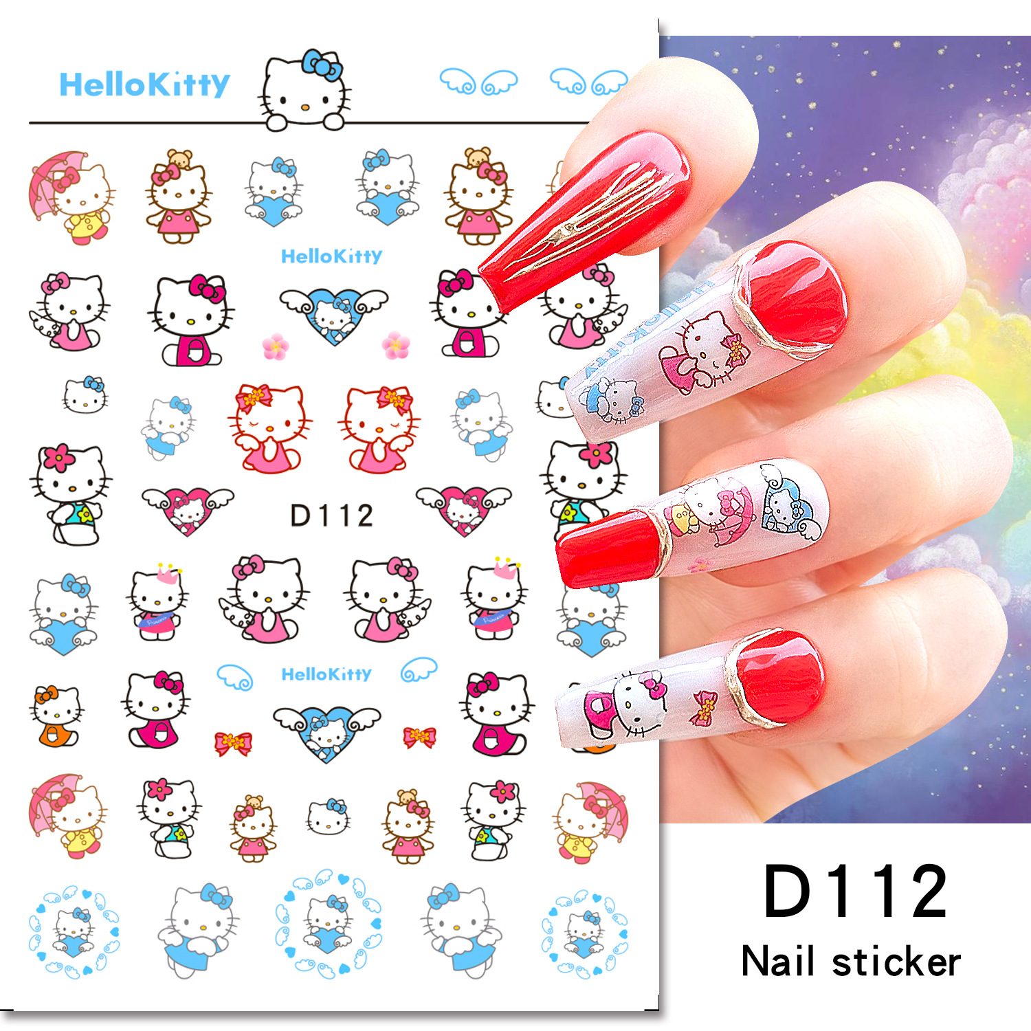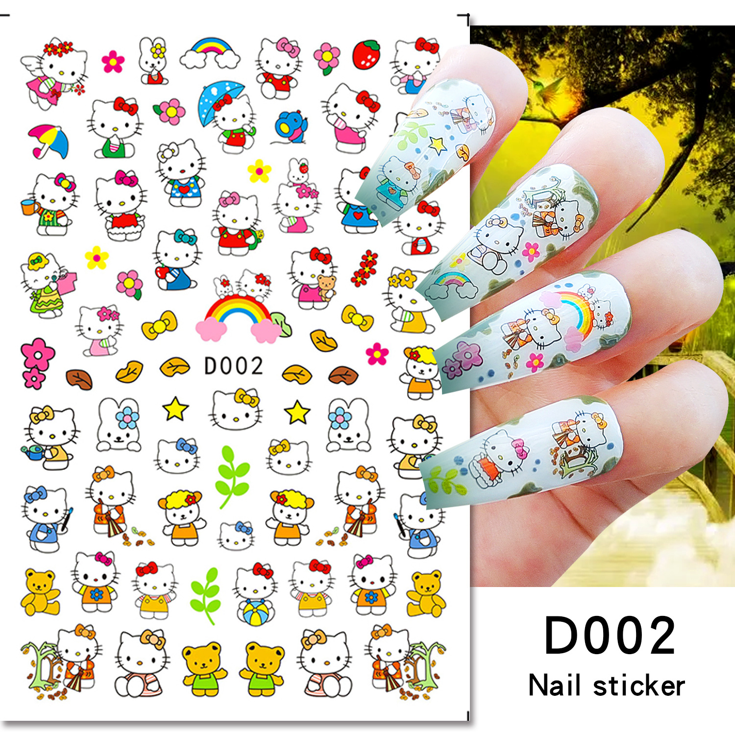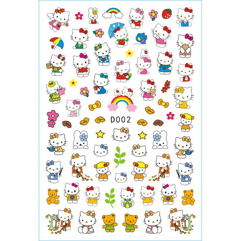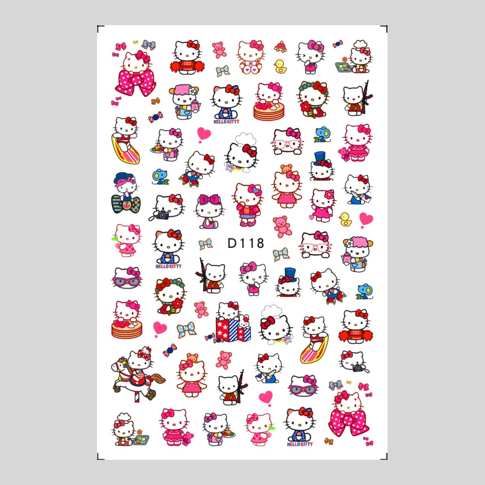 美甲贴纸新款可爱KT猫咪背胶防水指甲贴纸3D彩印hellokitty美甲贴