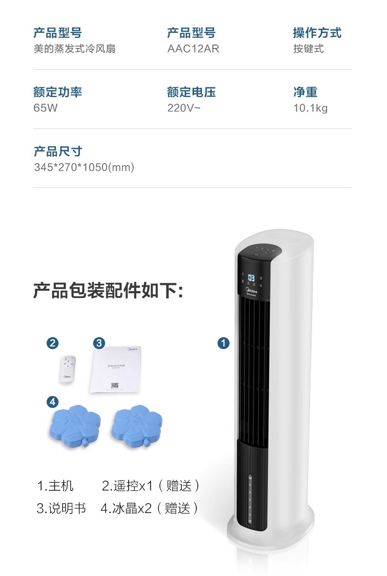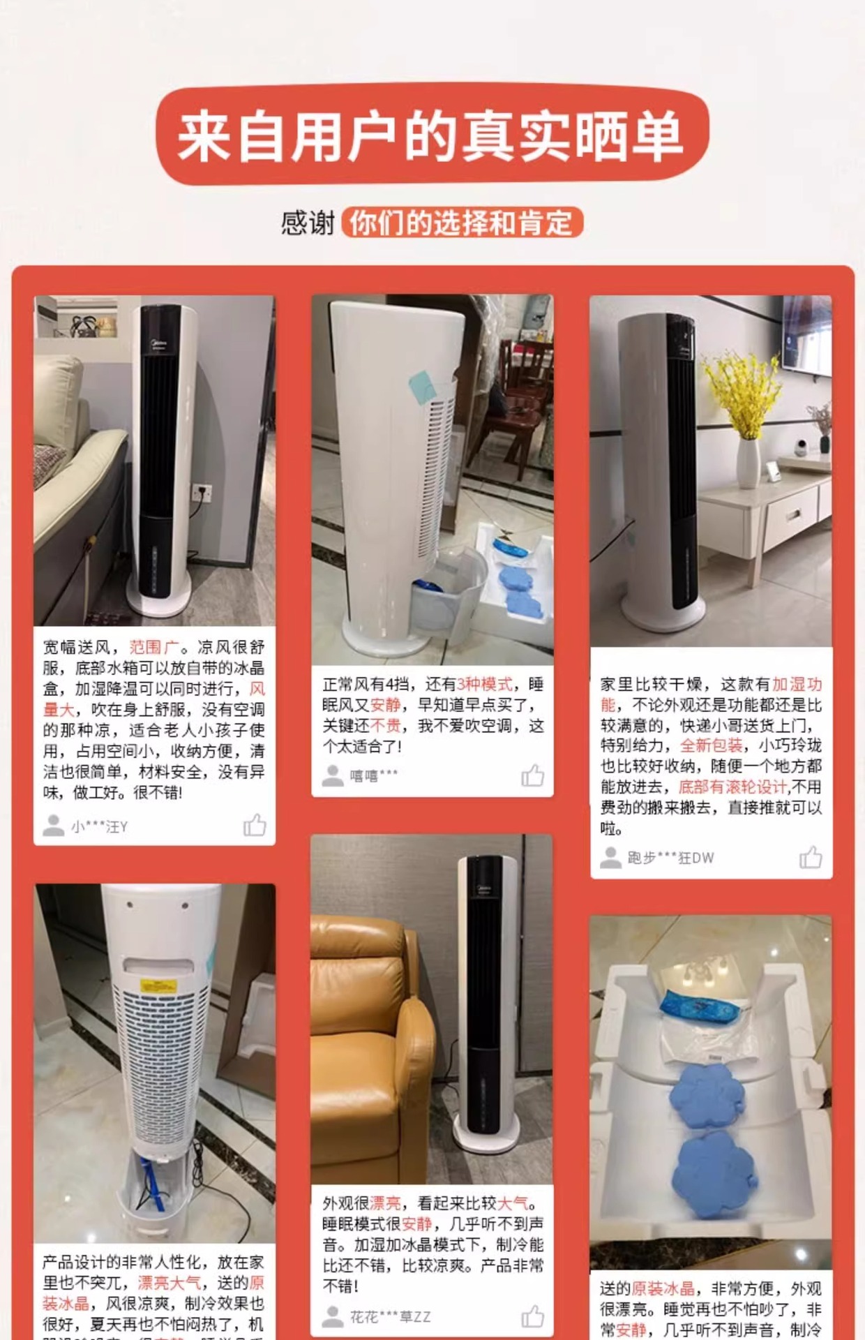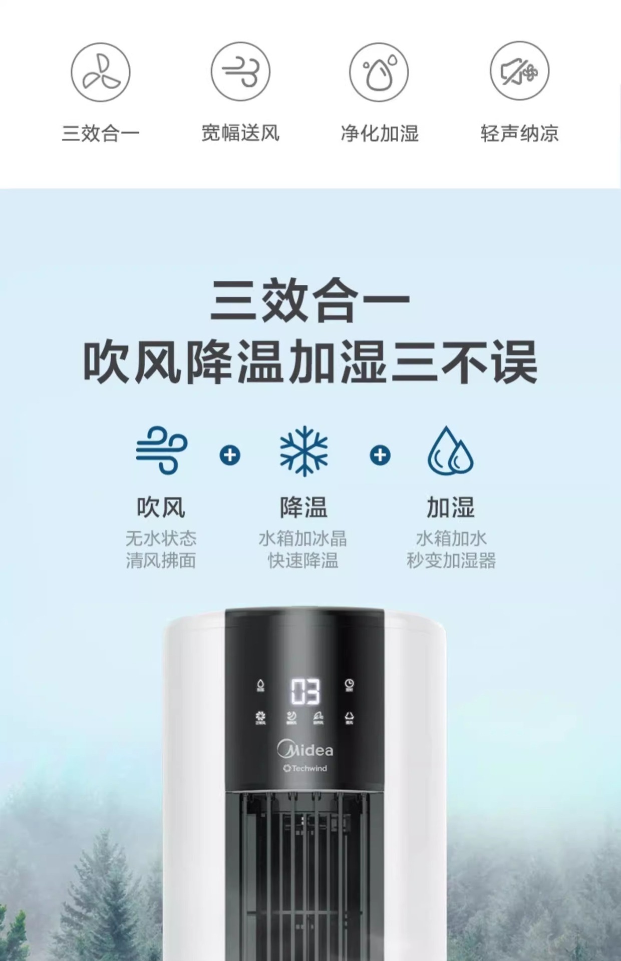 美的空调扇冷风机立式水空调冷风扇家用制冷客厅移动静轻音冷气扇
