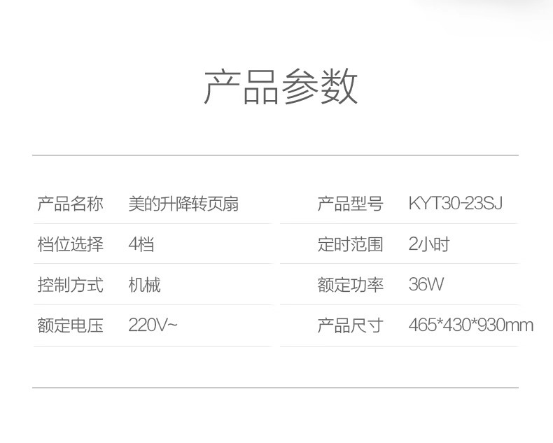 美的电风扇落地扇家用台立式升降鸿运扇宿舍卧室转页扇KYT30-23SJ