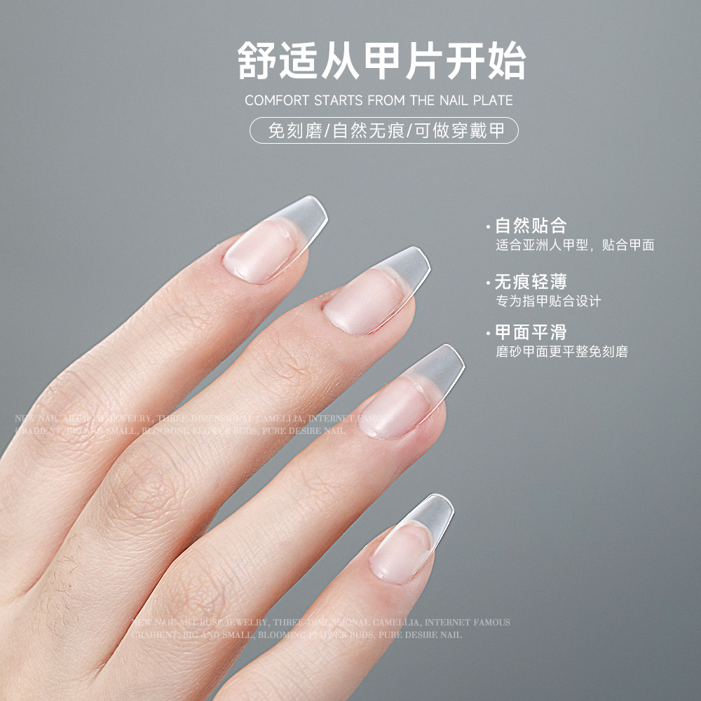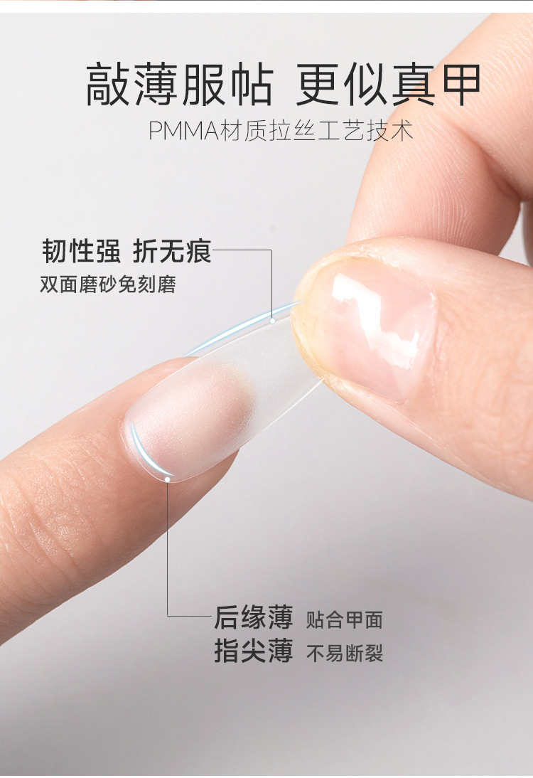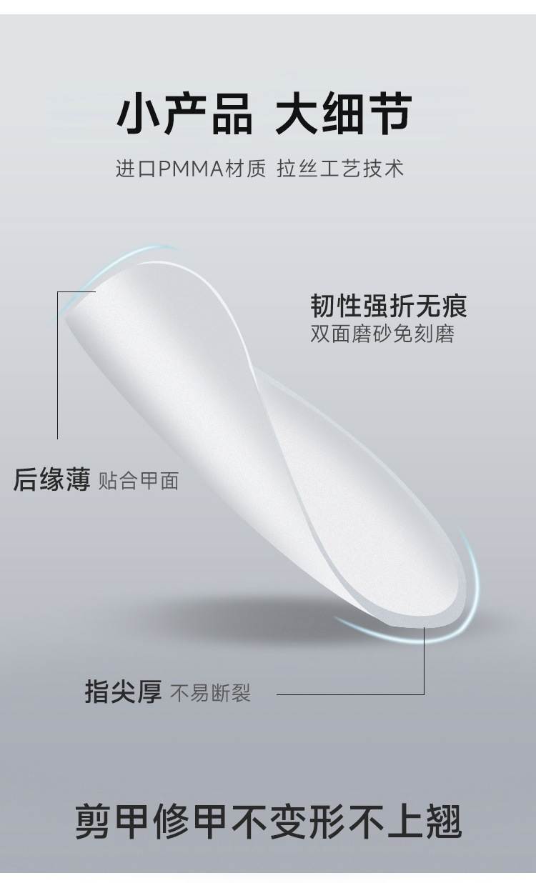 盒装短款穿戴甲甲片超薄无痕免刻磨分码儿童穿戴甲片杏仁美甲甲片
