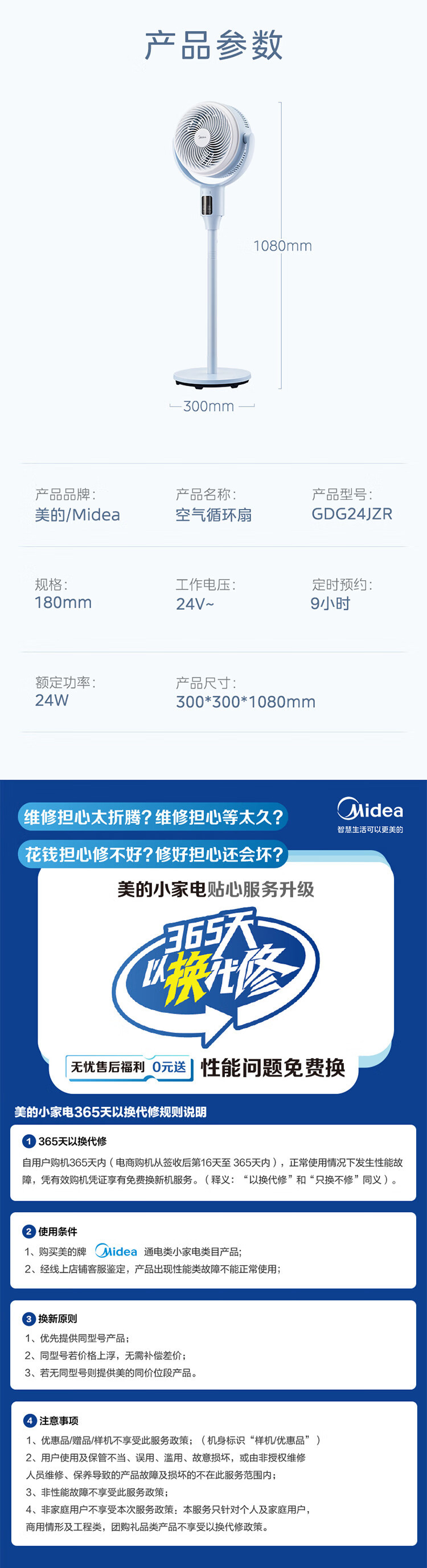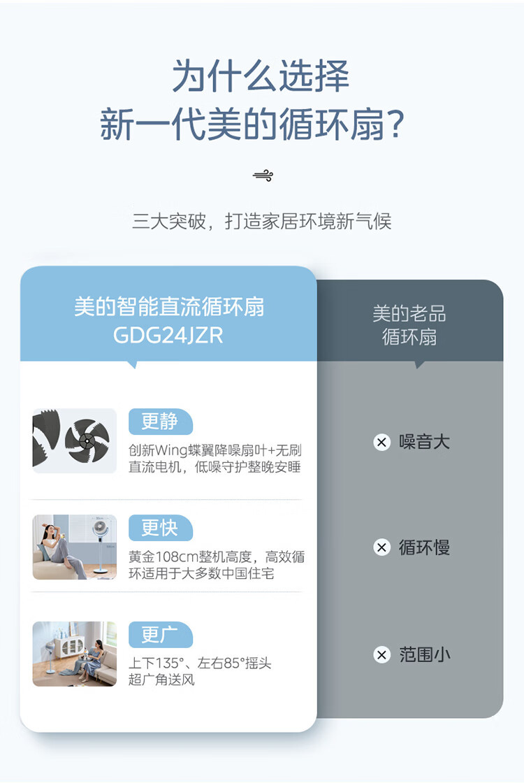 美的电风扇空气循环扇家用遥控节直流对流GDG24JZR/GDG24TZR静音