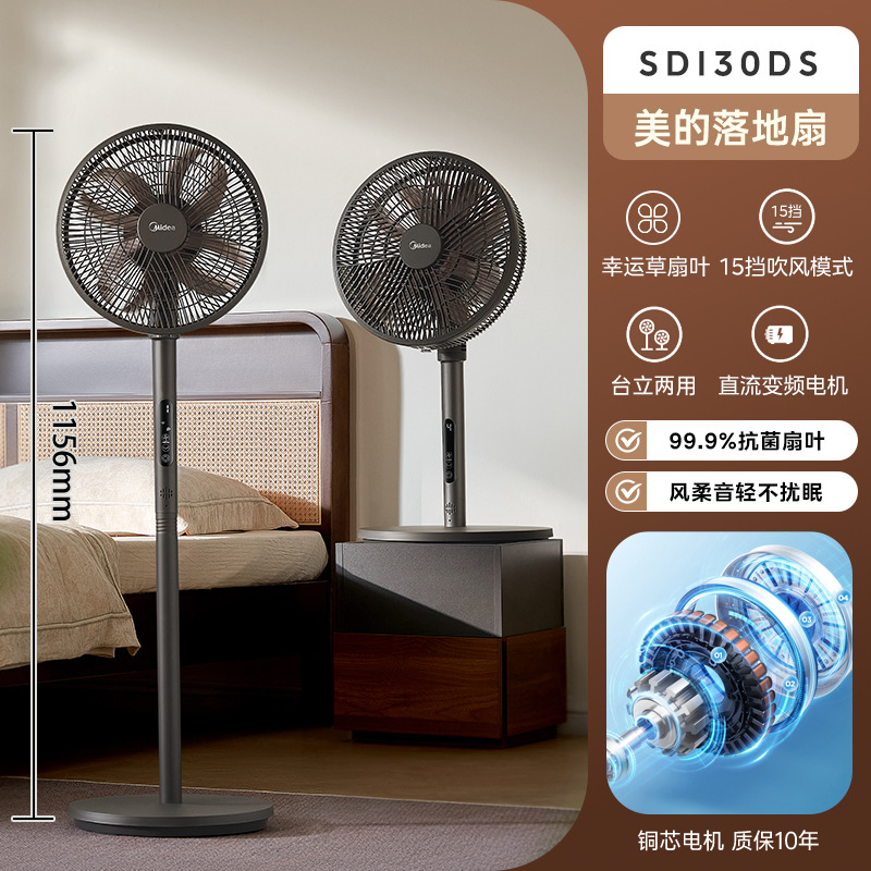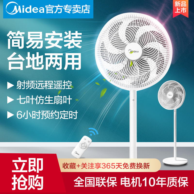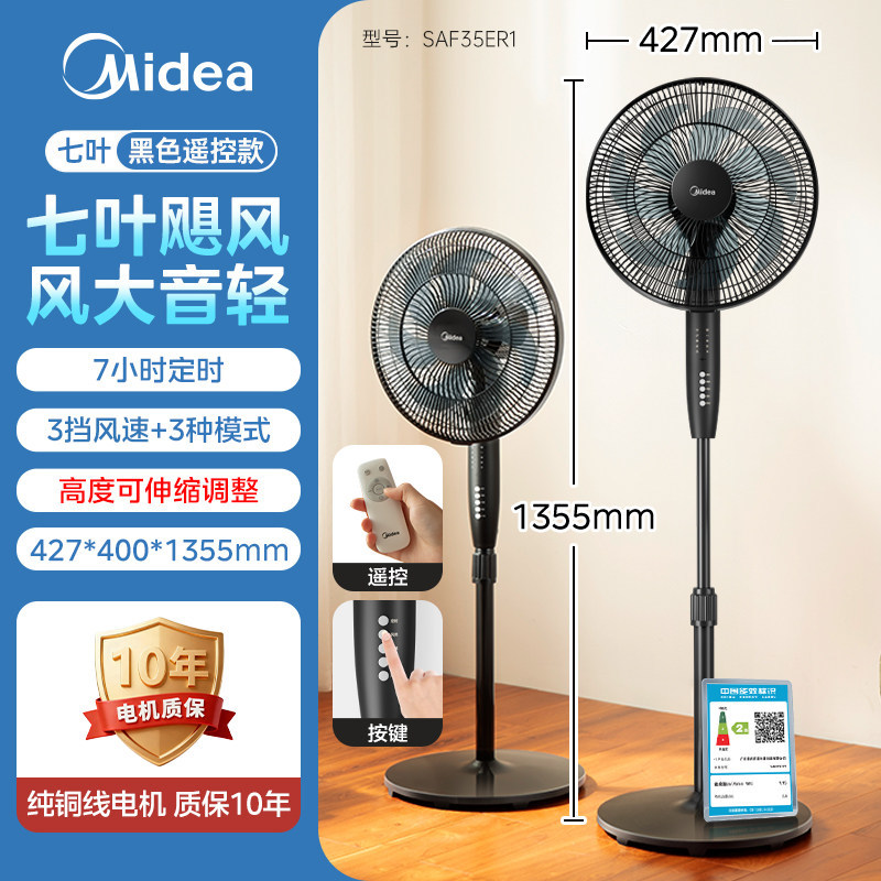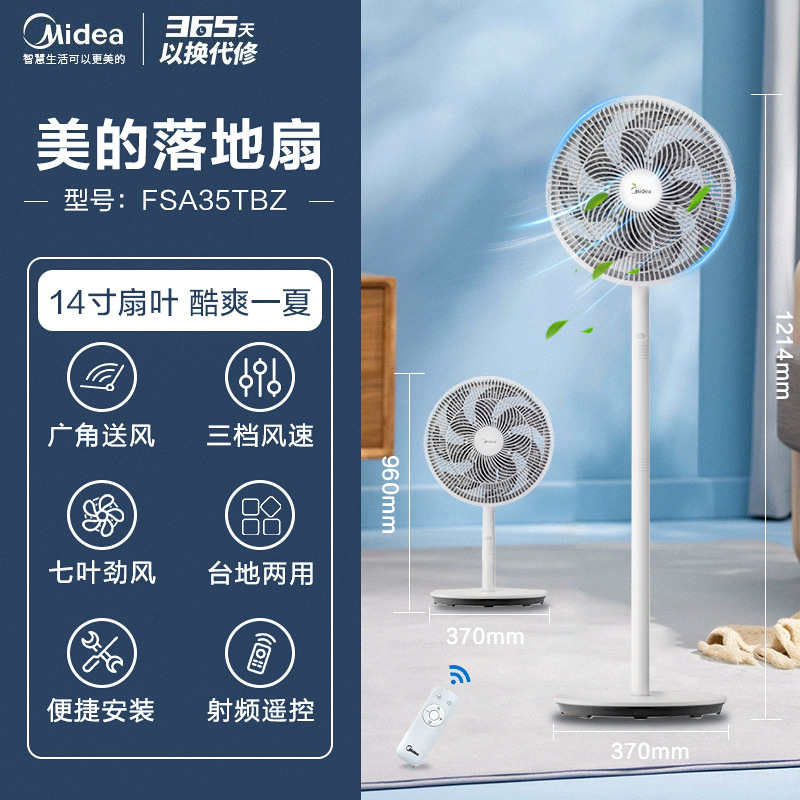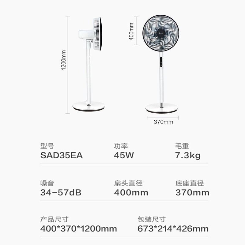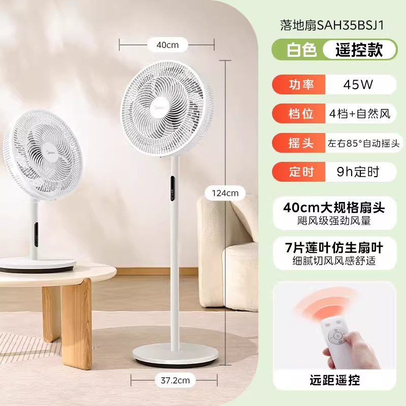 美的电风扇SAD35EZ家用落地扇 宿舍立式摇头扇台式轻音带遥控风扇