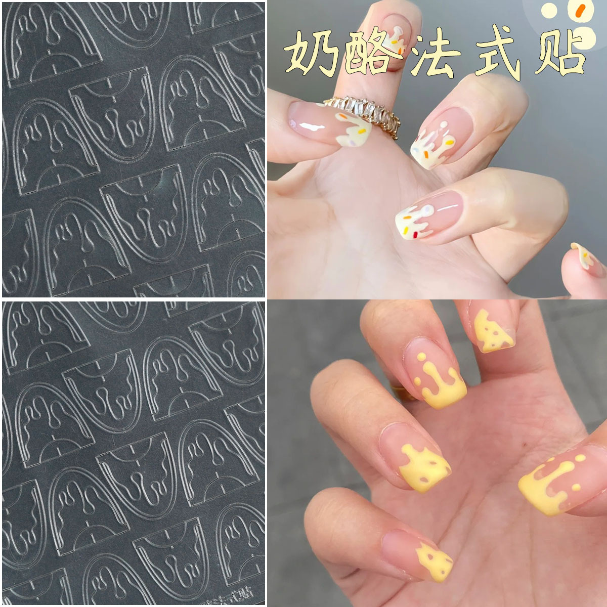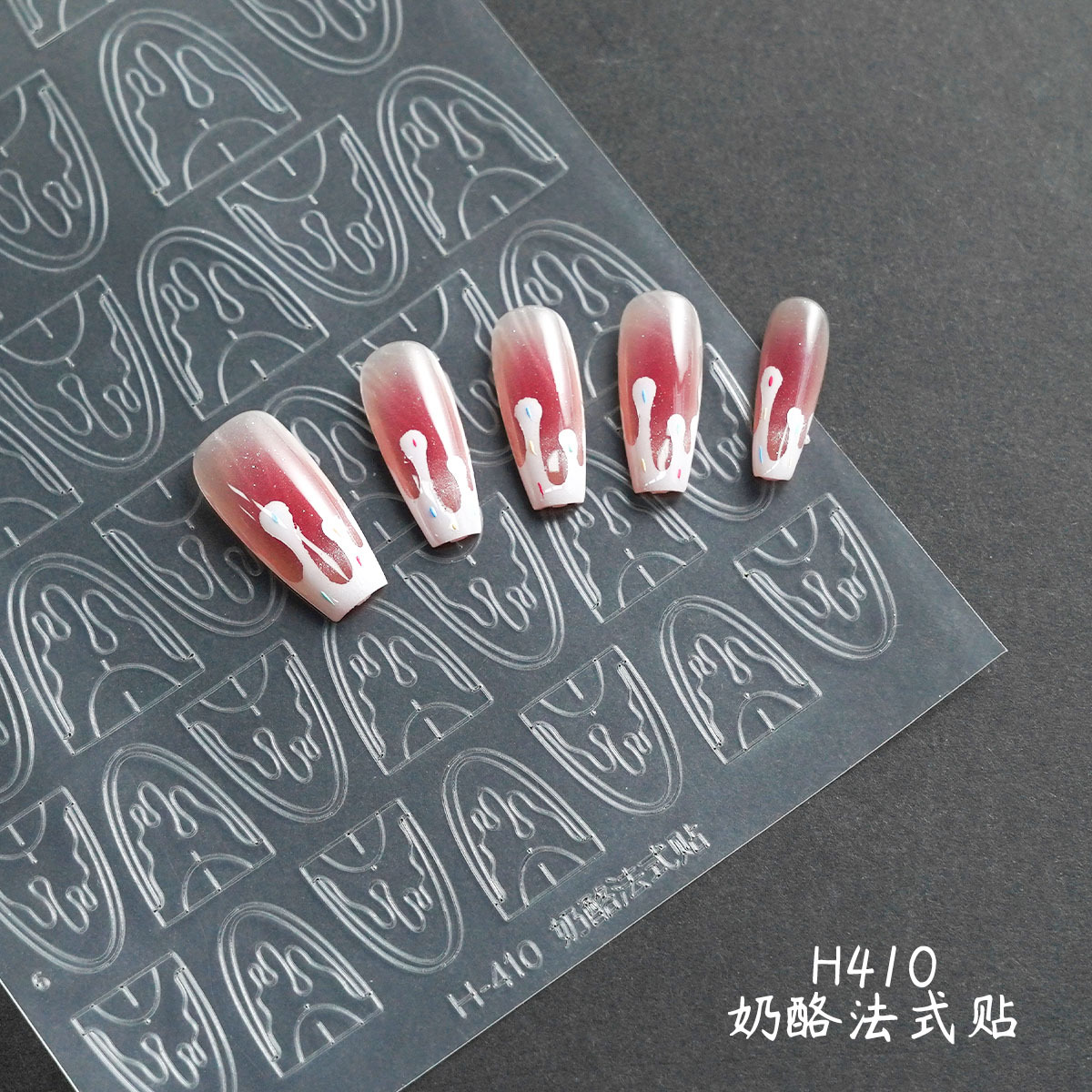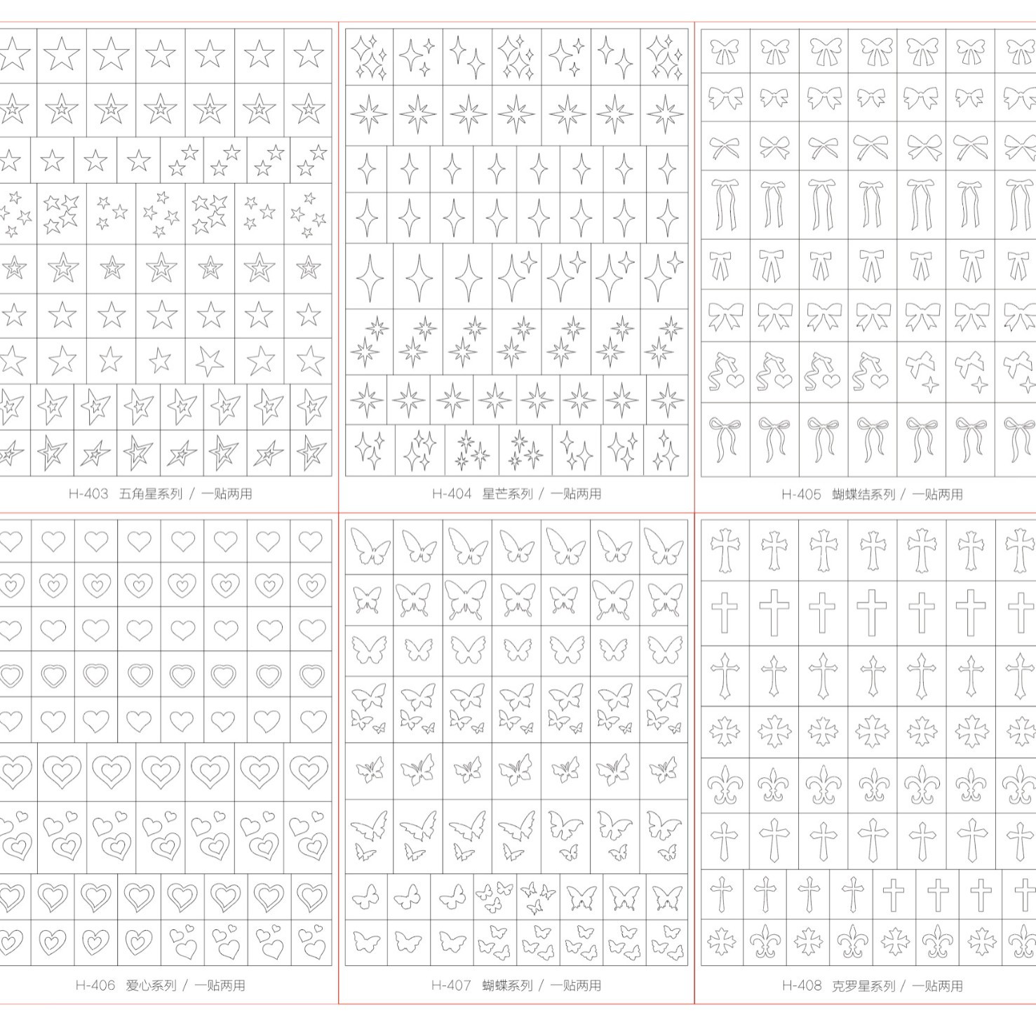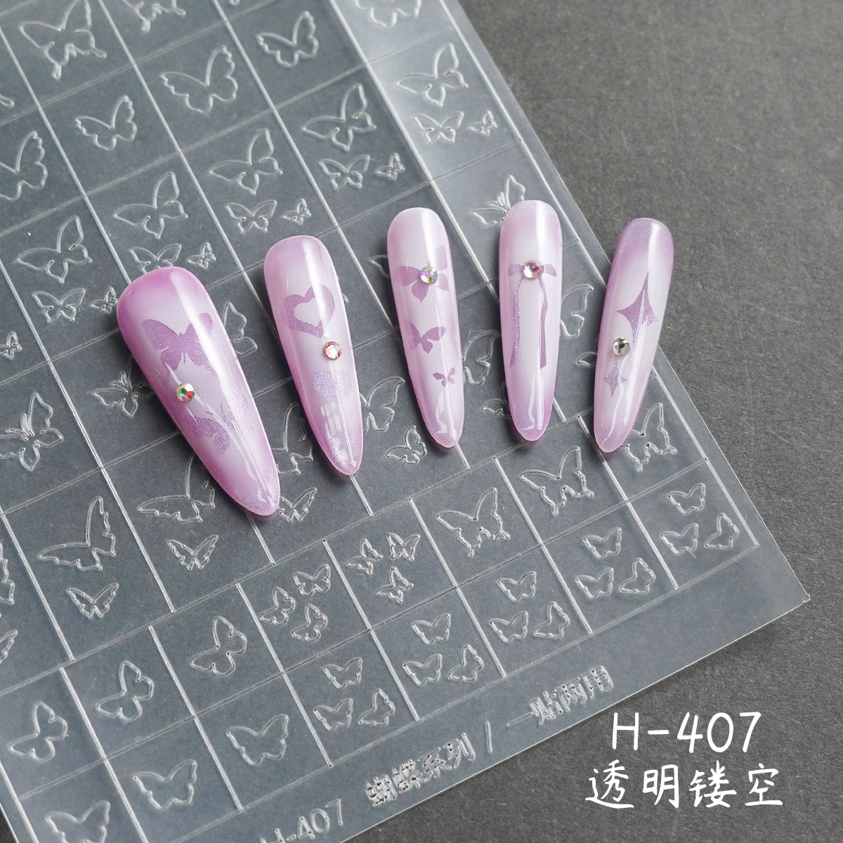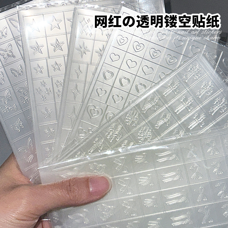 透明法式镂空美甲贴纸新款蝴蝶克罗心定位线喷绘模版拍拍胶辅助贴