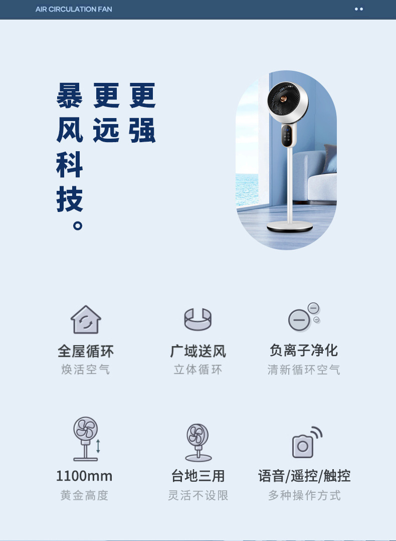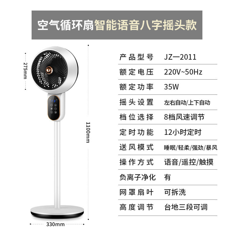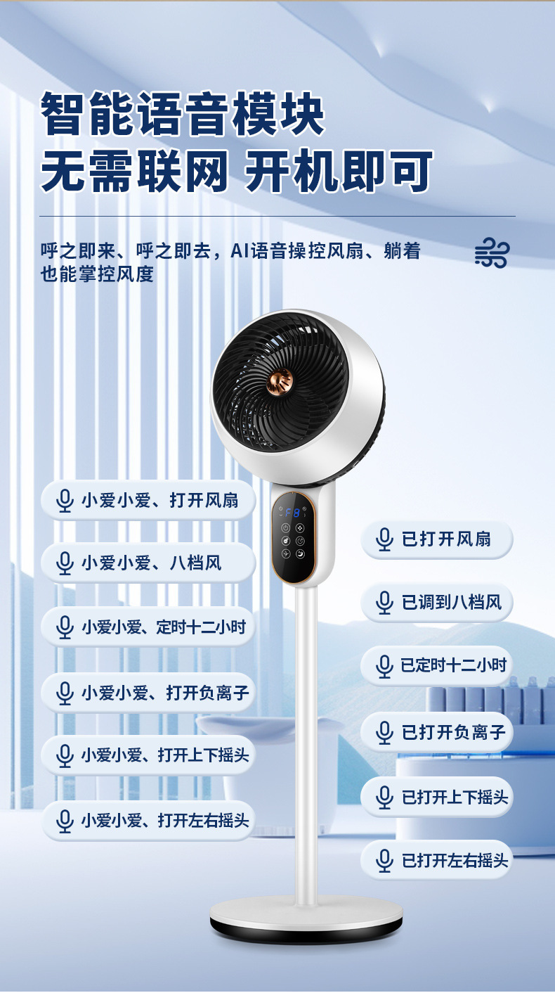 语音立式智能空气电风扇落地扇循环摇头家用循环扇大风力
