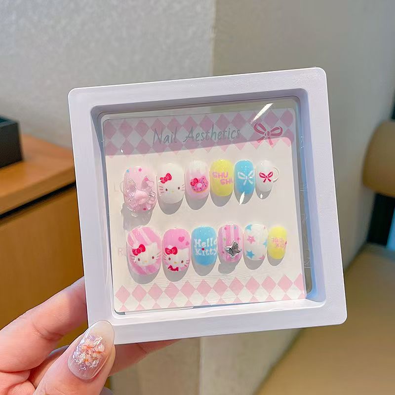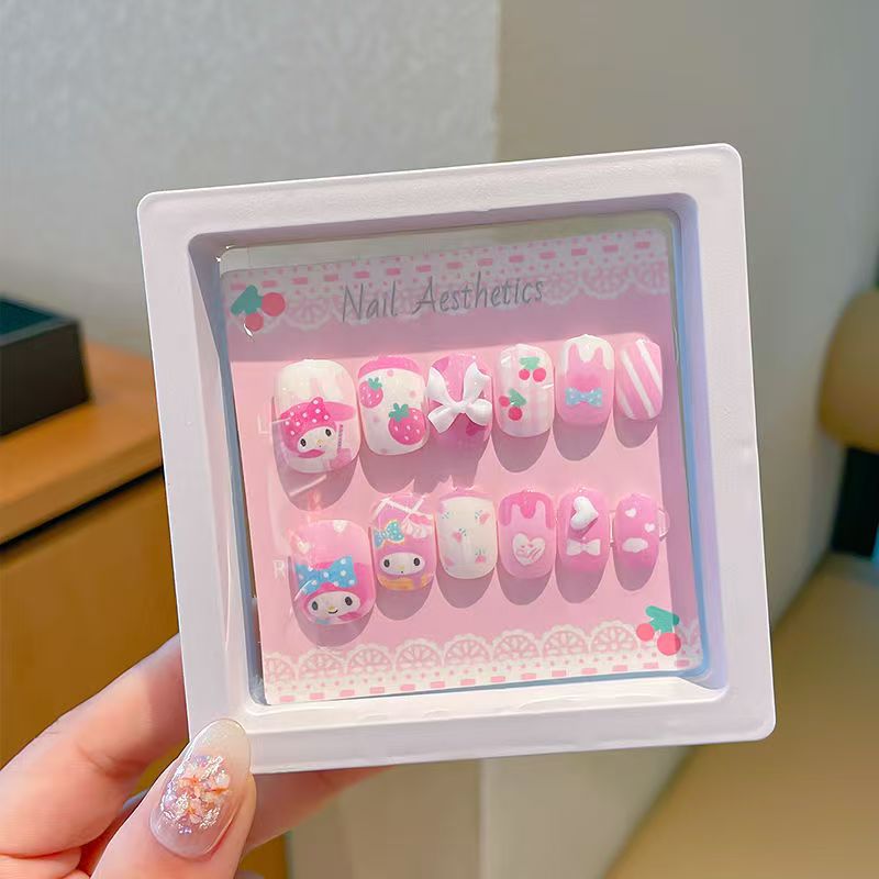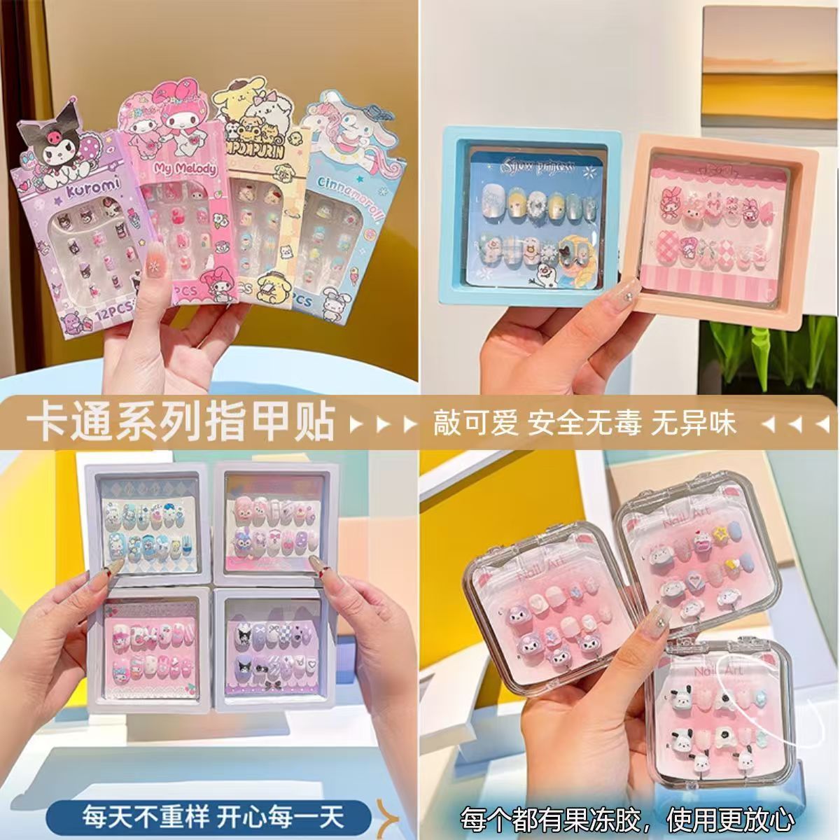 库洛米儿童指甲贴女孩萌趣美甲贴可拆卸女孩指甲片甜美可爱穿戴甲