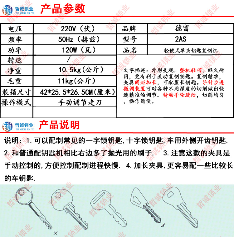 [DF2AS]德富厂家直销 卧式配钥匙机 手动走刀 钥匙复制机器