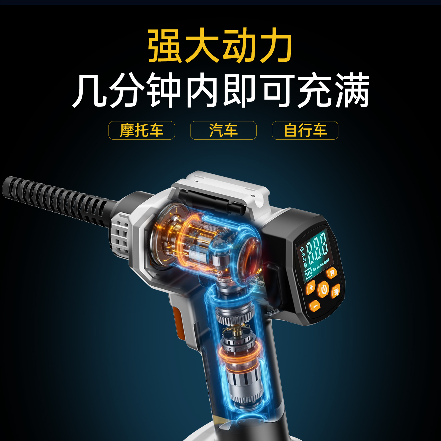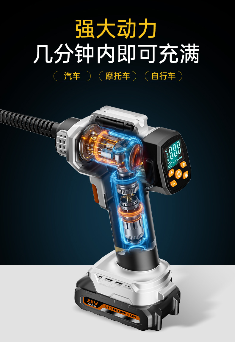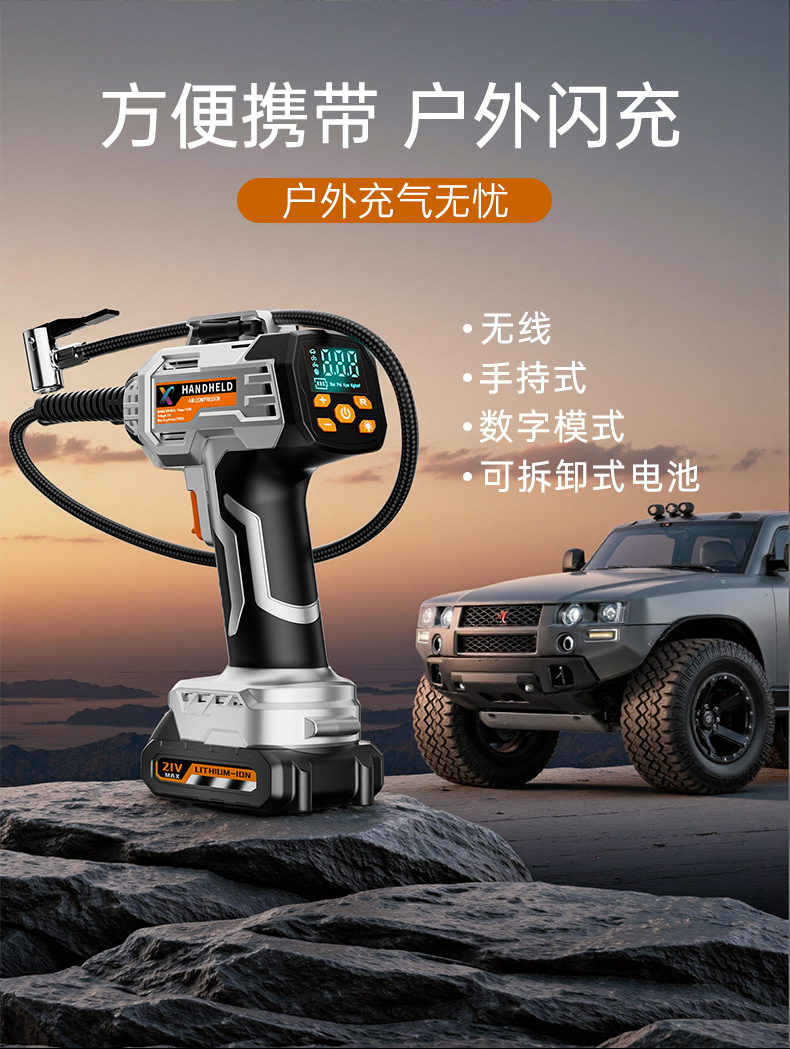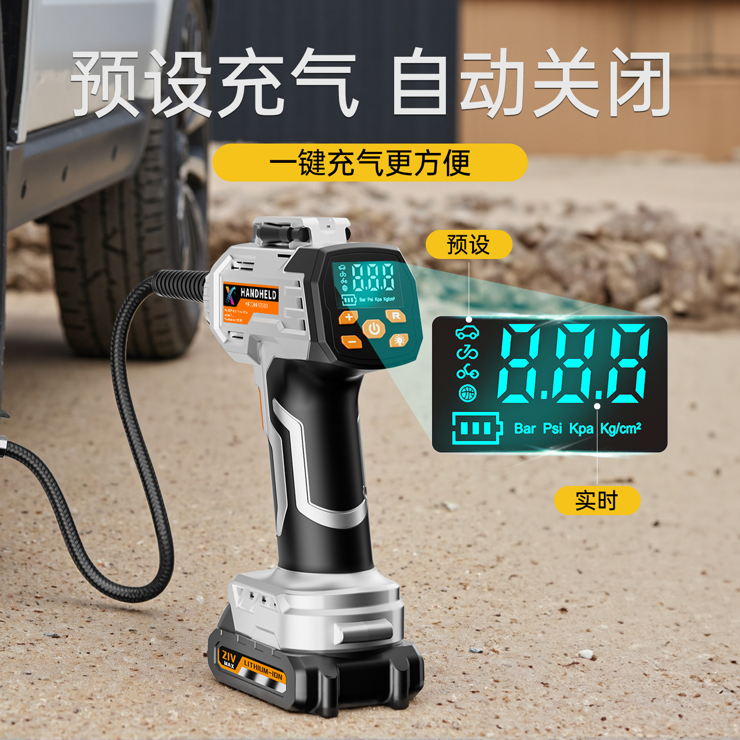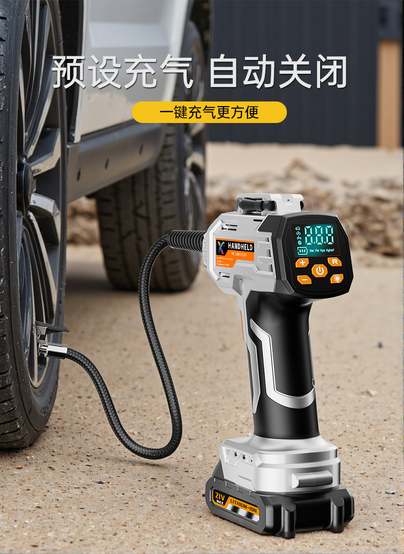 手持式 电池可拆卸 高压充气泵 大功率 预设胎压 无线打气泵