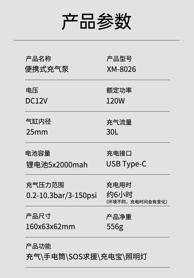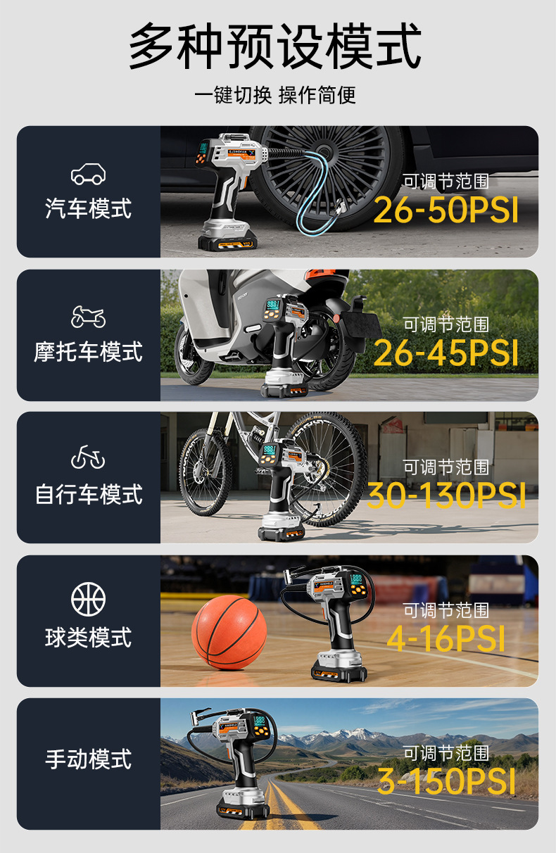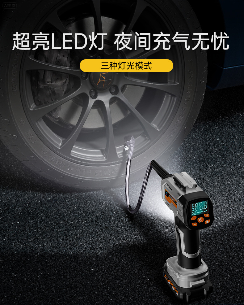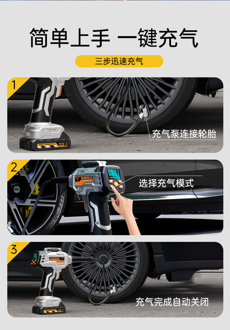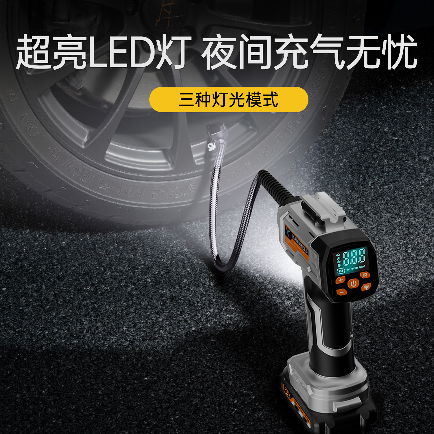 手持式 电池可拆卸 高压充气泵 大功率 预设胎压 无线打气泵