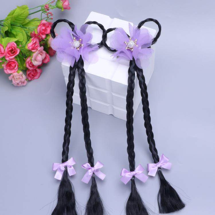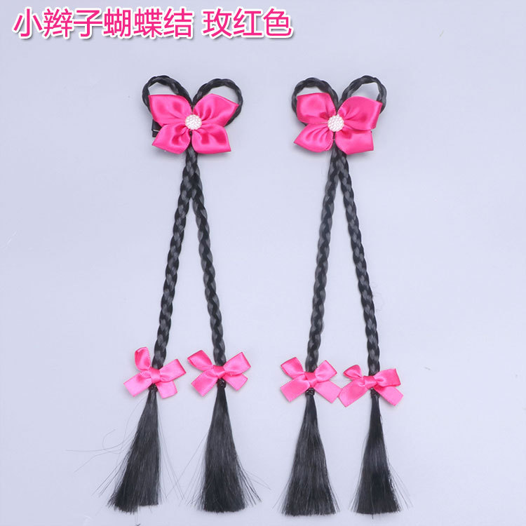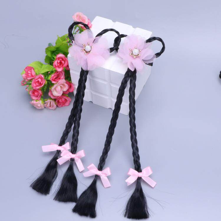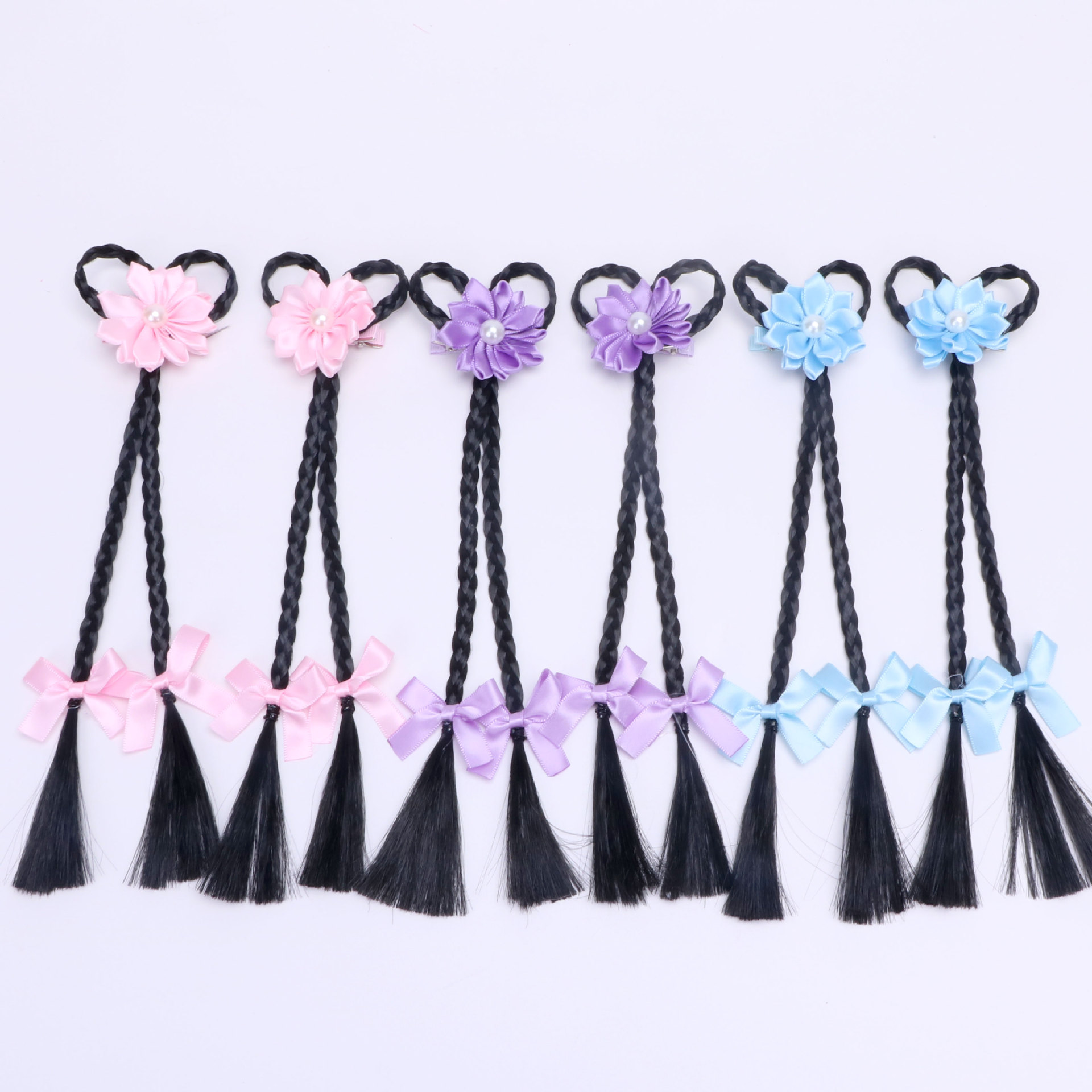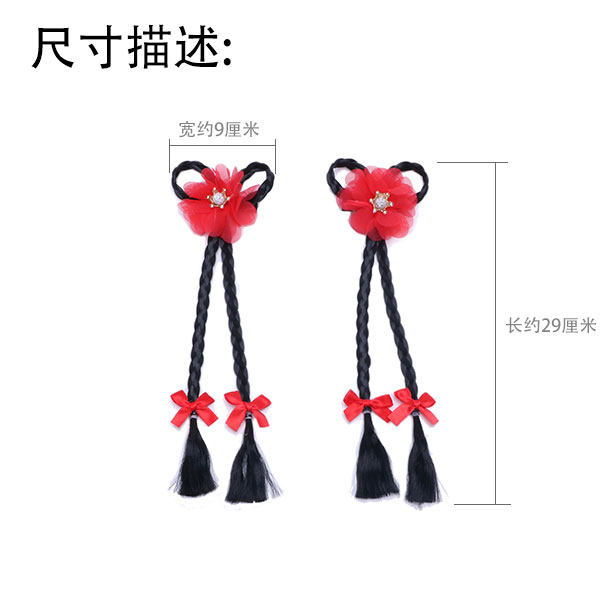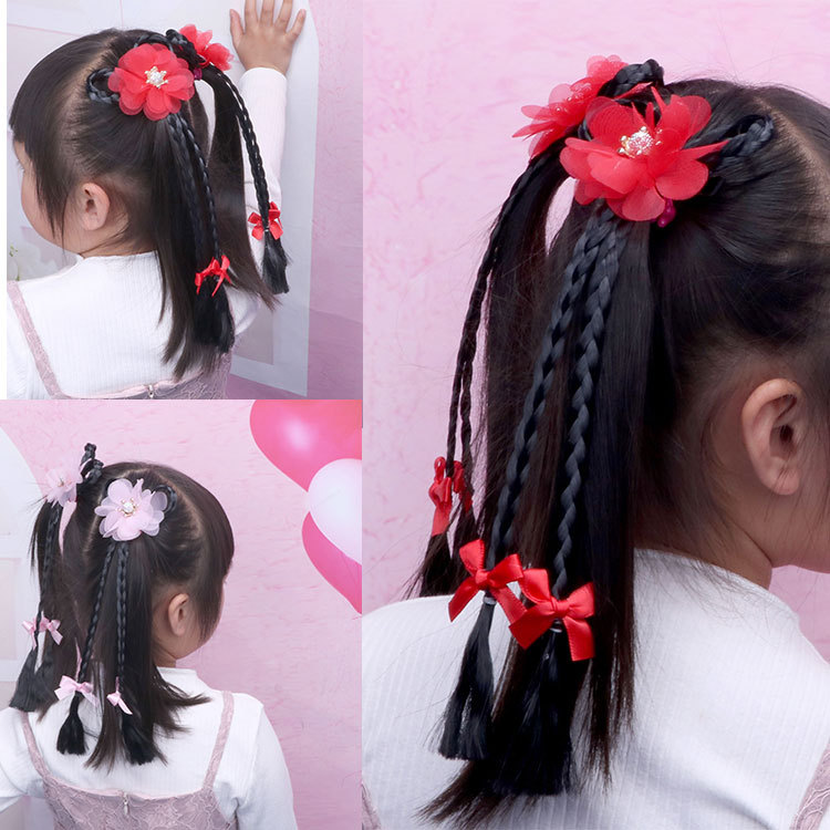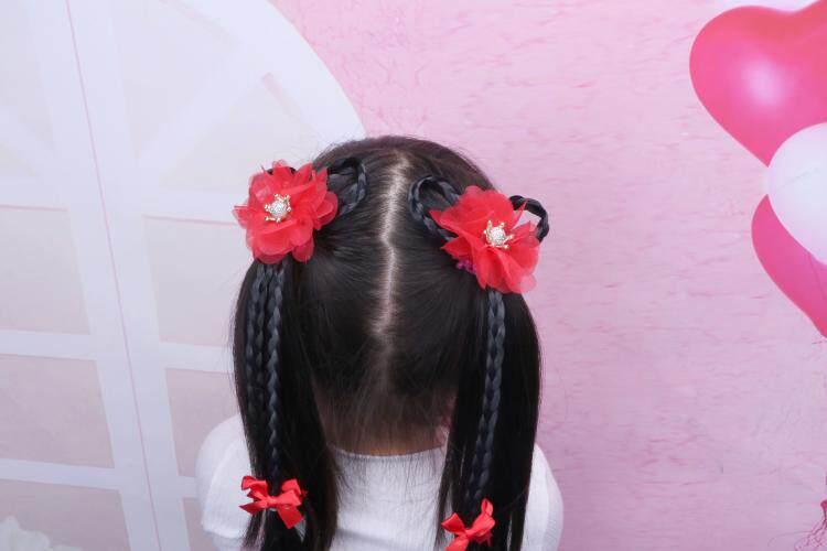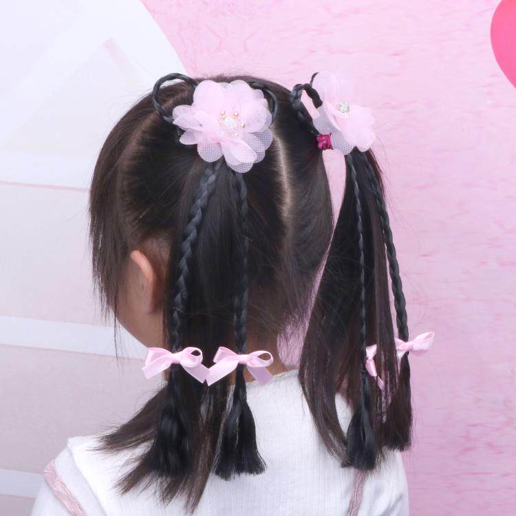 儿童麻花辫子假发宝宝公主马尾夹头饰发夹古典花朵蝴蝶结边夹对装