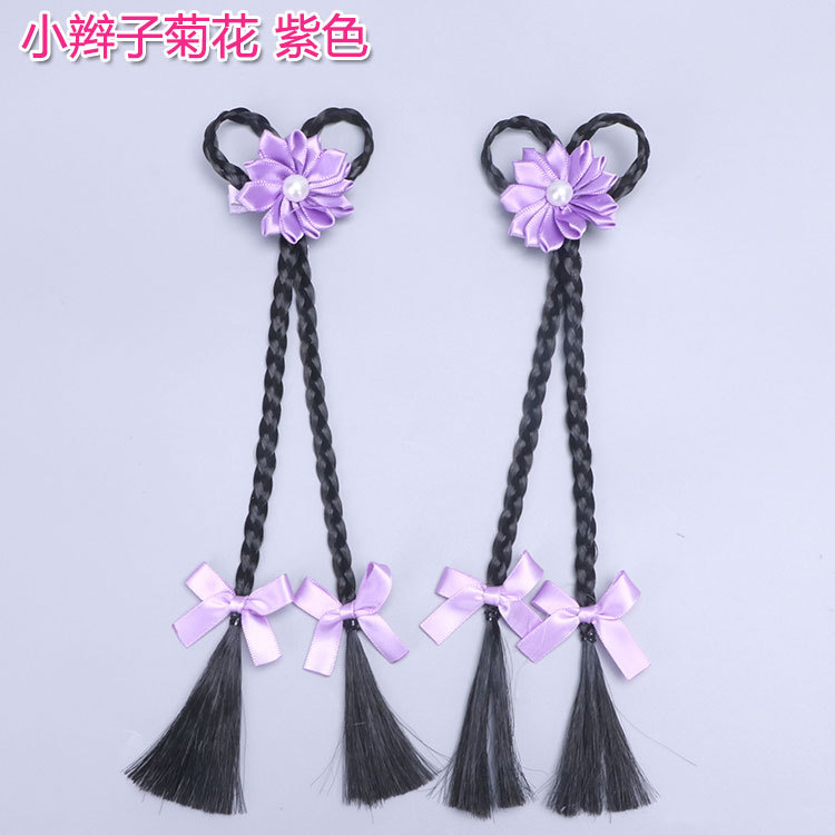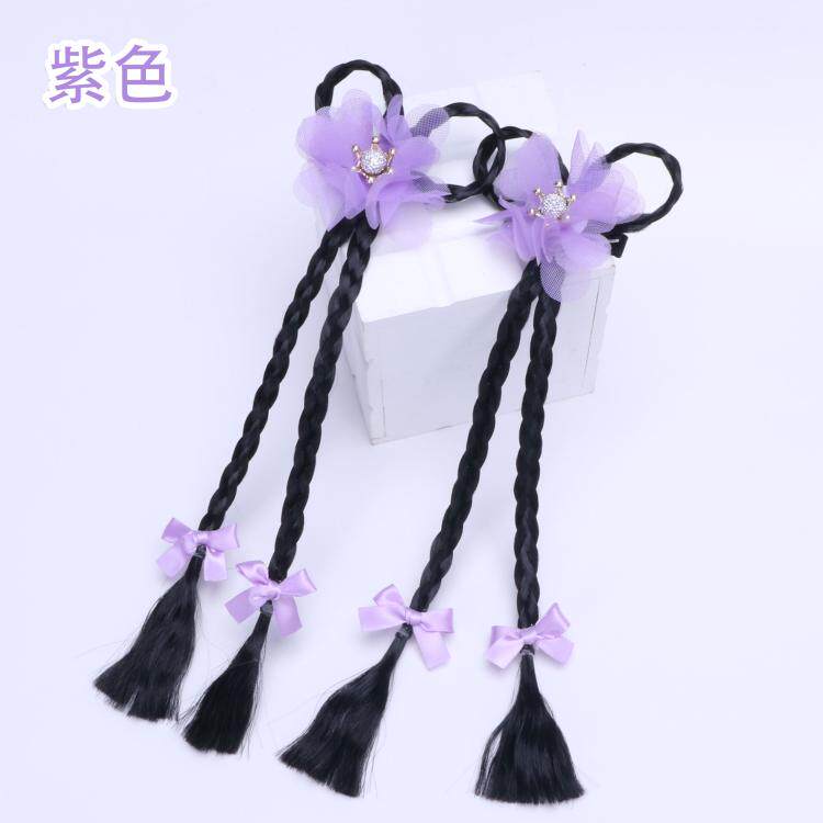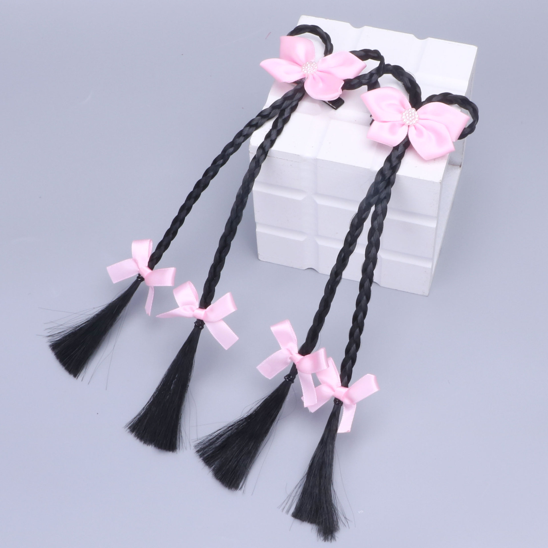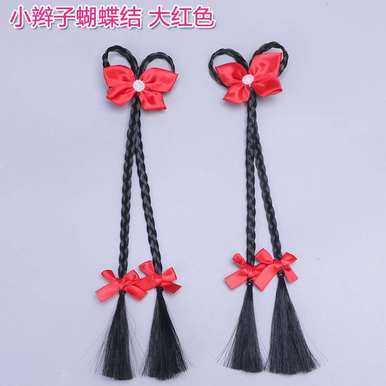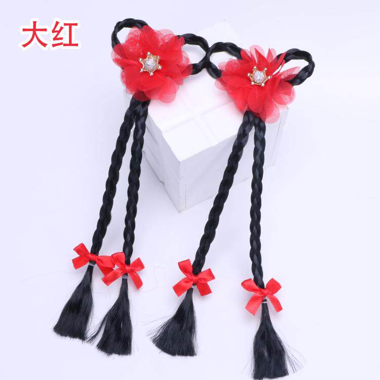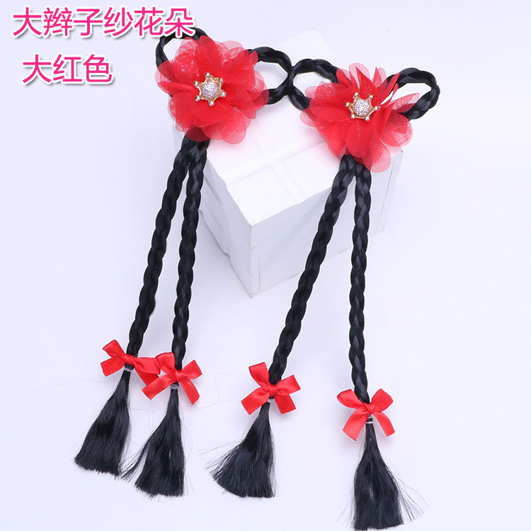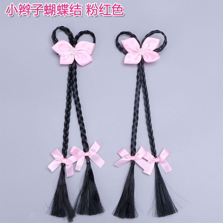 儿童麻花辫子假发宝宝公主马尾夹头饰发夹古典花朵蝴蝶结边夹对装