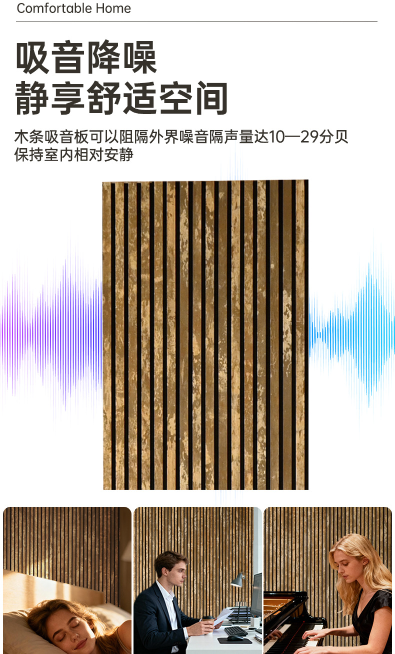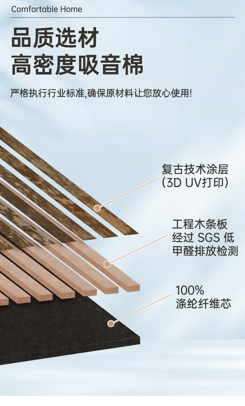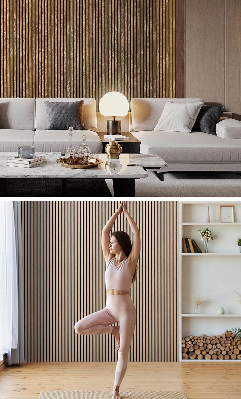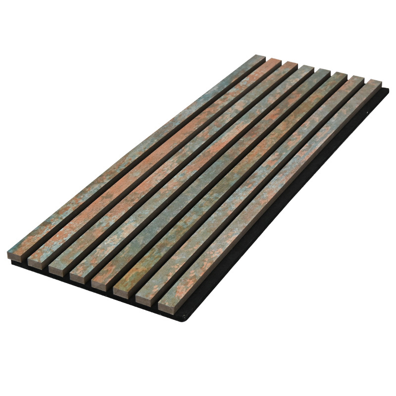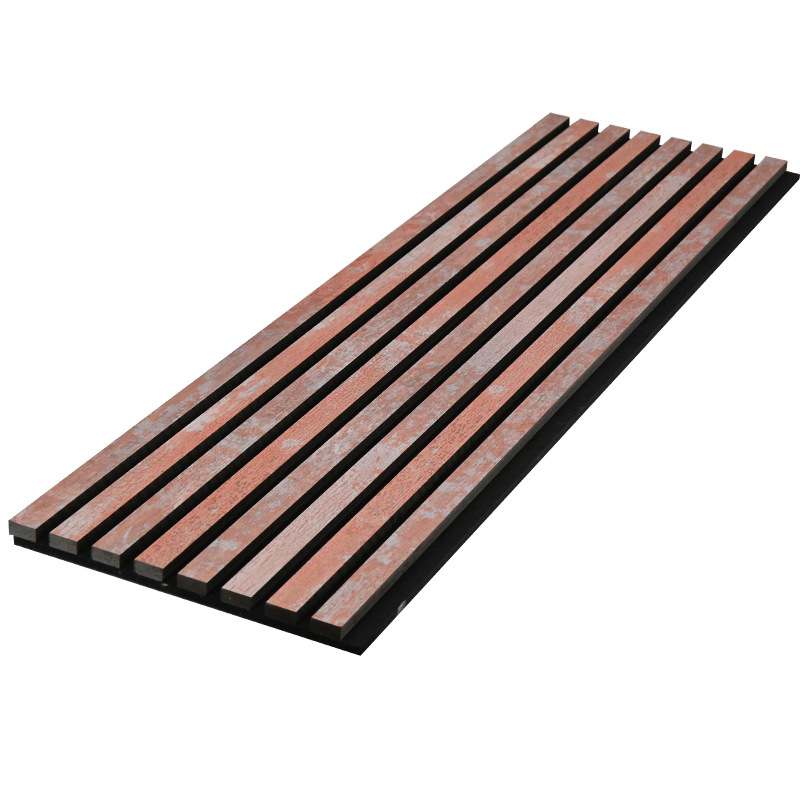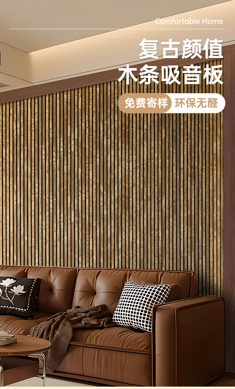 跨境聚酯纤维木条吸音板科技木皮MDF墙面装饰格栅环保木制吸音板