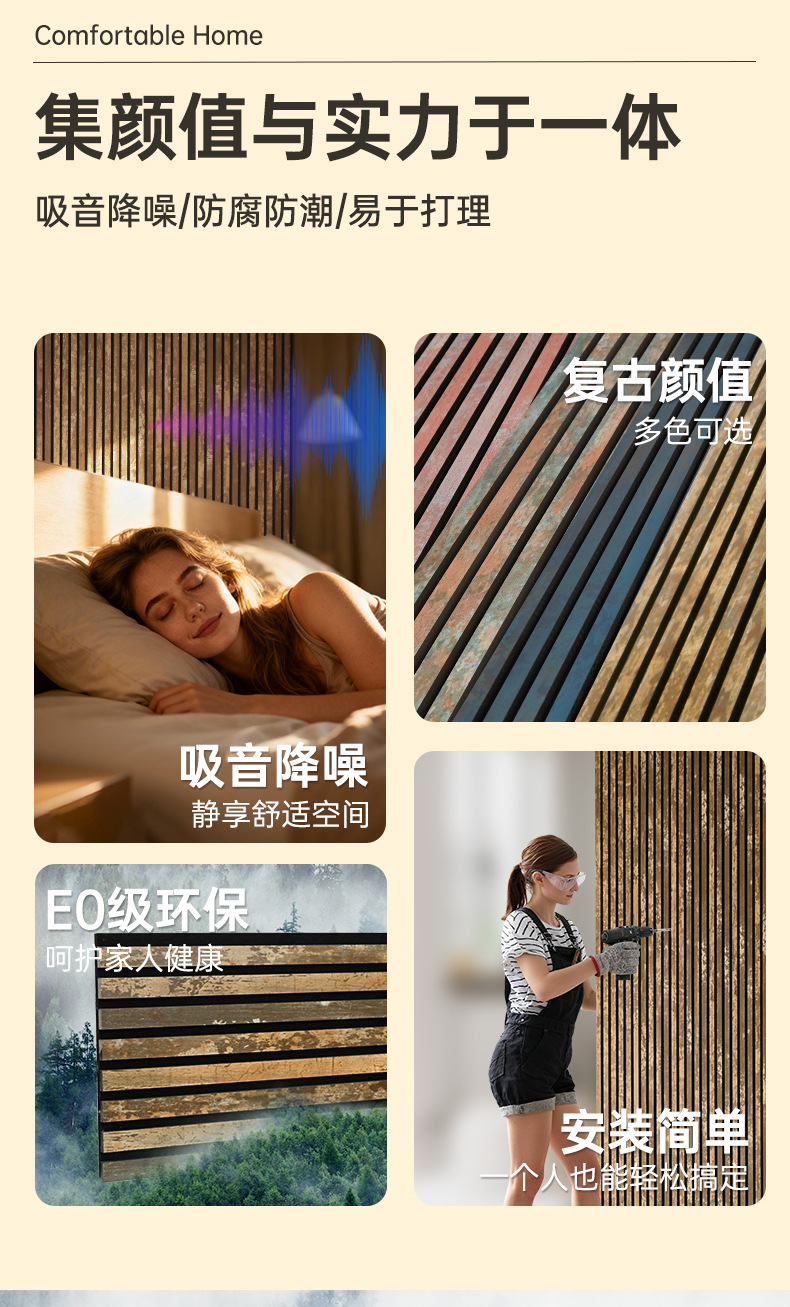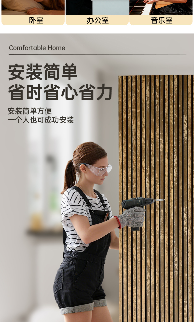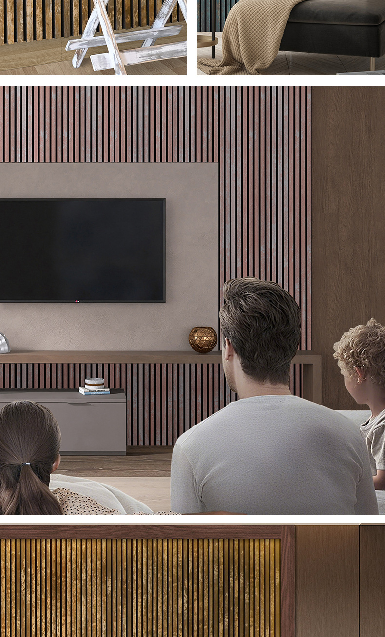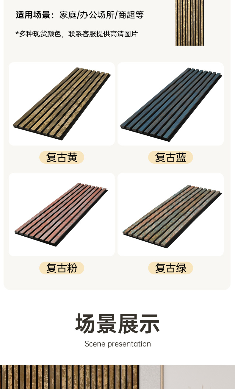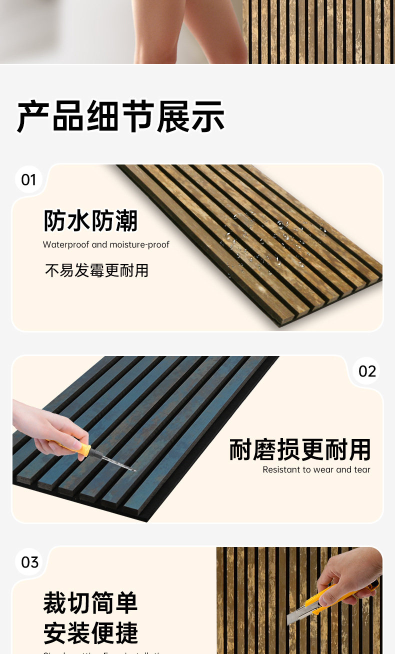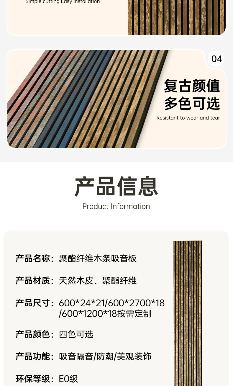 跨境聚酯纤维木条吸音板科技木皮MDF墙面装饰格栅环保木制吸音板