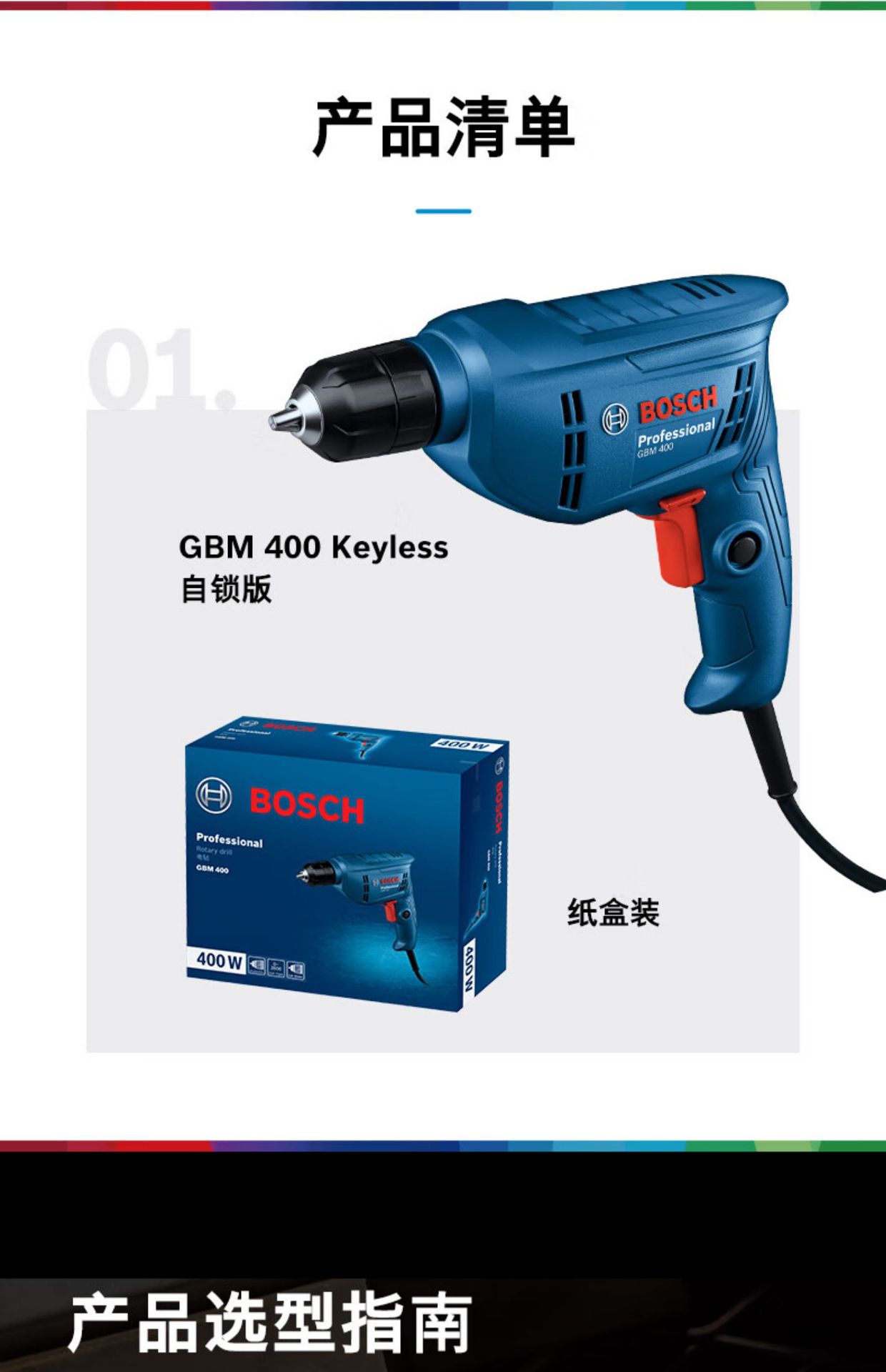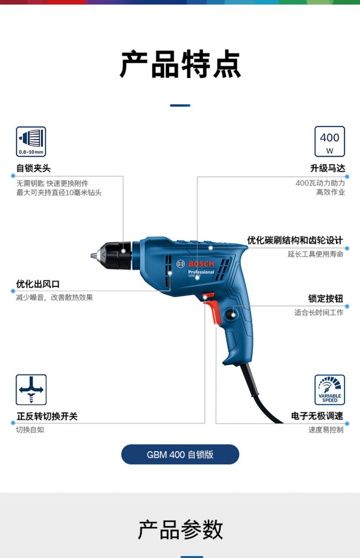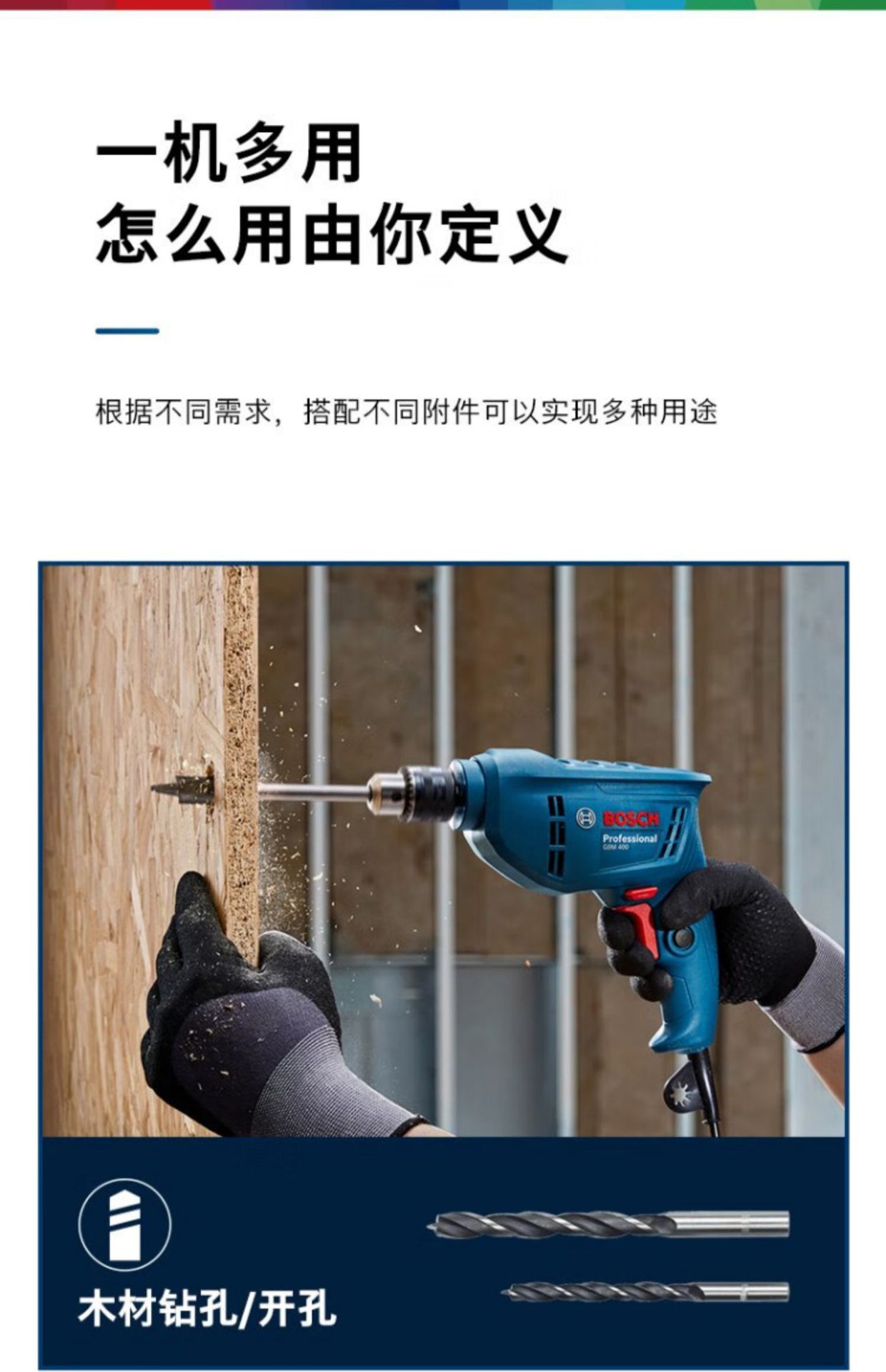 博世GBM400手电钻转钻电动螺丝刀多功能电钻打孔手枪钻工具自锁版