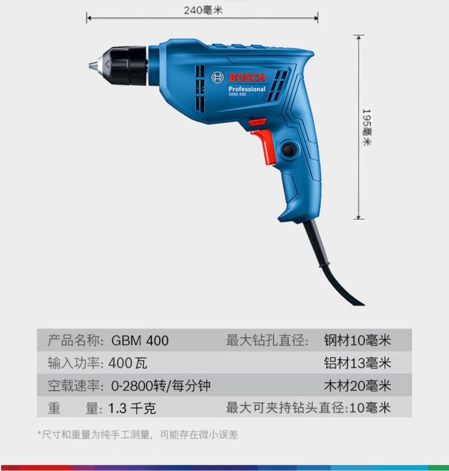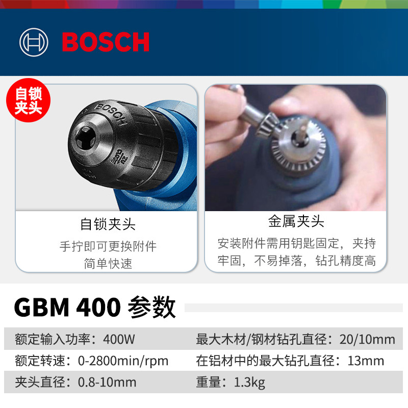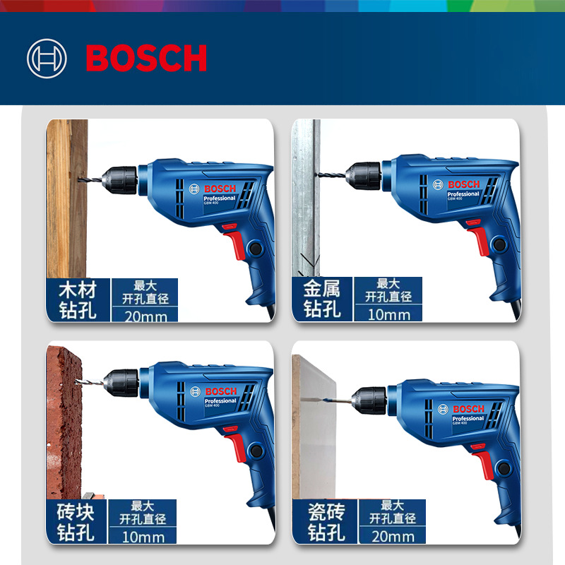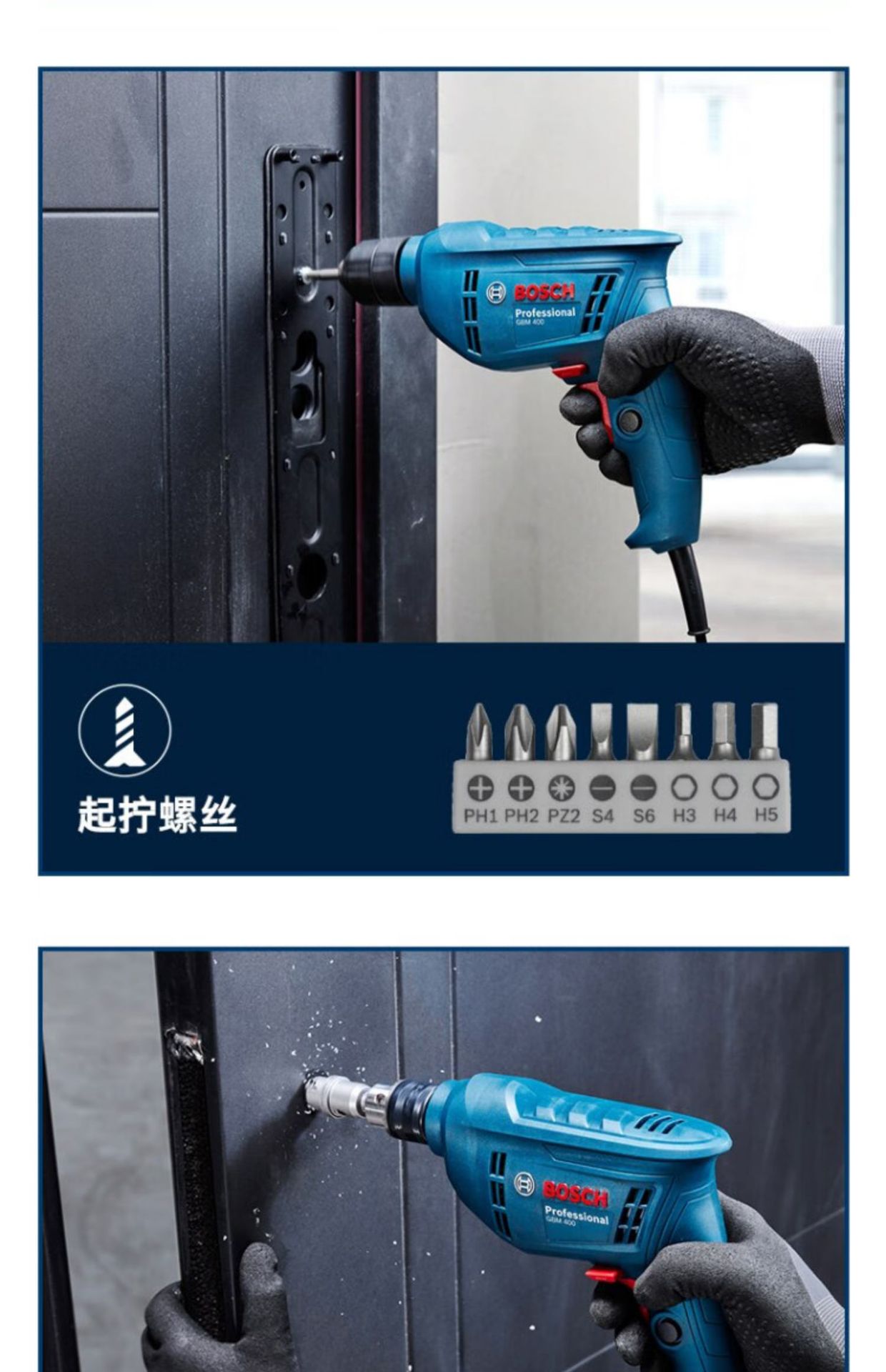 博世GBM400手电钻转钻电动螺丝刀多功能电钻打孔手枪钻工具自锁版