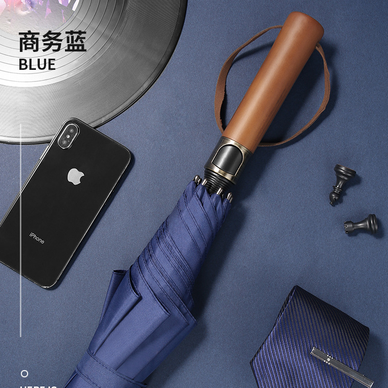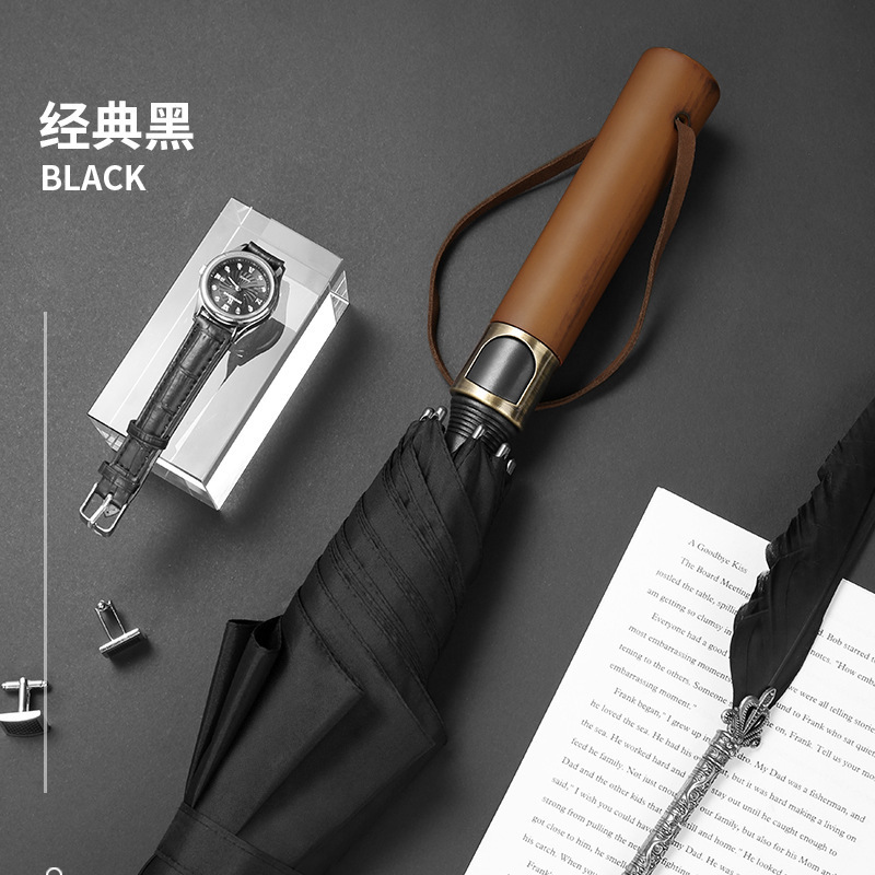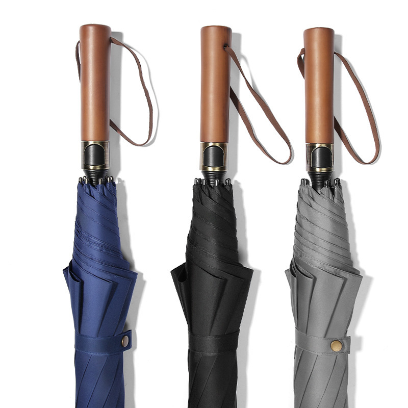 厂家直供自动长柄伞实木柄双人防风纤维雨伞直杆伞可印字防紫外线