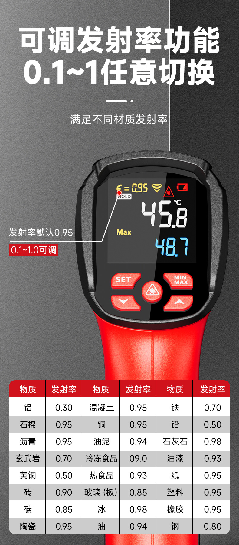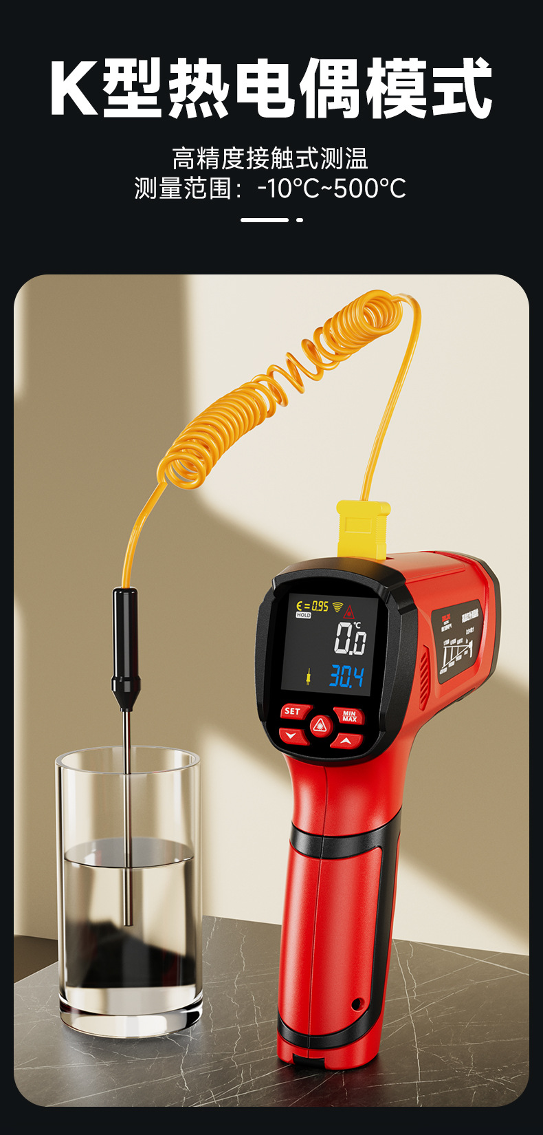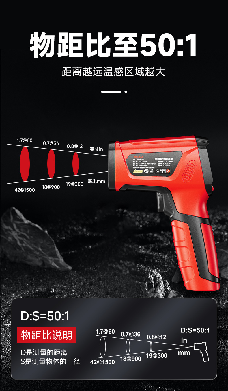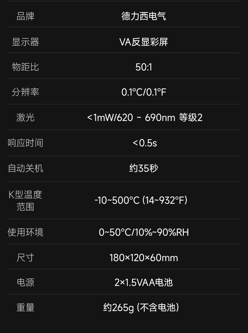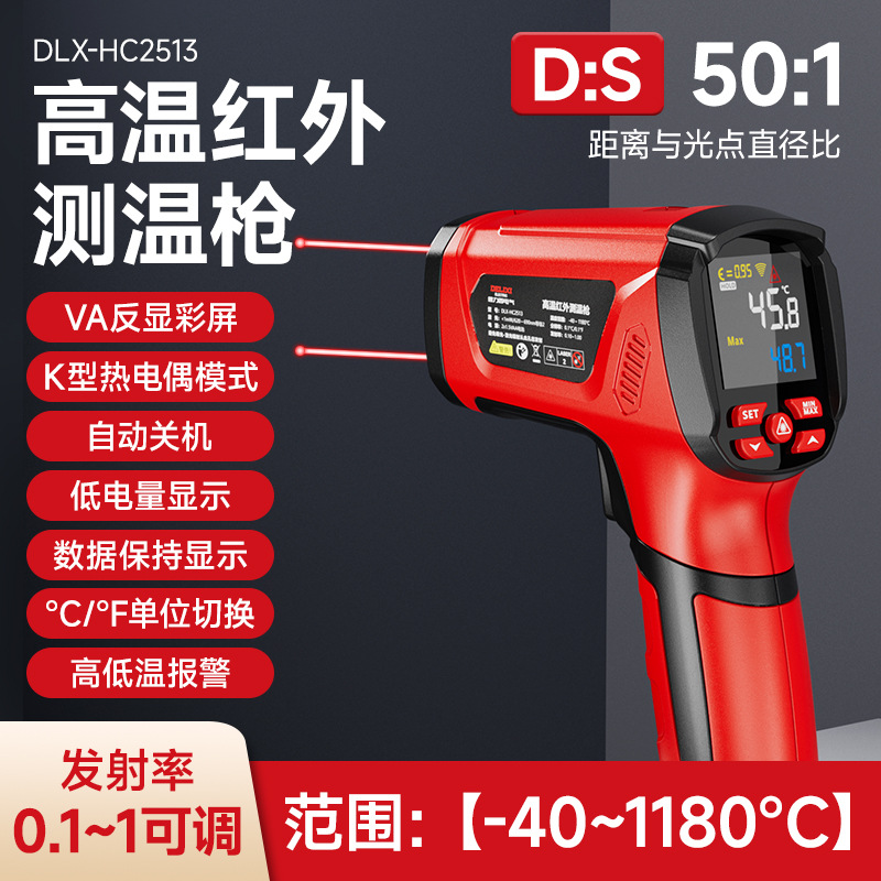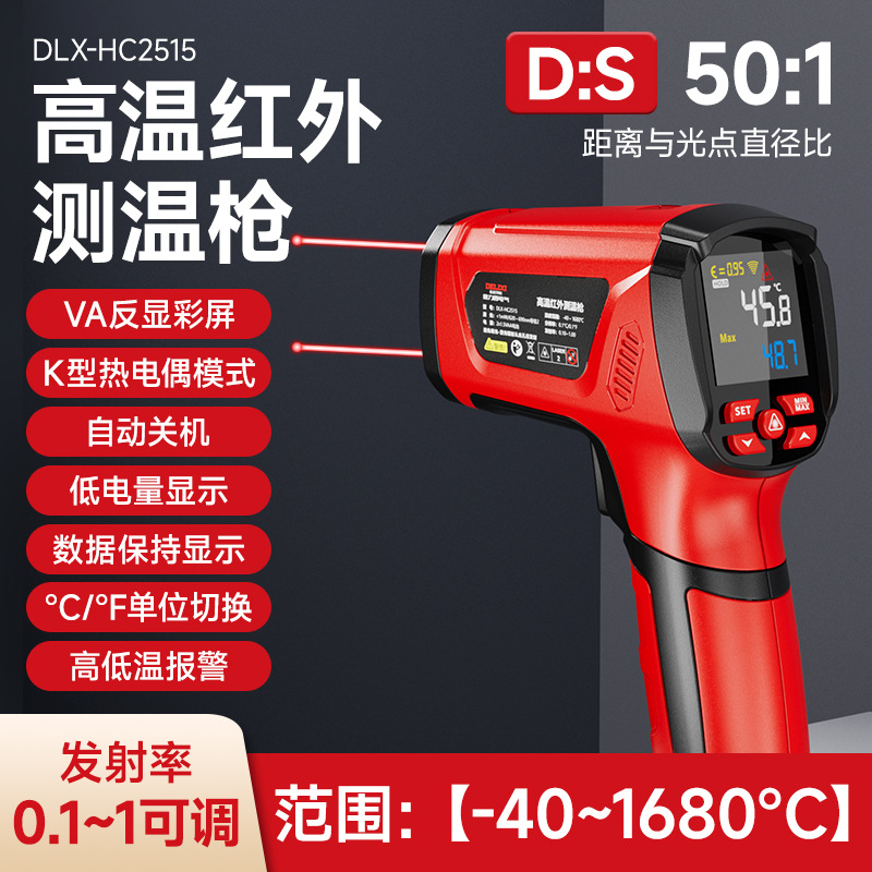 德力西电气红外测温仪工业激光高温计非接触温度测量仪精准测温枪