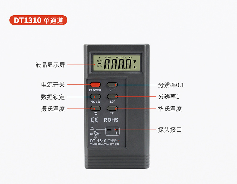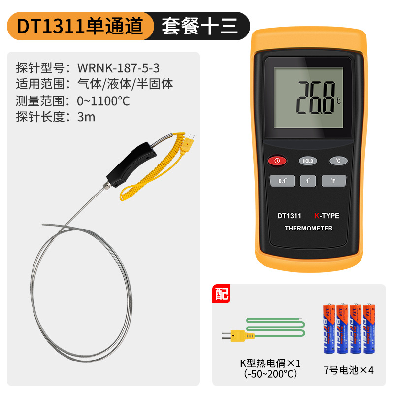 dt1310 single-channel standard configuration (includes thermocouple + battery)(DT1310单通道标配(含热电偶+电池)) USD $8.85 96 set available