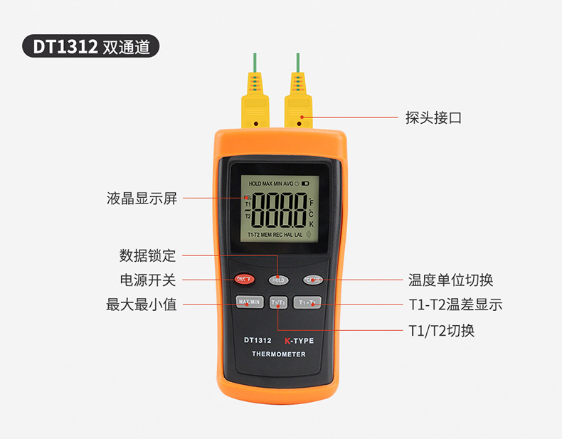DT1312双通道标配(含热电偶+电池) USD $20.18 161 set available