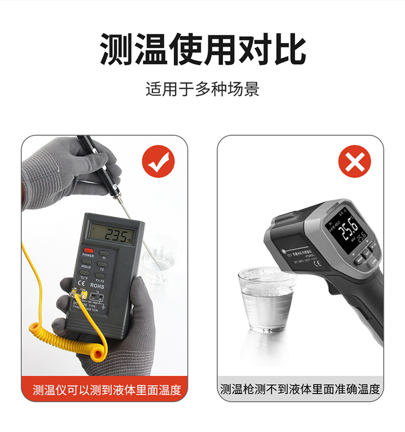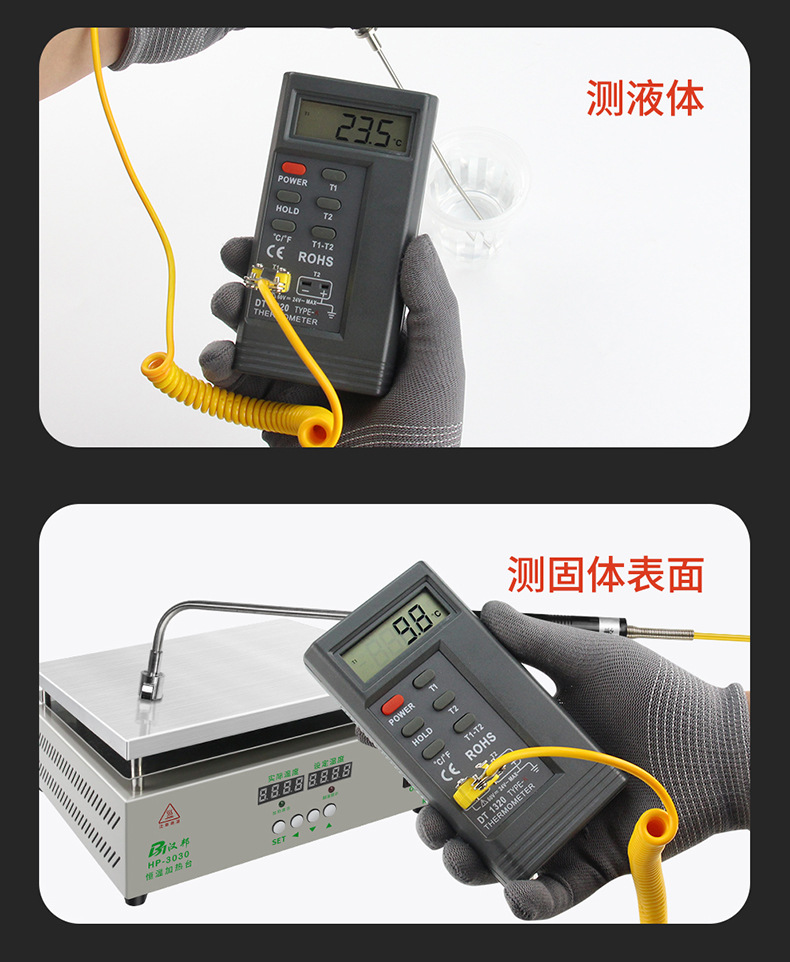 接触式测温仪高精度模具温度计K型热电偶液体表面探头工业检测仪