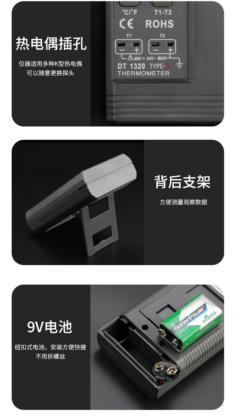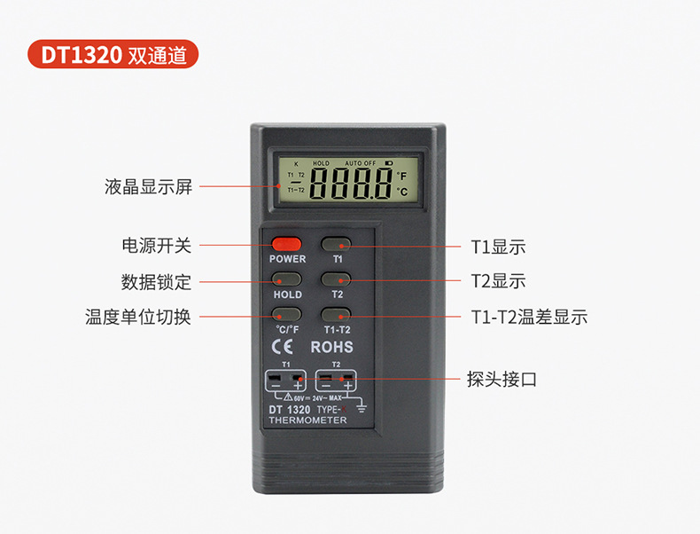 DT1320双通道标配(含热电偶+电池) USD $13.38 191 set available