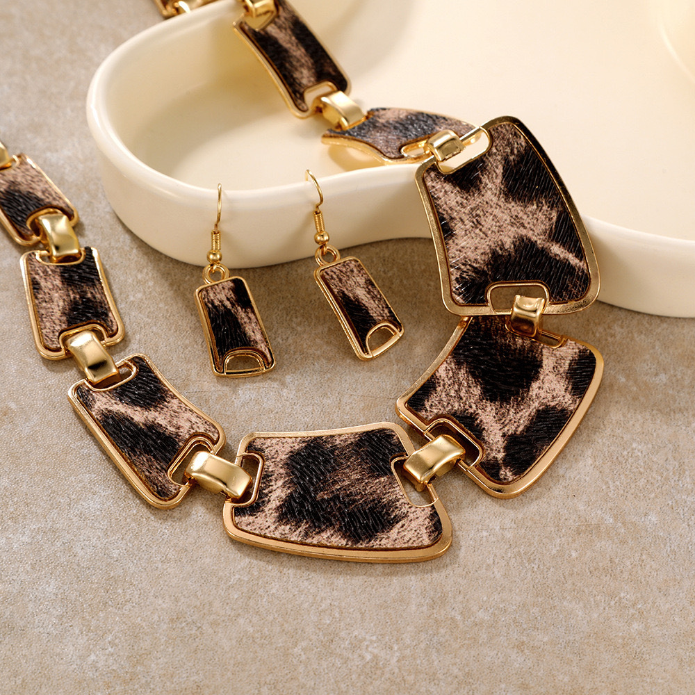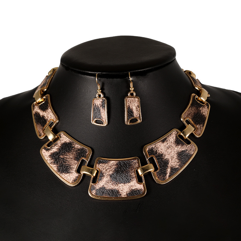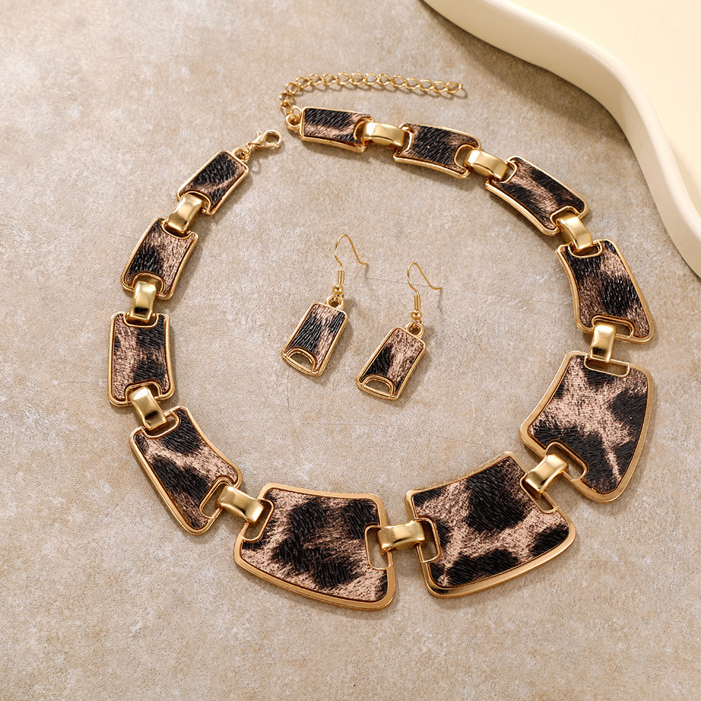 欧美跨境夸张复古豹纹项链加耳环韩版毛衣链颈链合金耳环项链套装
