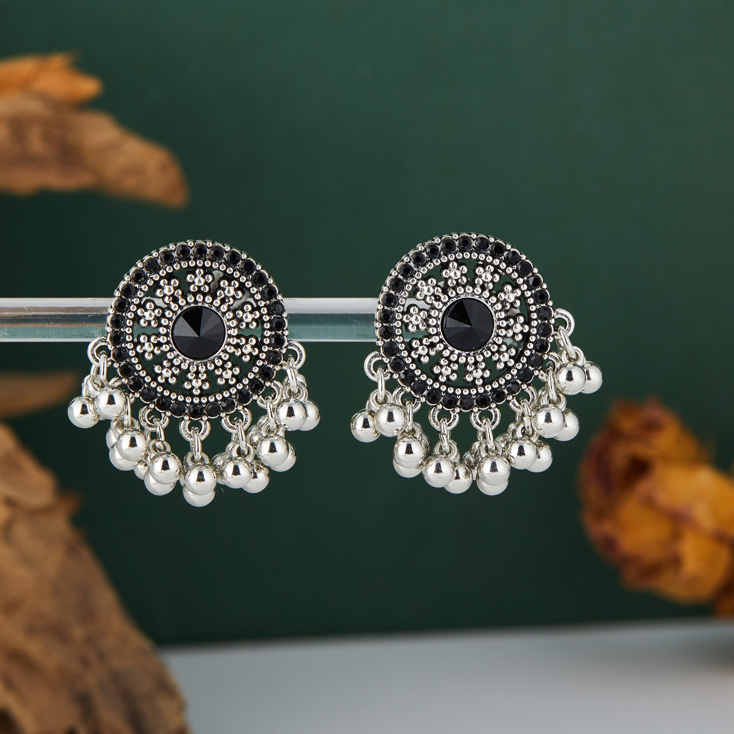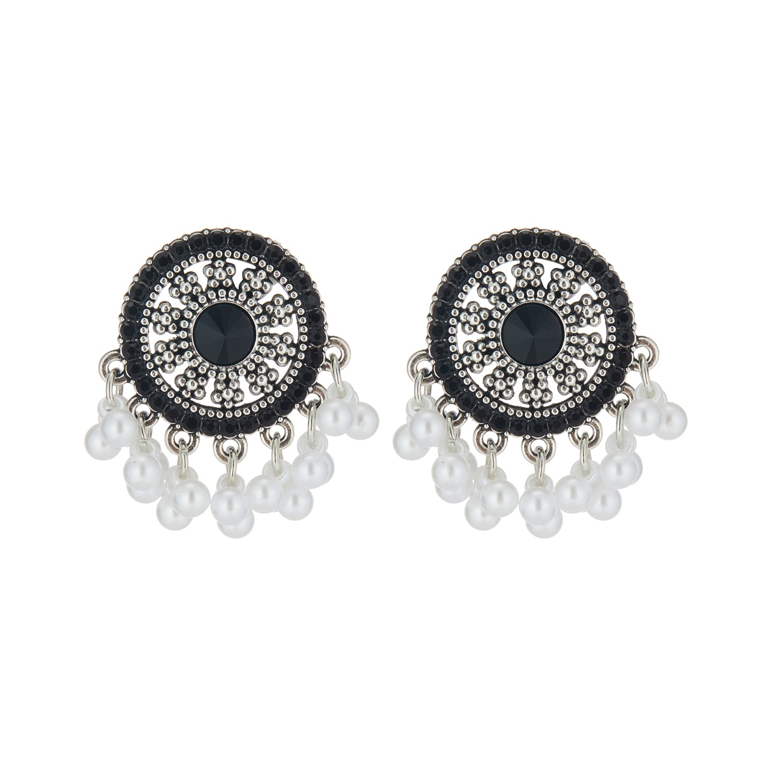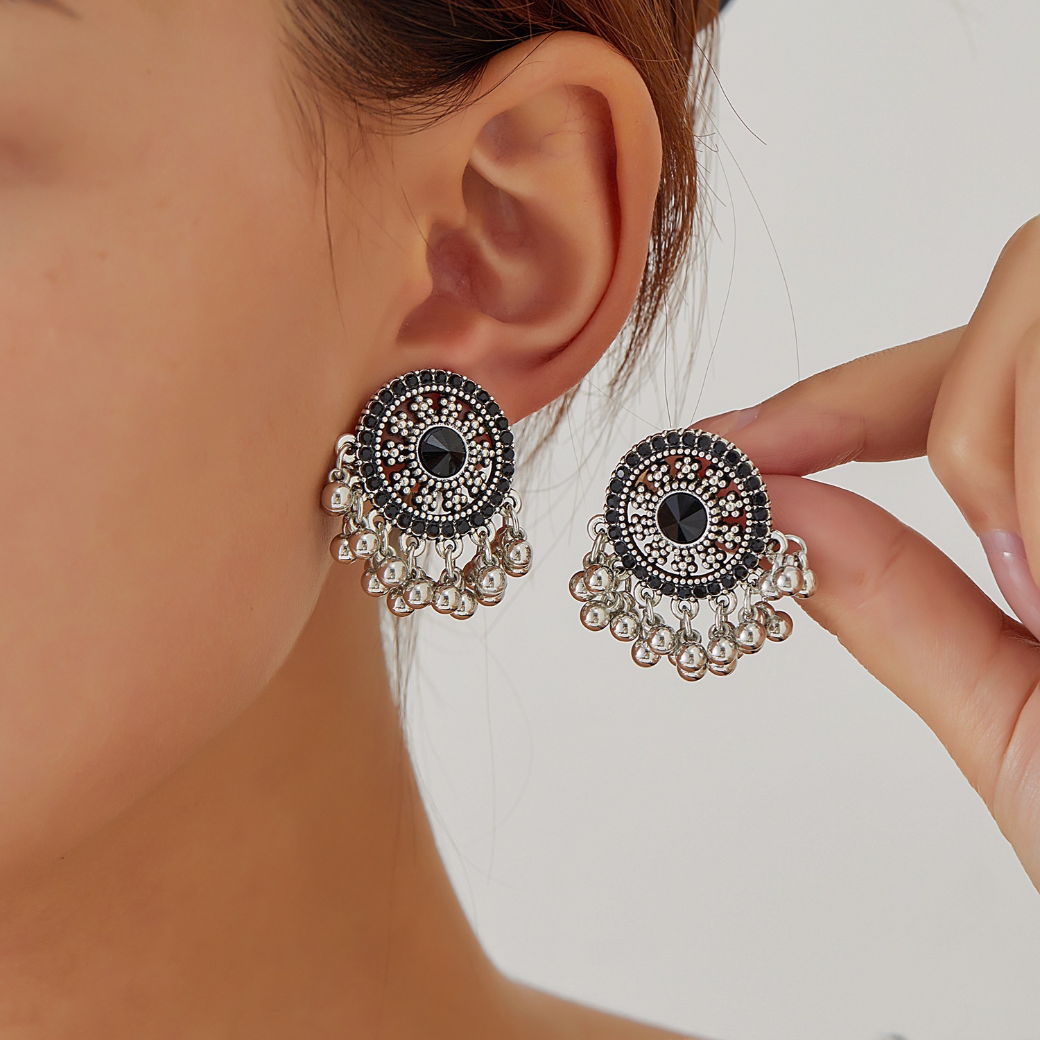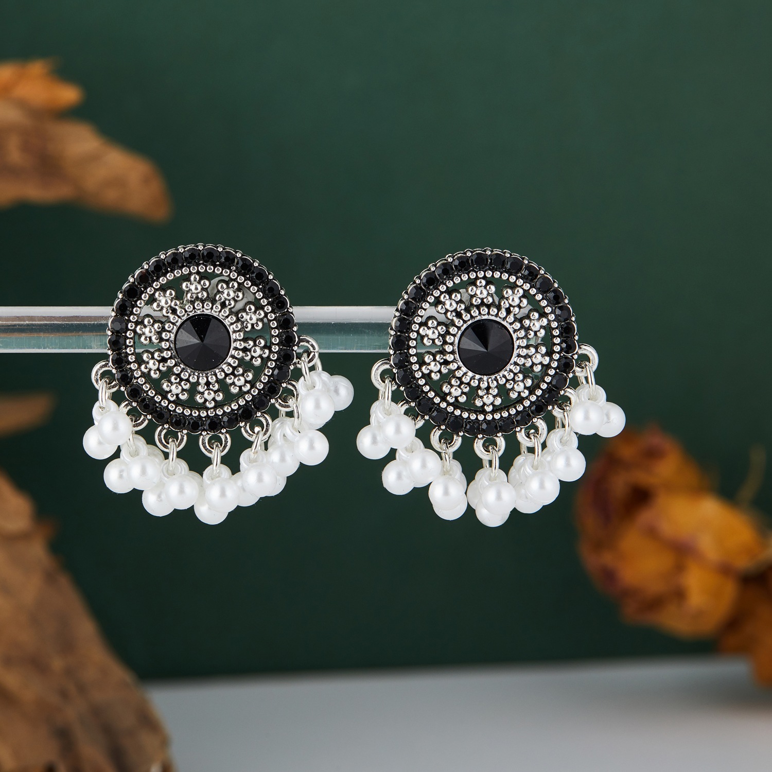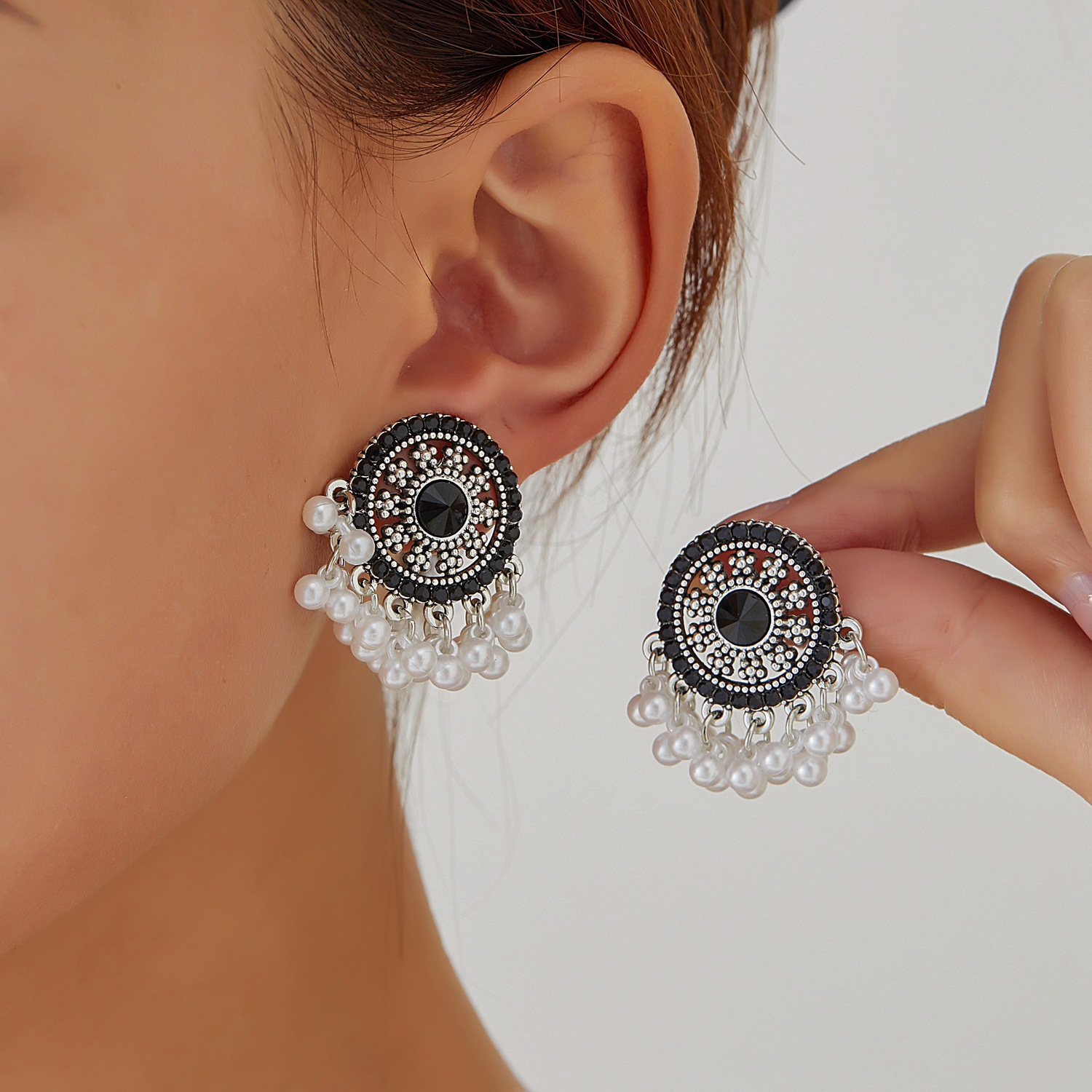 新中式黑金珍珠流苏耳钉耳环复古民族风独特设计气质耳饰