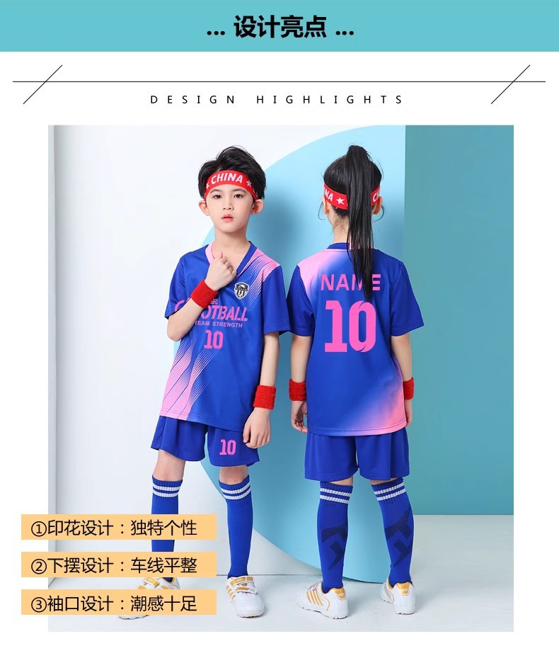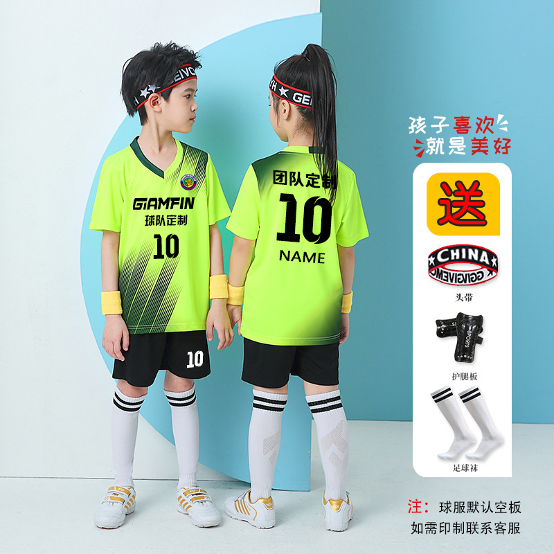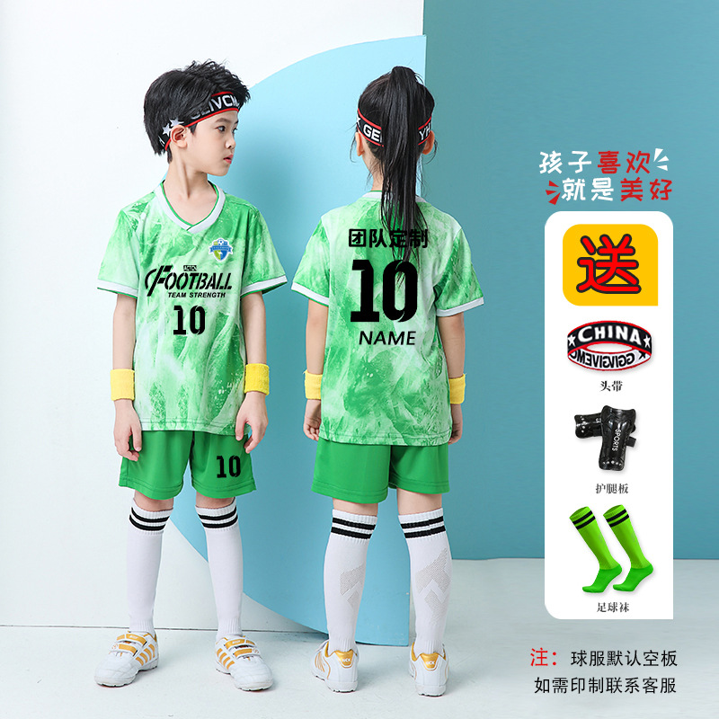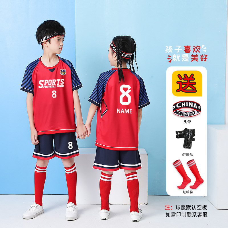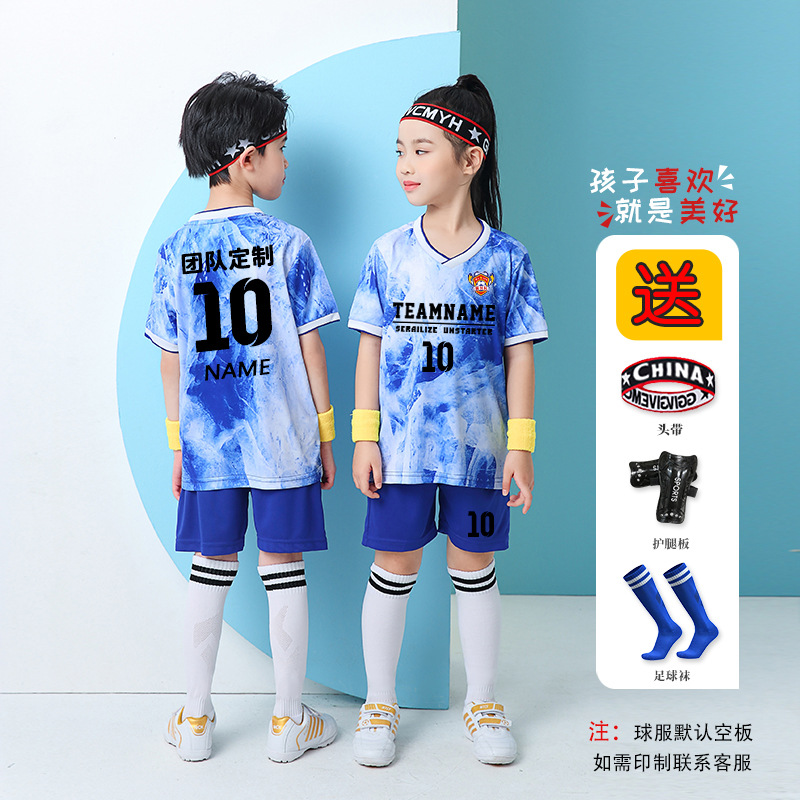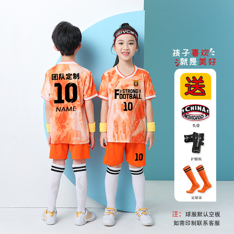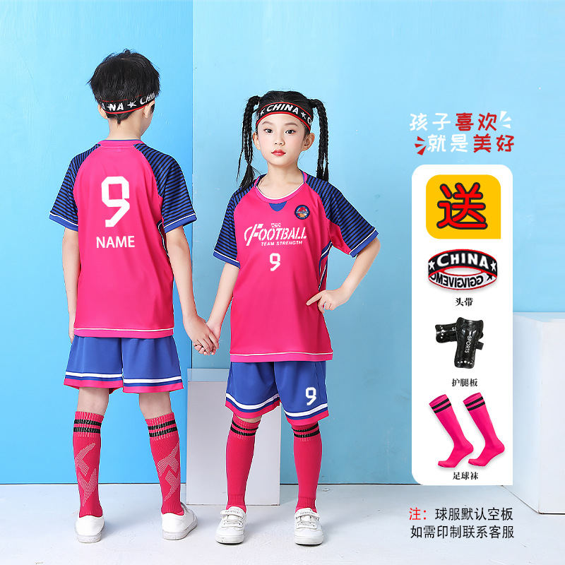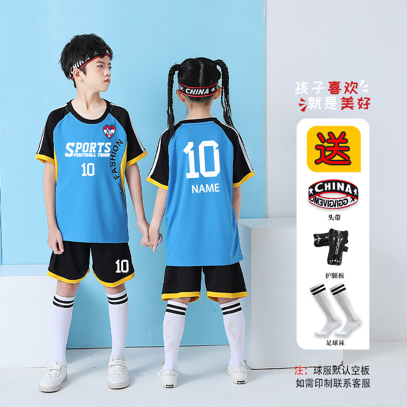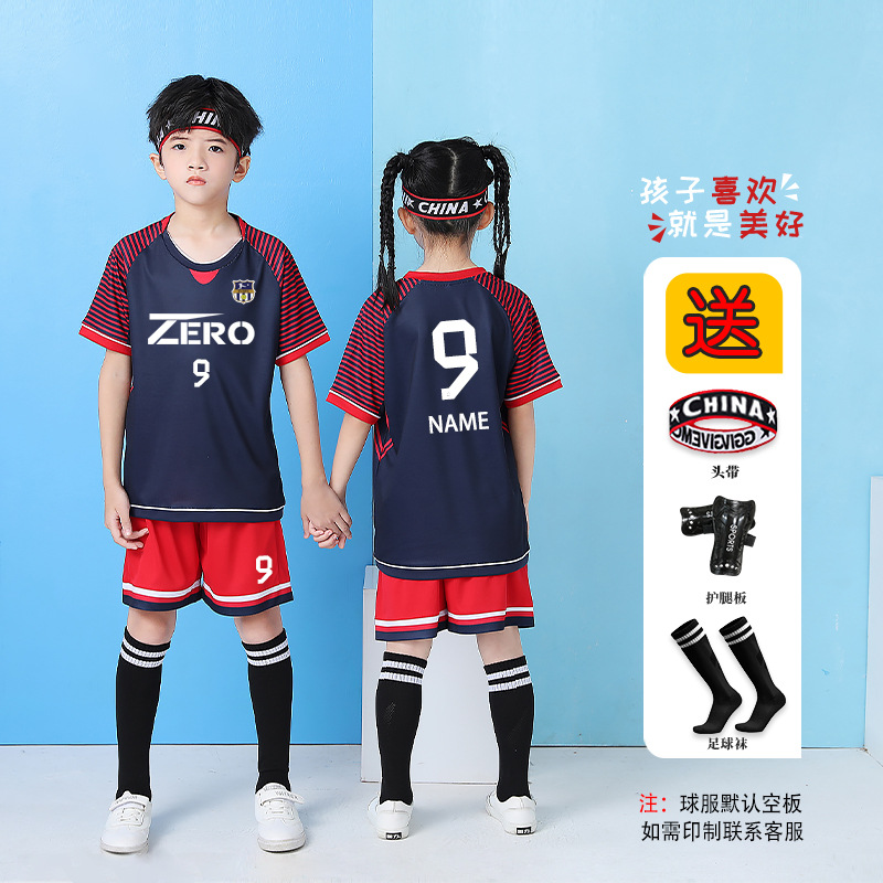 儿童足球服套装男女童夏季短袖小学生足球比赛训练服印制球衣队服