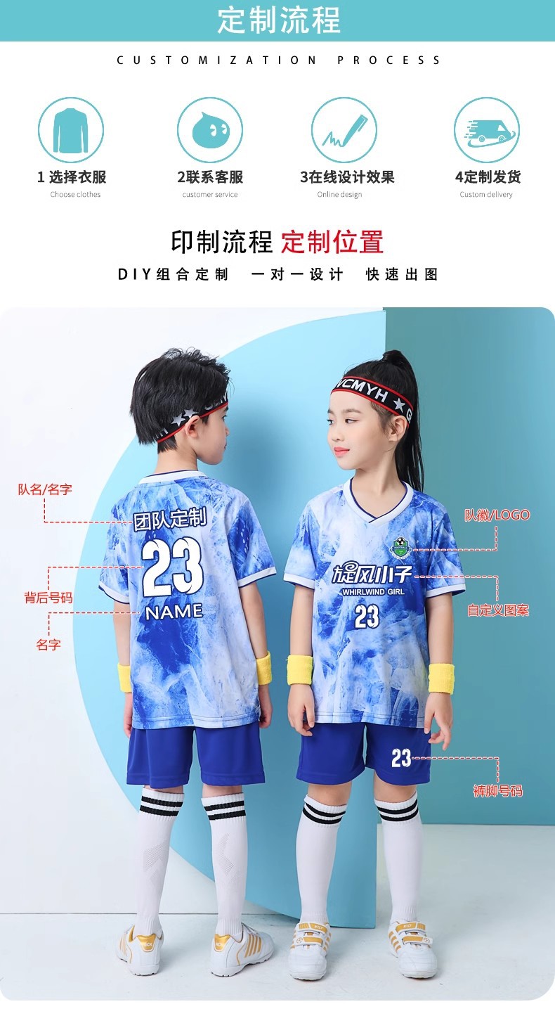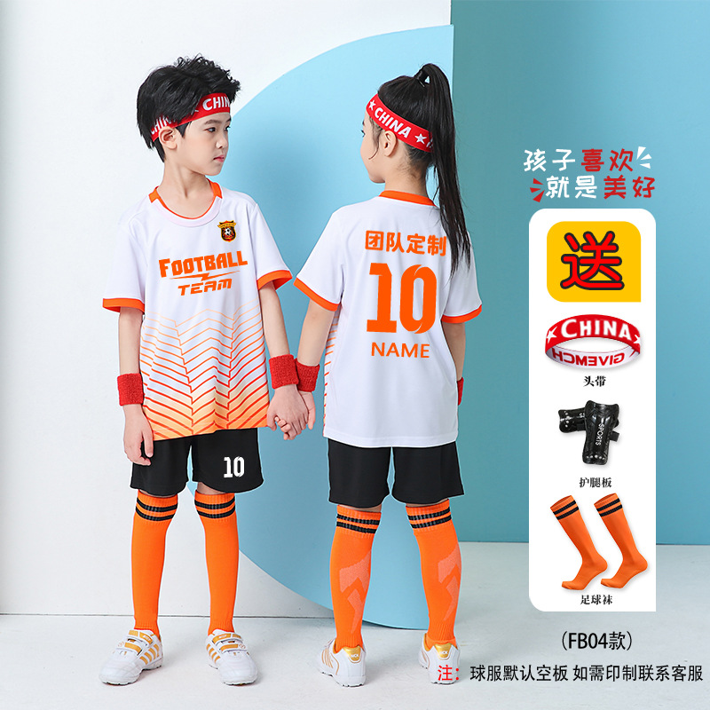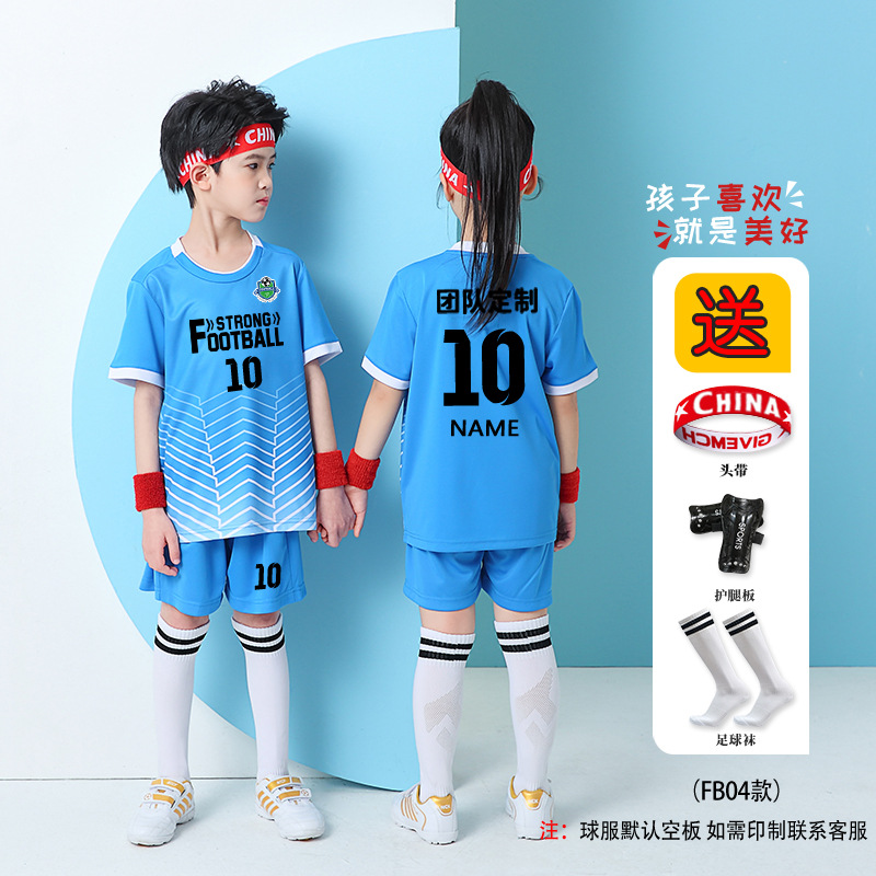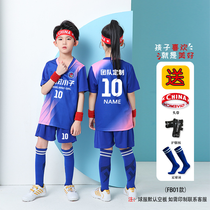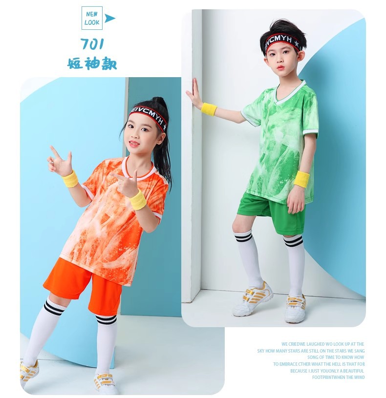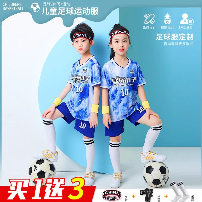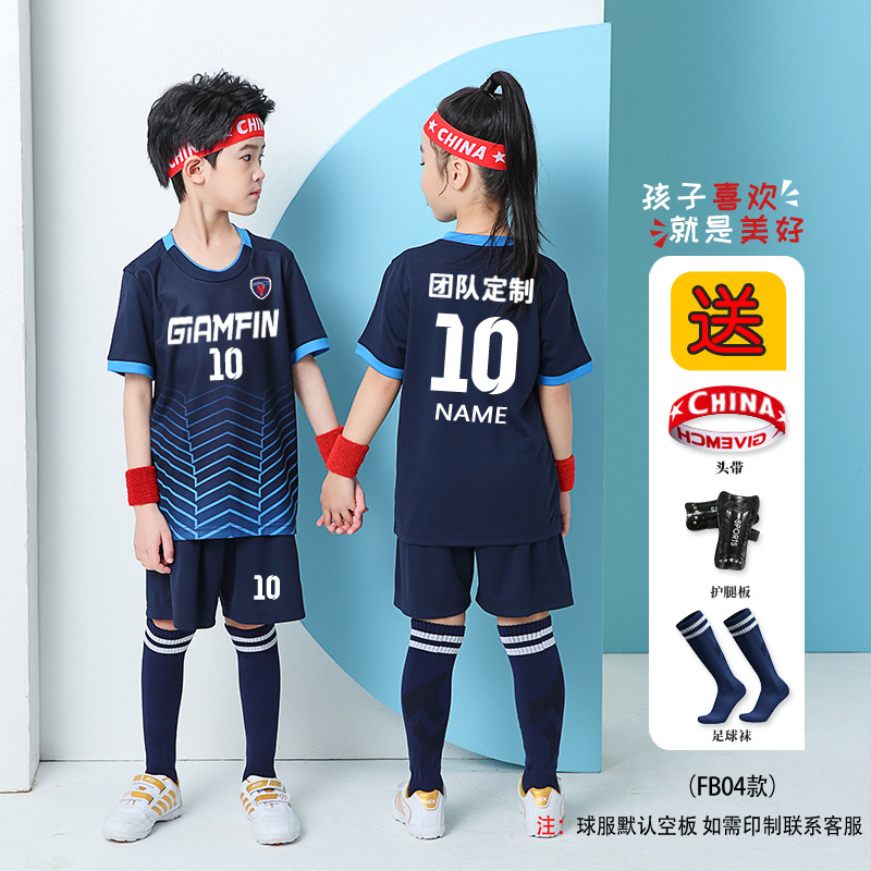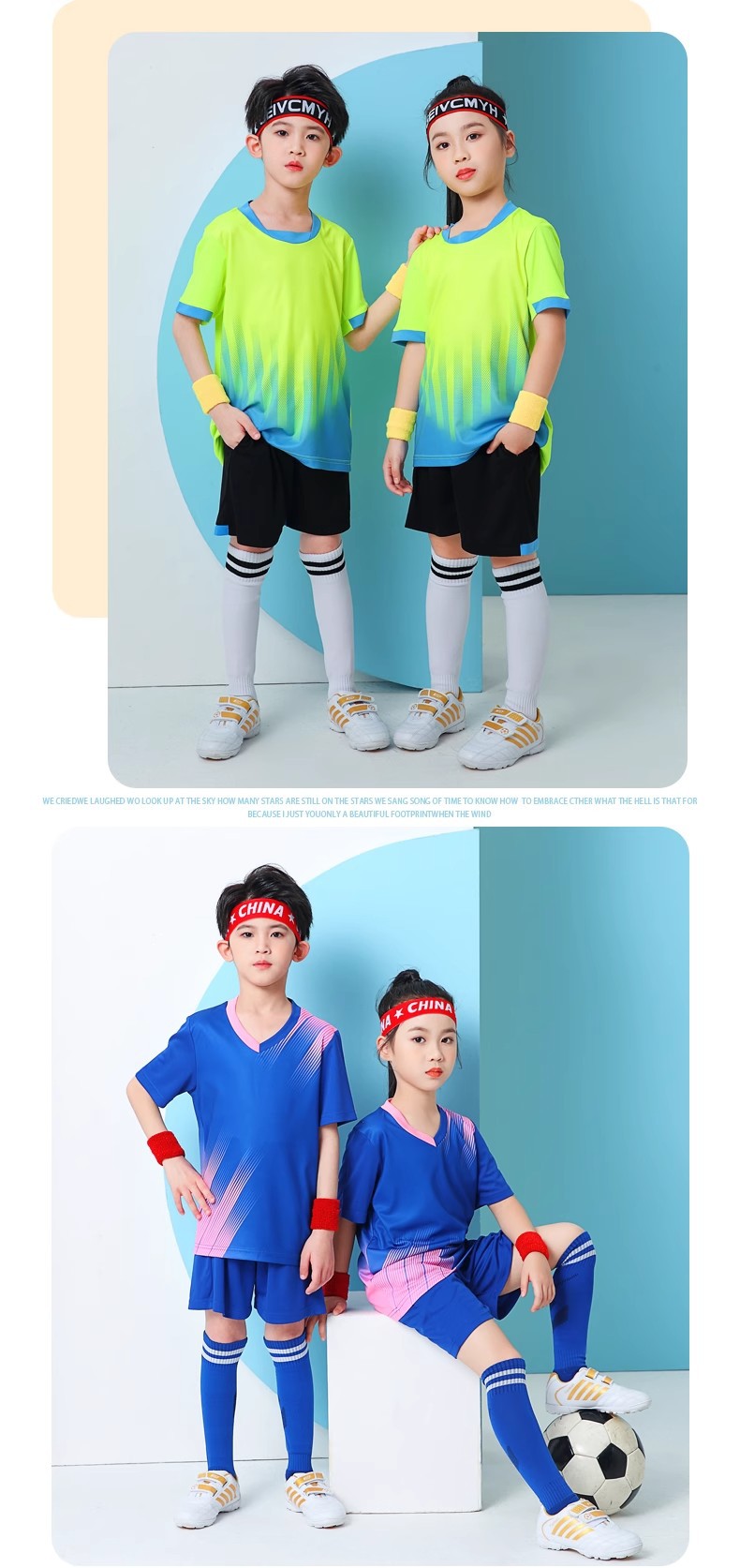 儿童足球服套装男女童夏季短袖小学生足球比赛训练服印制球衣队服