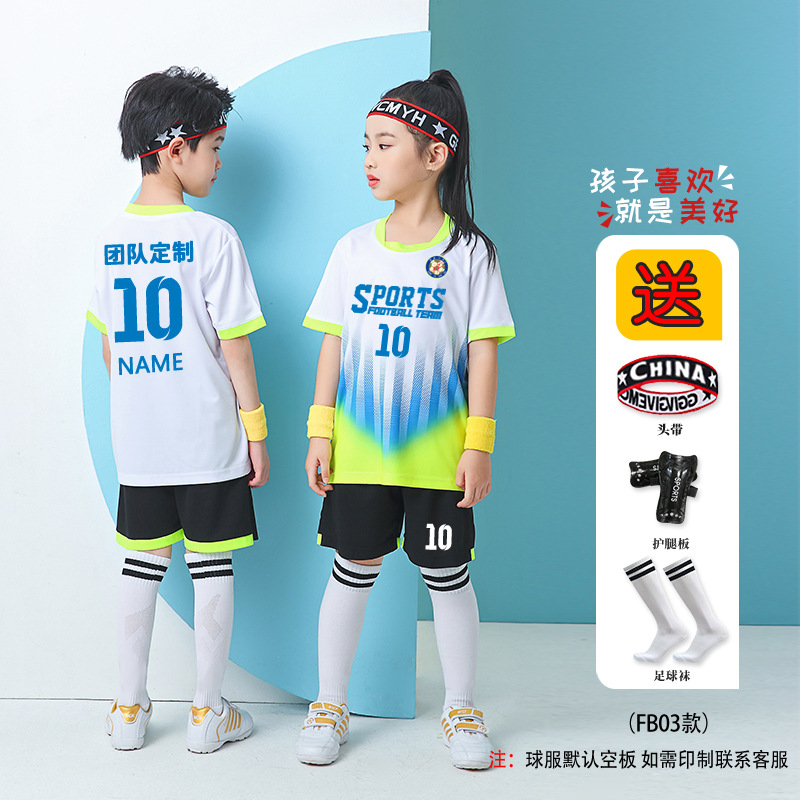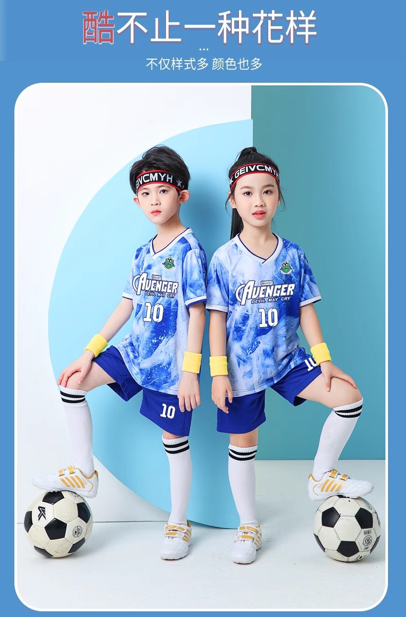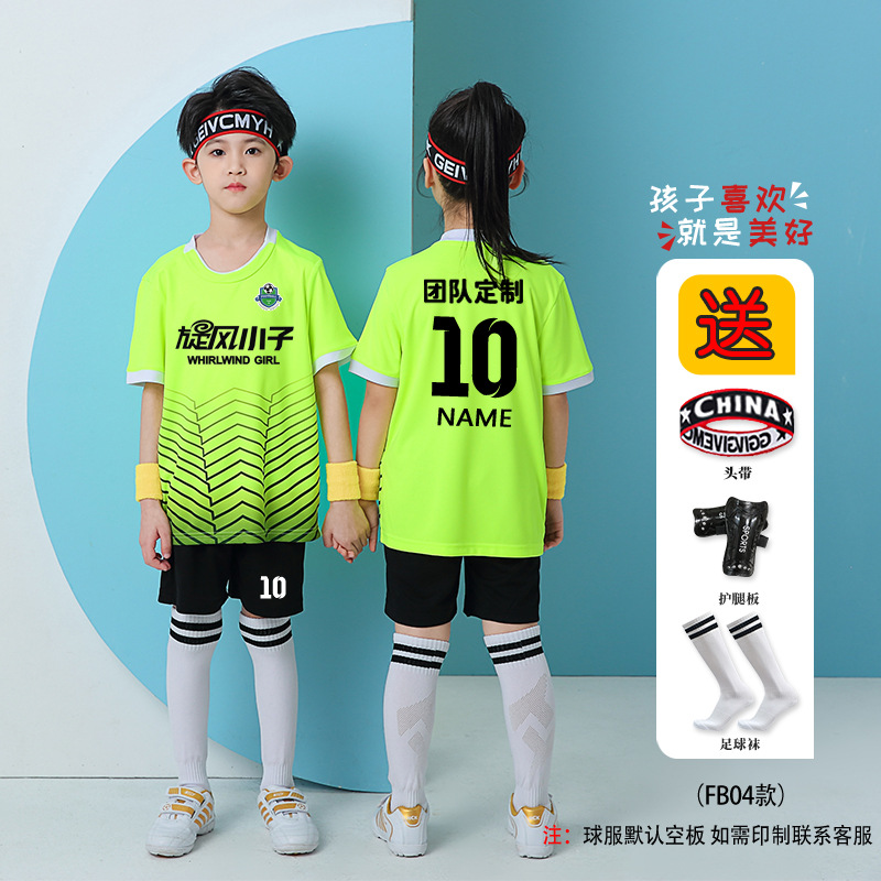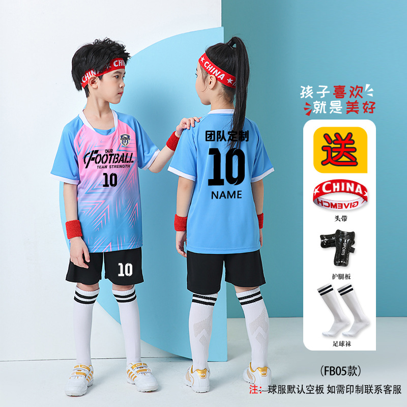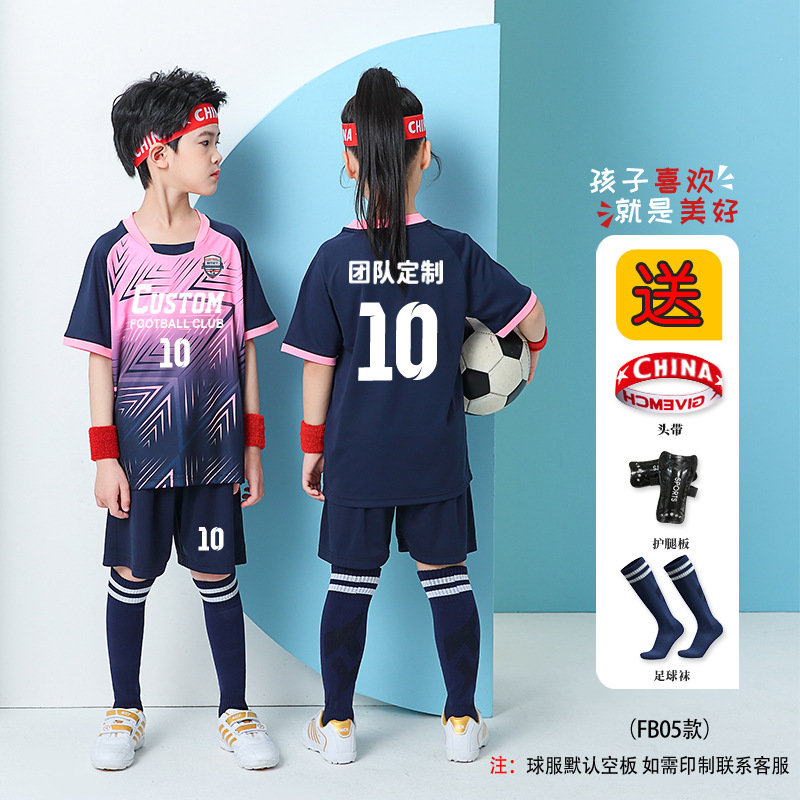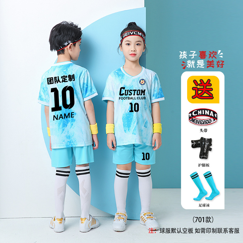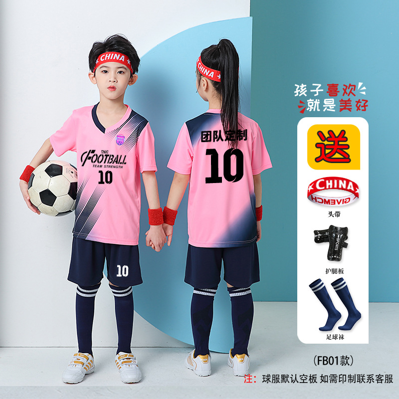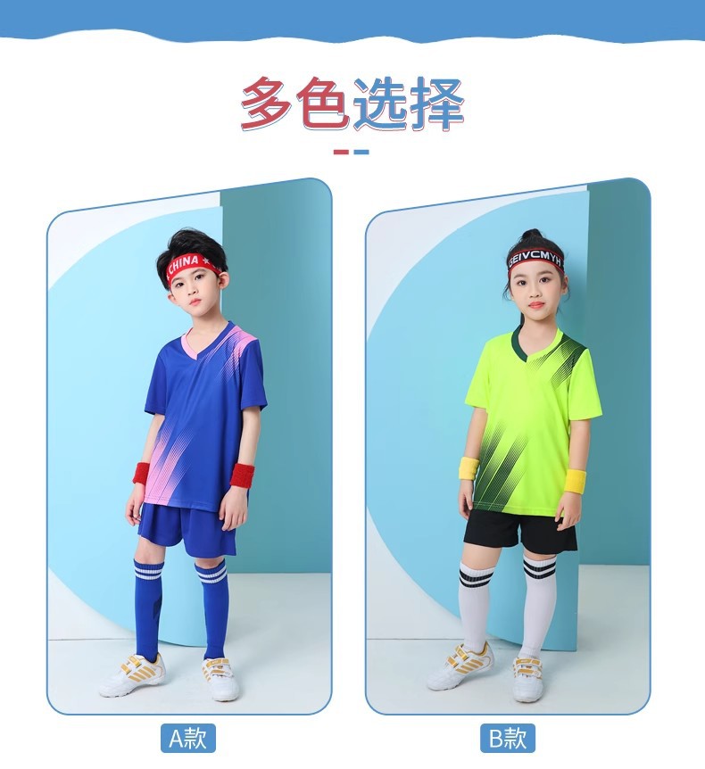 儿童足球服套装男女童夏季短袖小学生足球比赛训练服印制球衣队服